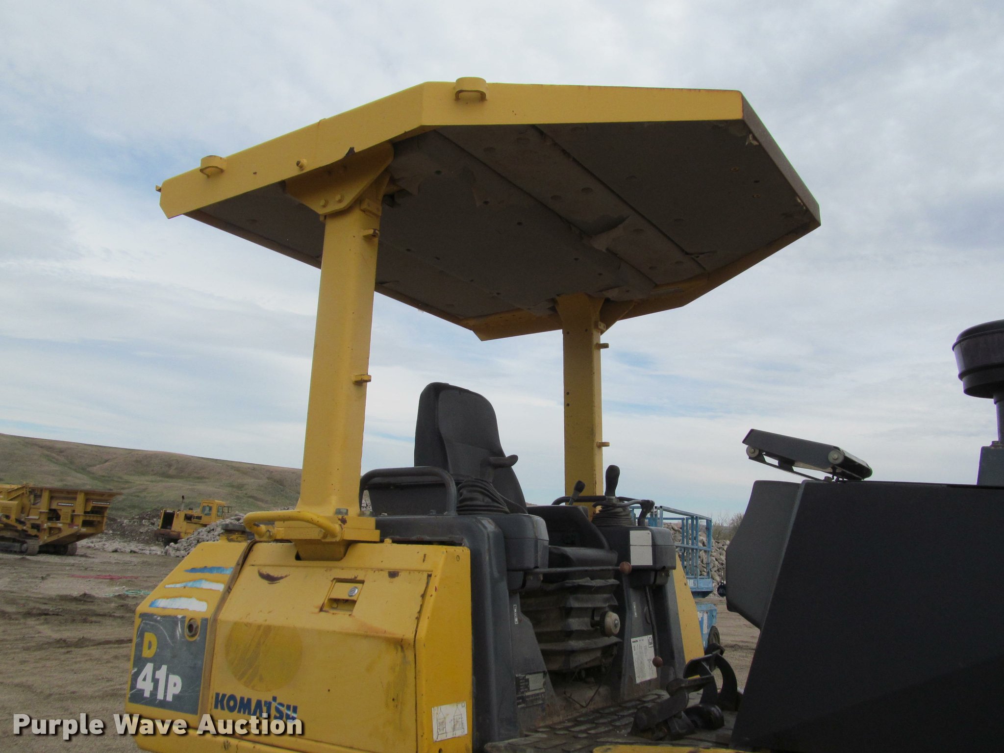 Purple Wave is selling a used Crawler Dozer in South Dakota. This item is a 2006 Komatsu D41P-6 dozer with the following: 2,963 hours on meter, Komatsu SA6D105-2 six cylinder turbo diesel engine, 115 HP, Hydrostatic transmission, ROPS canopy, Model 6CB21-R, Serial 831200, Suspension seat, Vandalism cover, Joystick control steering, Front and rear work lights, 11'W straight dozer blade, Ball and socket, Seven bottom rollers, 27.5" single grouser track pads, 25,400 lbs. base operating weight, Serial KMT0D017T51B41067, Unit# 65011