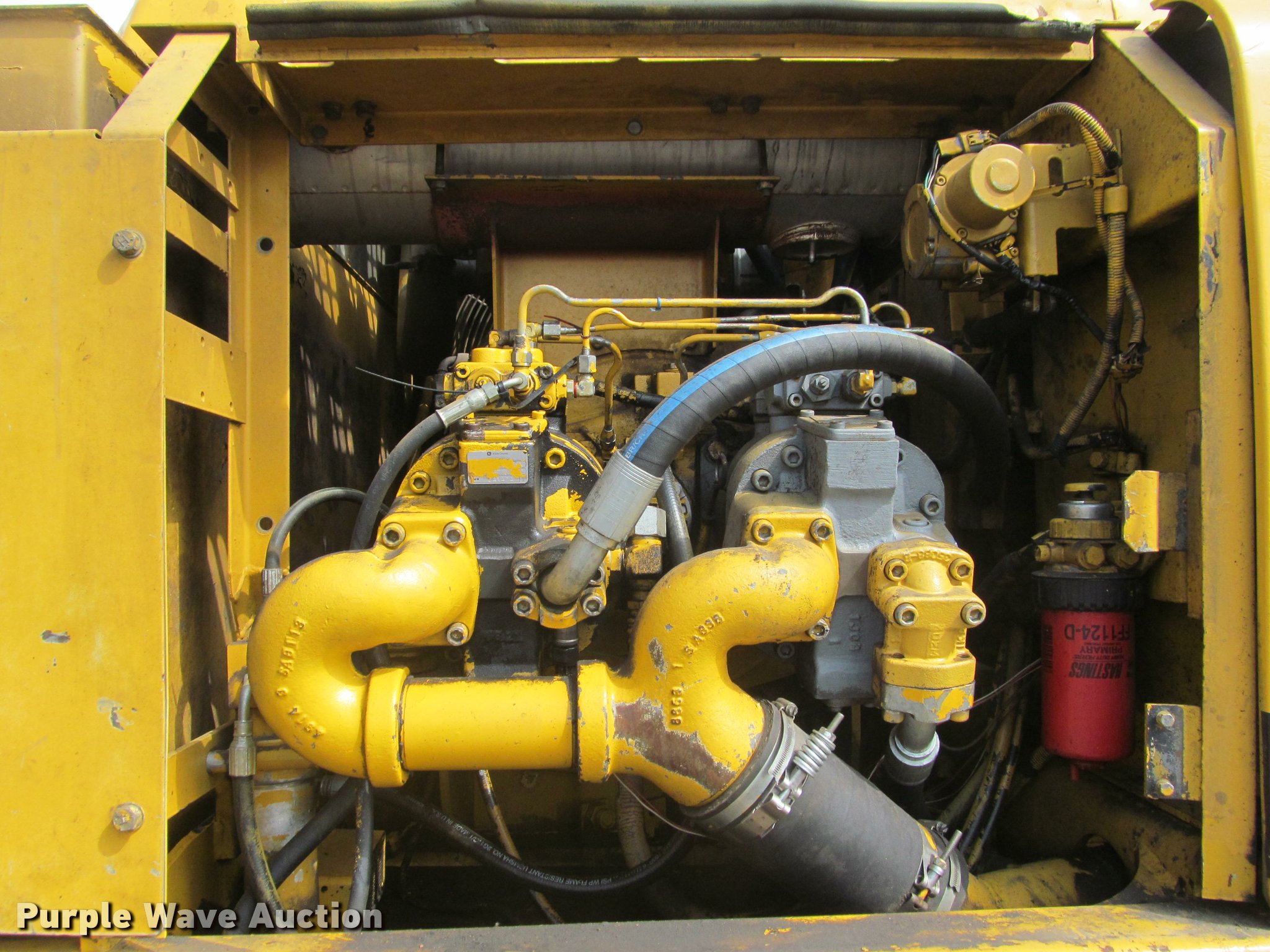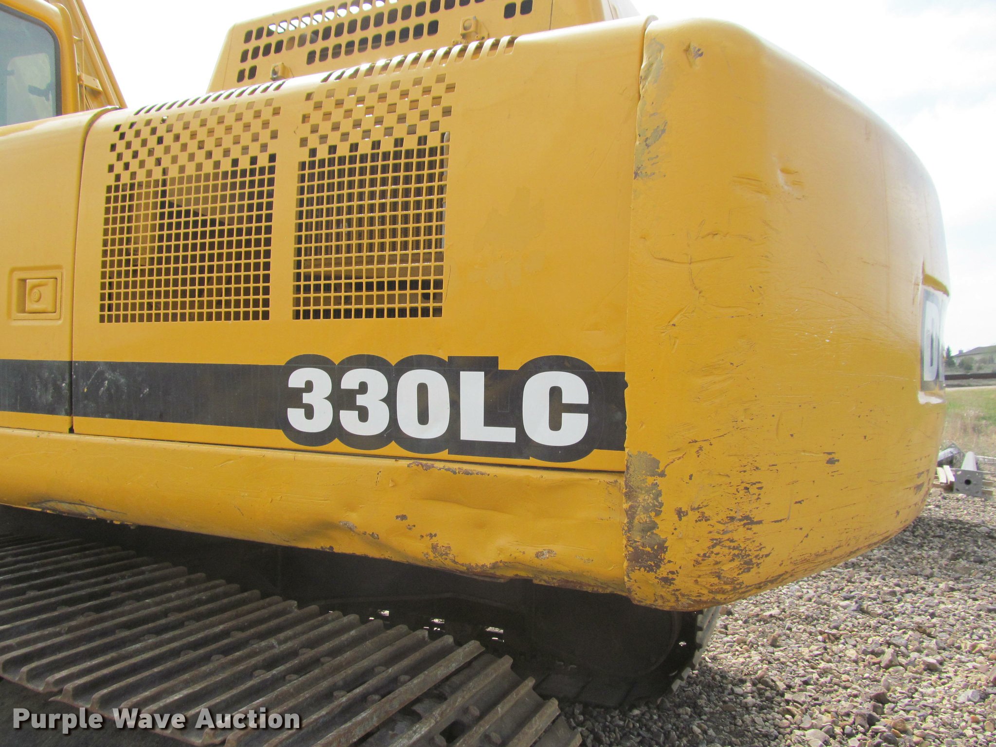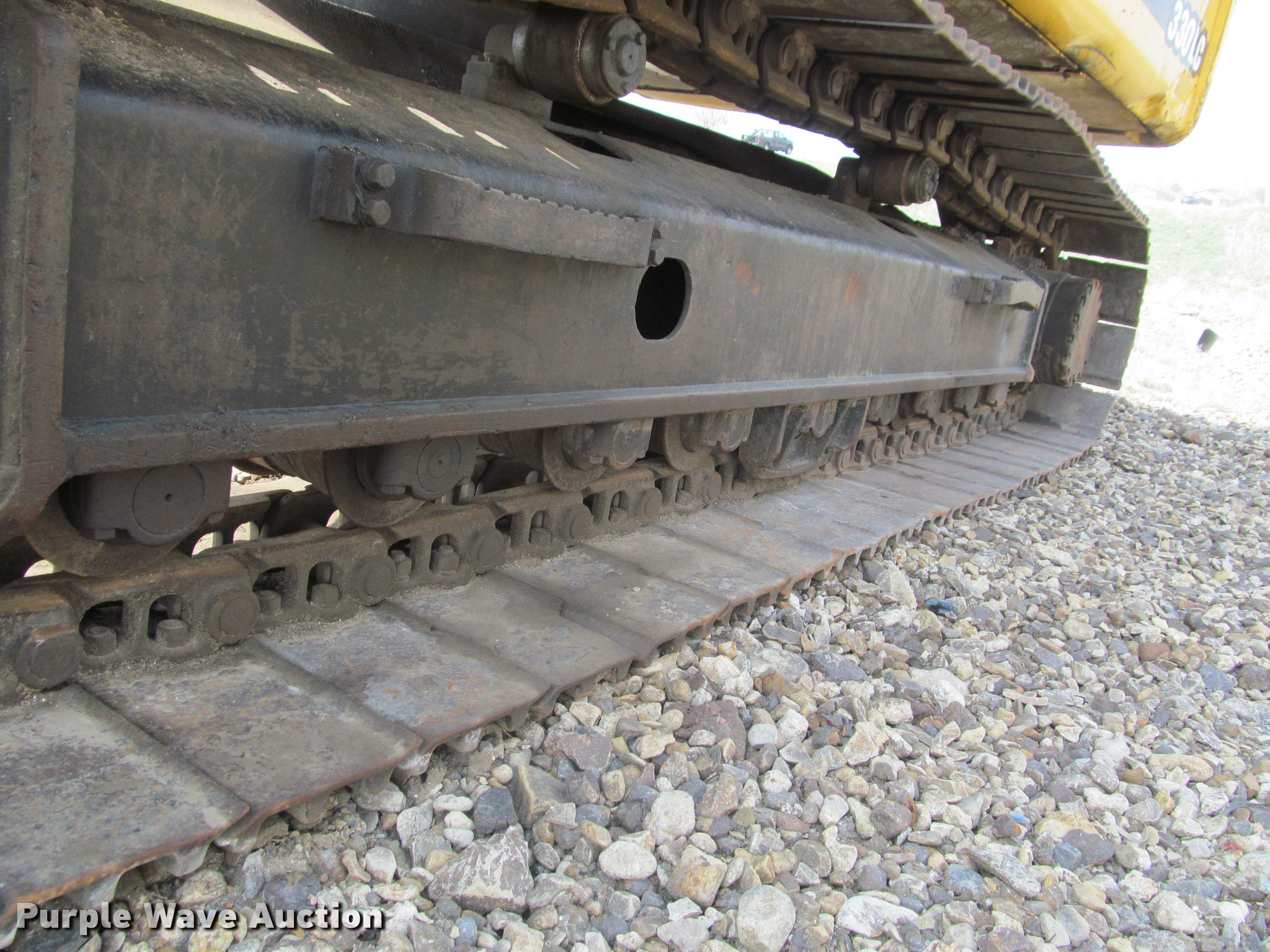 Purple Wave is selling a used Hydraulic Excavator in South Dakota. This item is a 1998 John Deere 330LC excavator with the following: 11,952 hours on meter, Six cylinder turbo diesel engine, Hydrostatic transmission, Two speed travel, Enclosed cab, AC and heat, AM/FM, Suspension seat, Front work lights, Wipers, Standard boom, C&P 59"W bucket, (6) pin-on teeth, Serial 359-82617-1, 32"W steel triple grouser track pads, Seat torn, (2) cracked windows, Side damage, Cab damage, Serial FF0330X080030, Unit# 63003