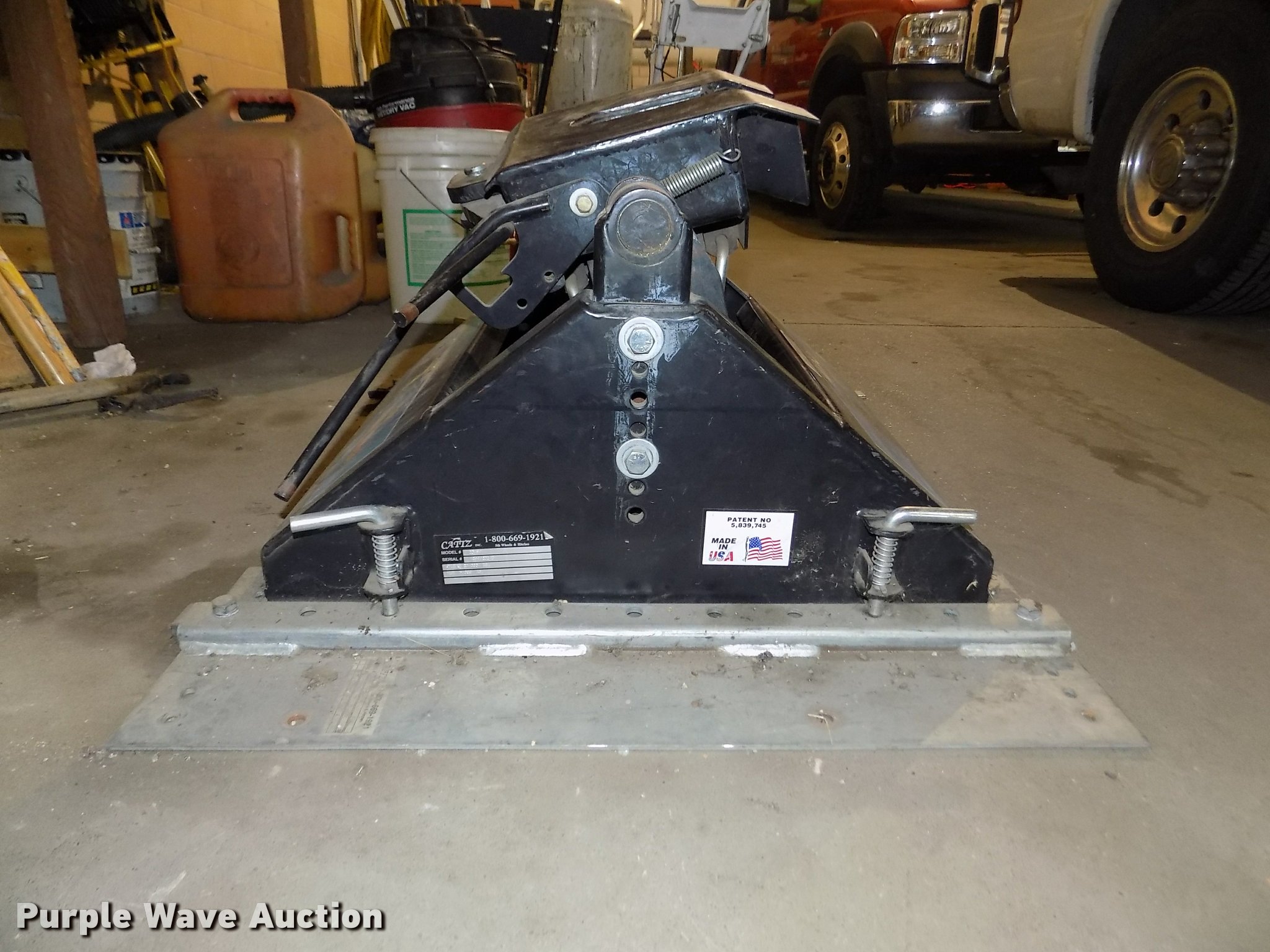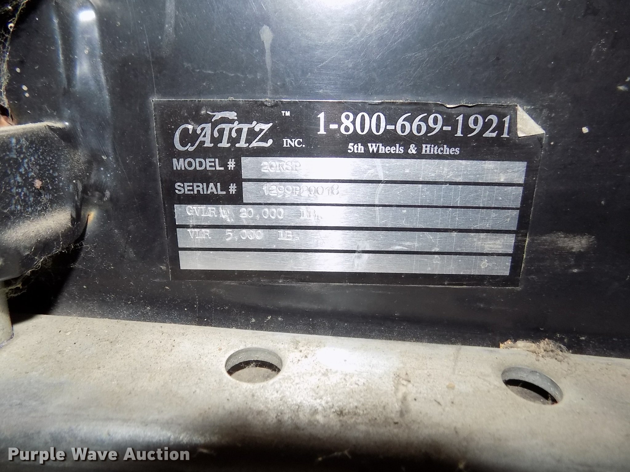 Purple Wave is selling a used Truck Part and Attach. in Nebraska. This item is a Cattz fifth wheel plate with the following: Model 20KSP, GVLR 20,000 lbs, VLR 5,000 lbs, Serial 1299P20018