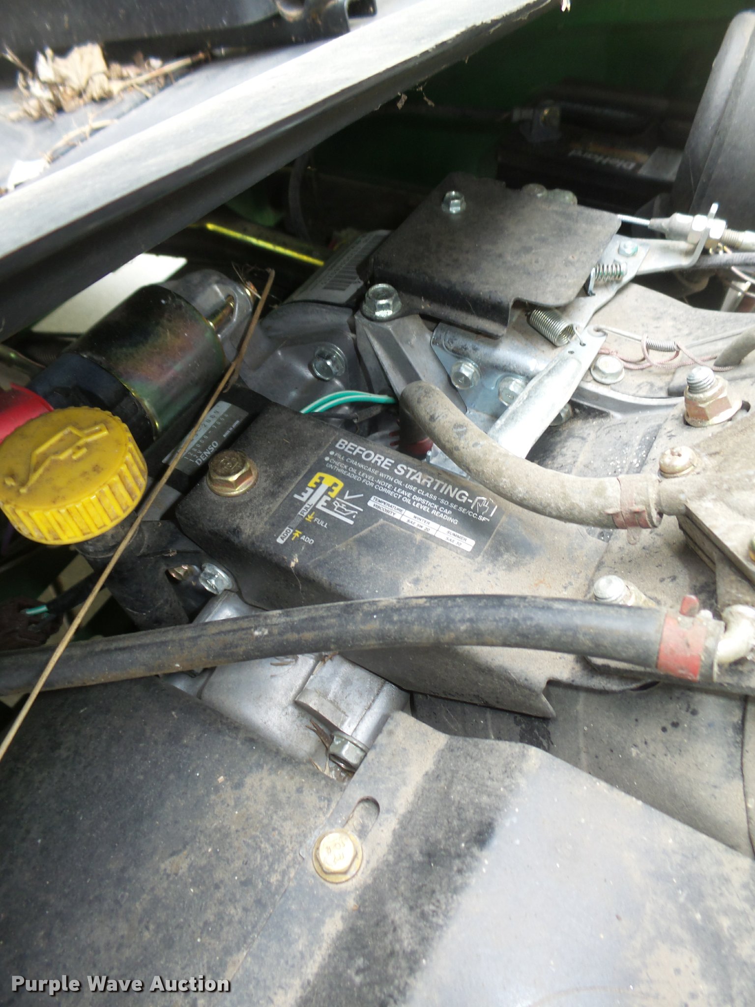 Purple Wave is selling a used Utility Vehicle in Nebraska. This item is a 2004 John Deere Gator CX utility vehicle with the following: 59 hours on meter, Two cylinder gas engine, Hydrostatic transmission, Two person capacity, Headlights, 30"L x 36"W x 8"H bed, Rear draw bar, 18x8.50-8 front tires, 20x10.00-8 rear tires, Seat cushions are not fastened down