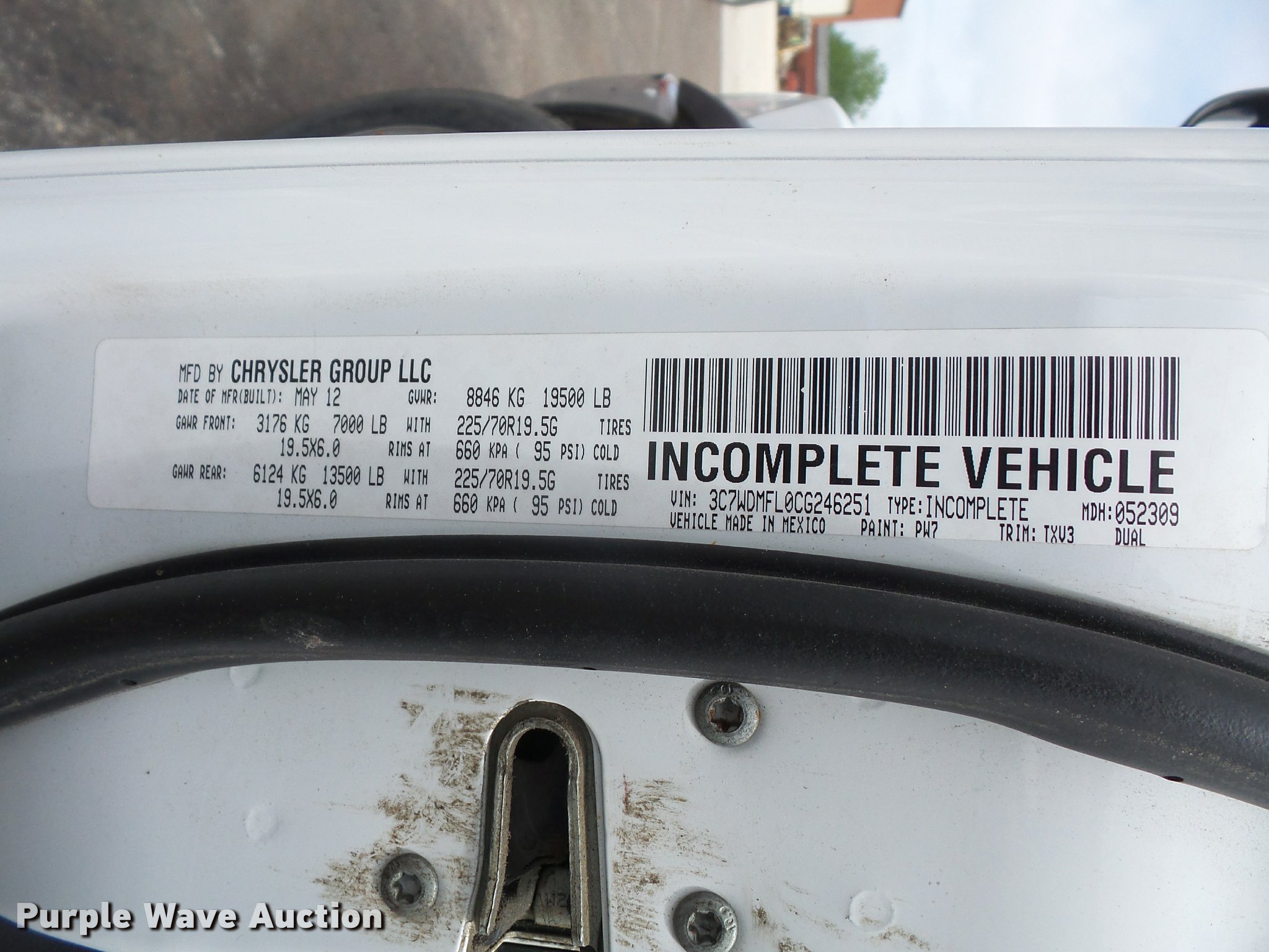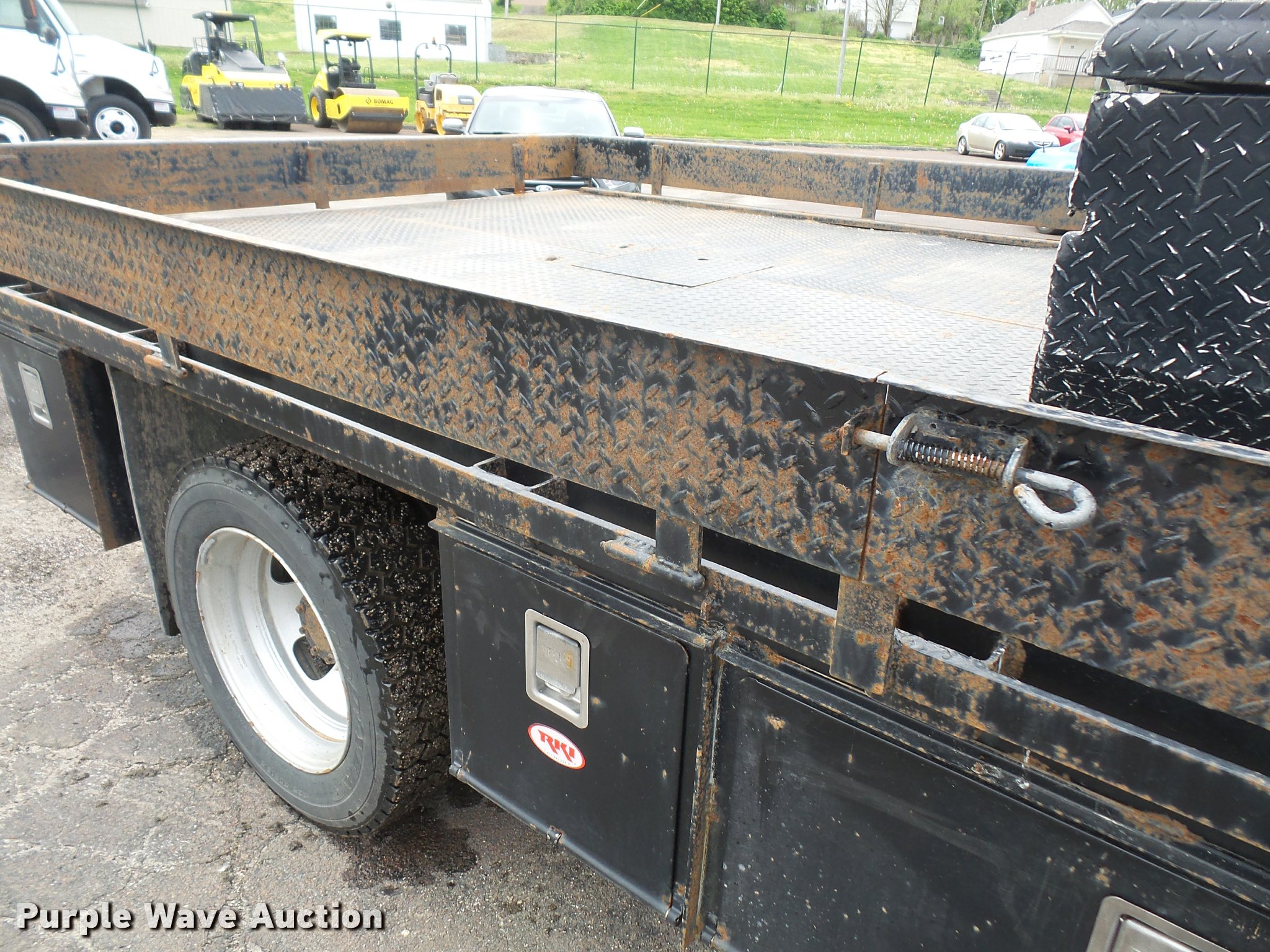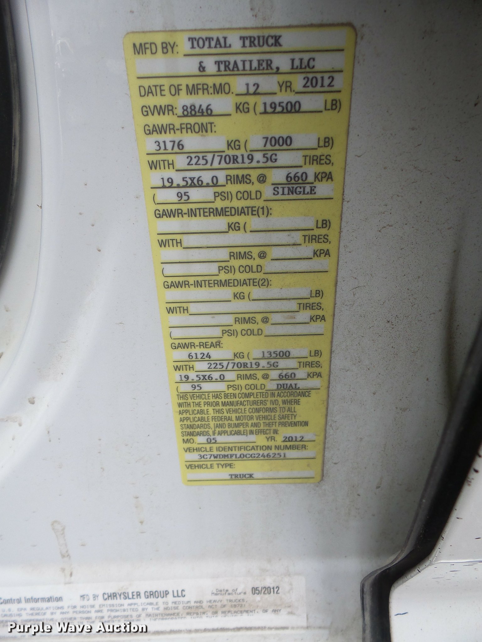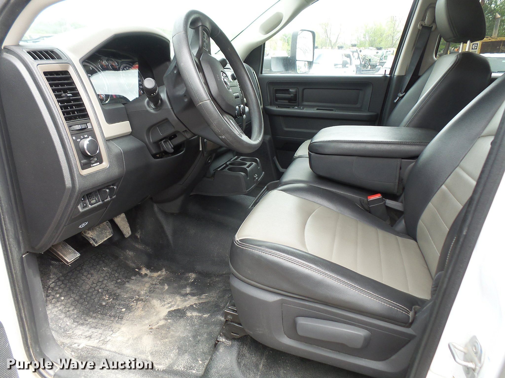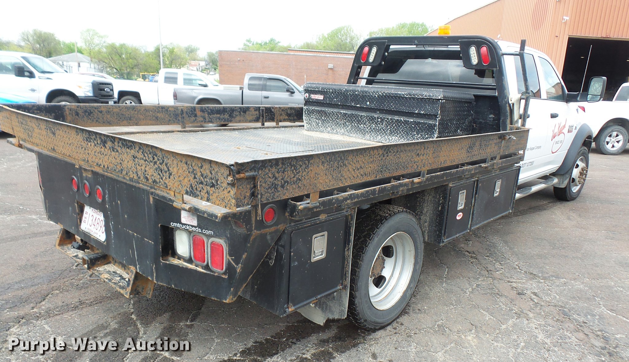 Purple Wave is selling a used Flat Bed Truck in Kansas. This item is a 2012 Dodge Ram 5500 Crew Cab flatbed truck with the following: 143,134 miles on odometer, 6.7L L6 OHV 24V diesel engine, Automatic transmission, AC and heat, Tilt, Cruise, AM/FM/CD, Power windows, locks, and mirrors, Vinyl interior, Front tow hooks, Running boards, 11.5'L x 100"W flatbed, Toolbox, Gooseneck ball, Receiver hitch, 225/75R19.5 tires, Decals will be removed prior to auction