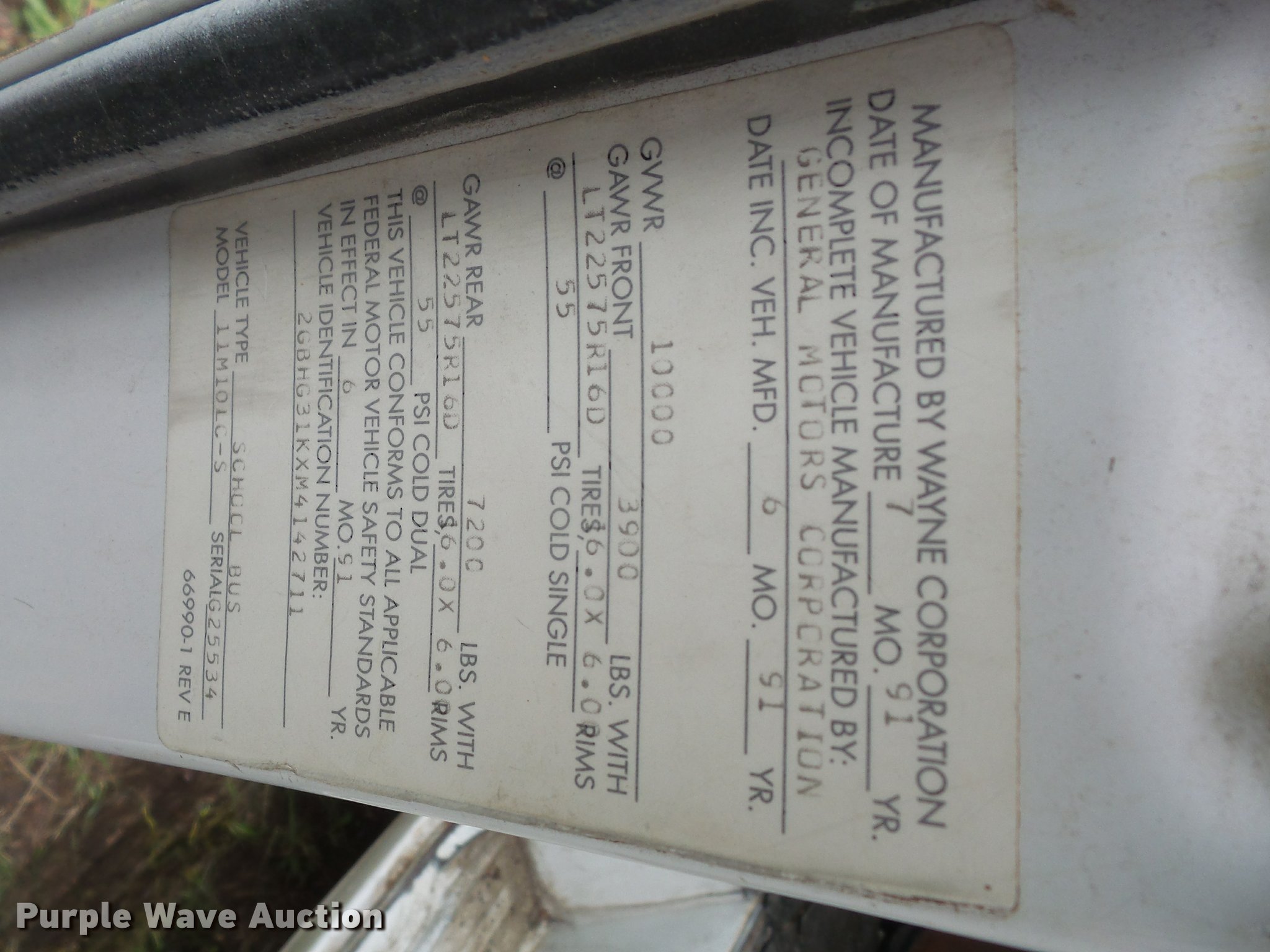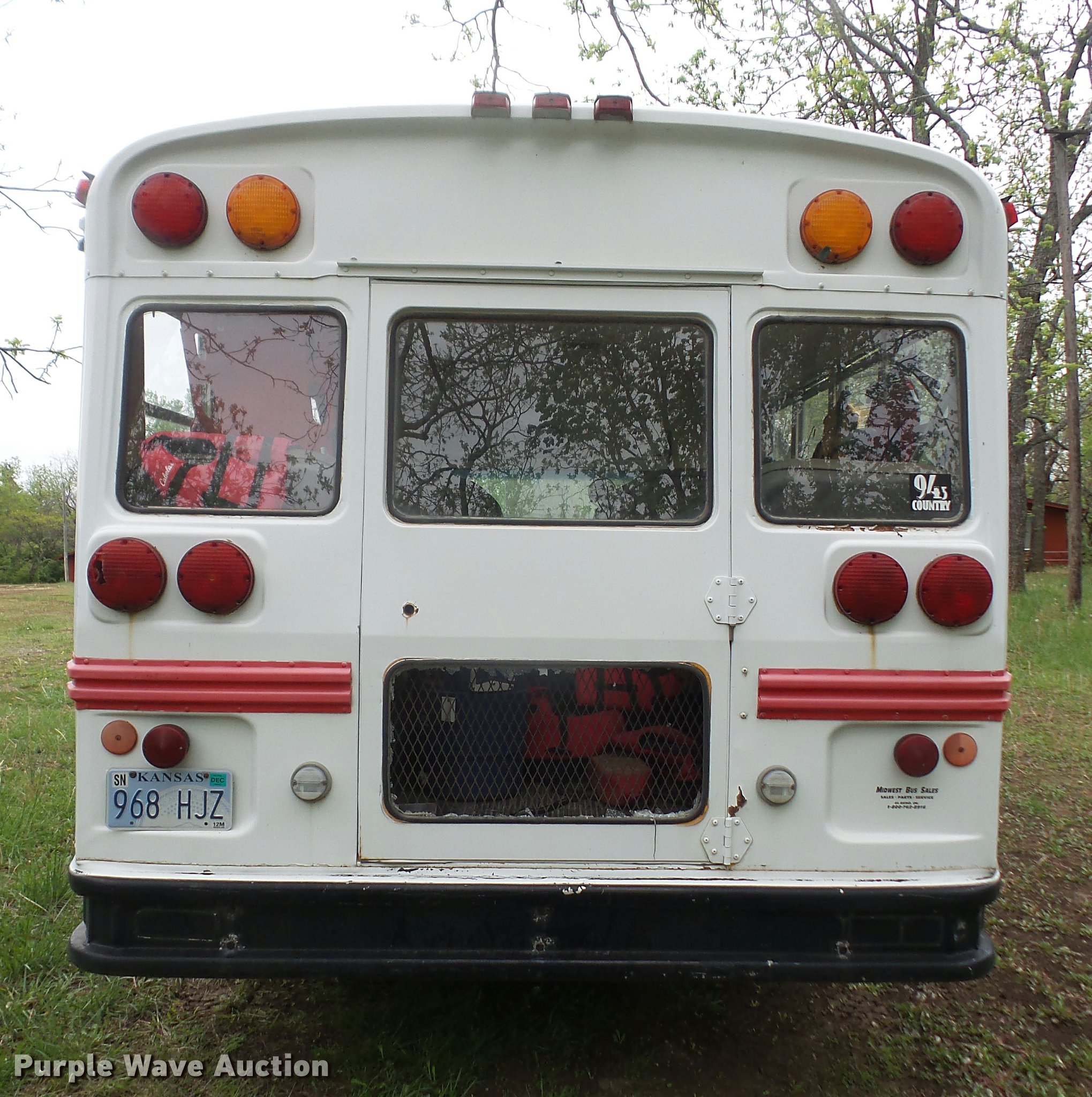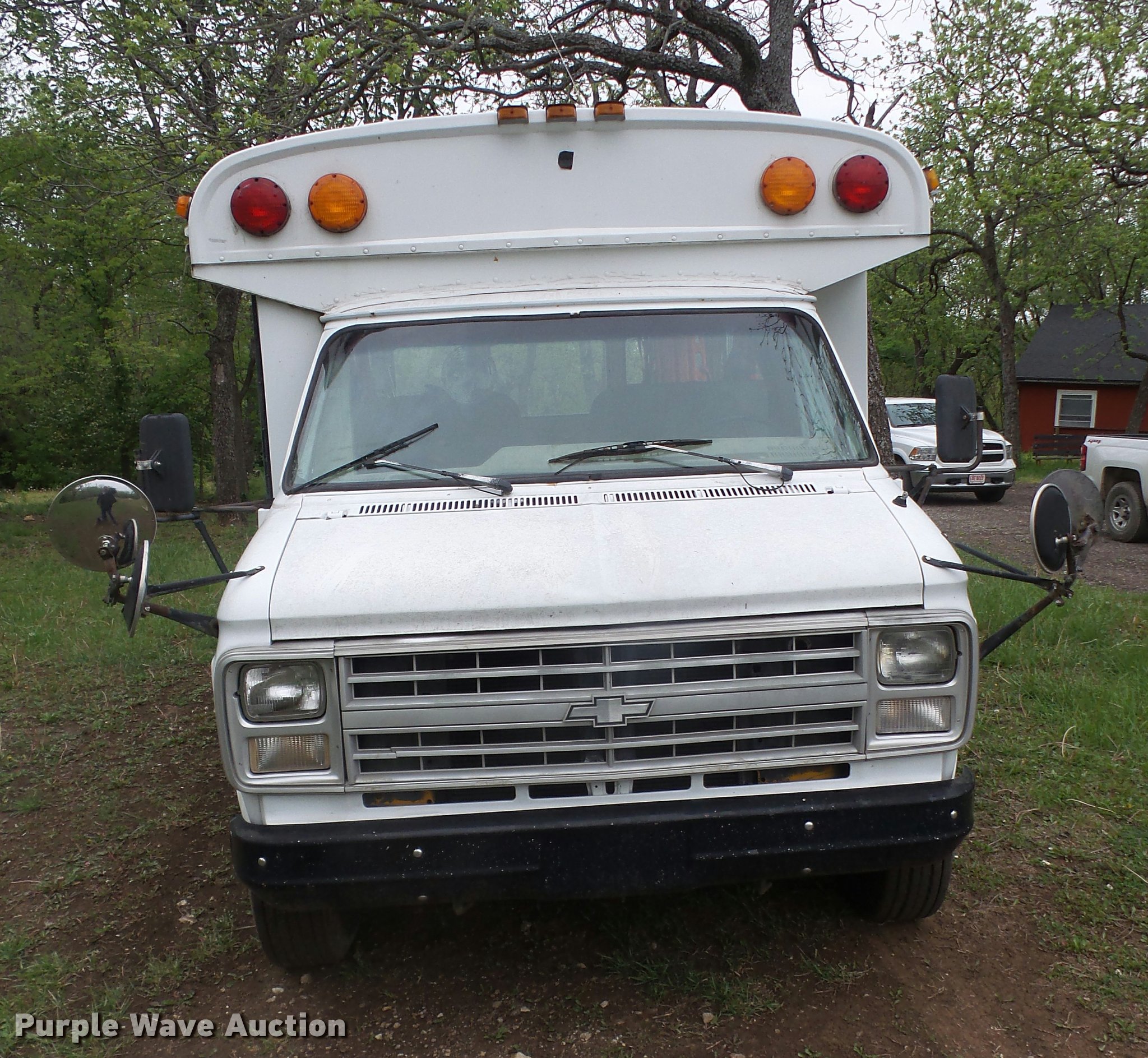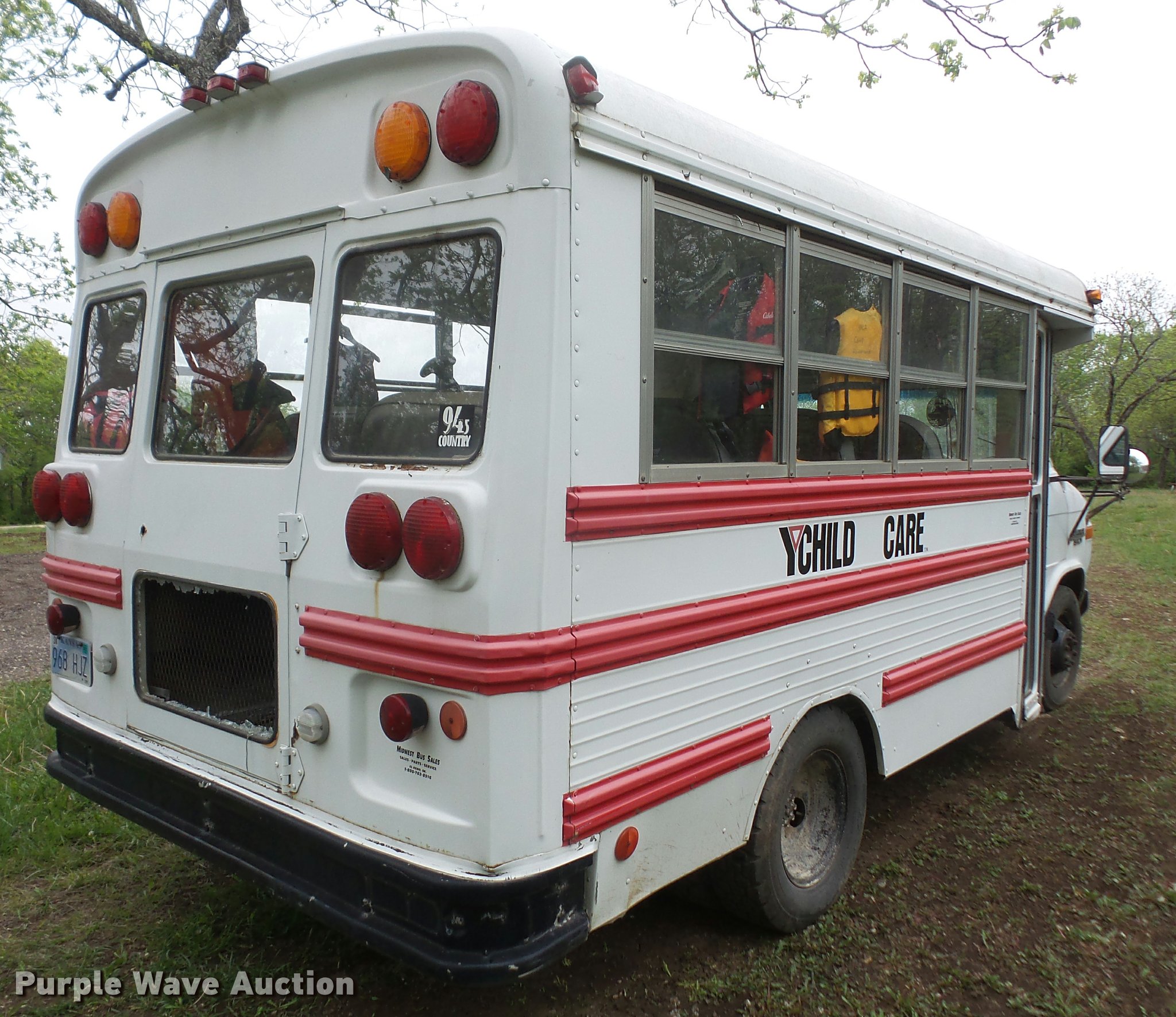 Purple Wave is selling a used Bus in Kansas. This item is a 1991 Chevrolet G30 school bus with the following: 165,801 miles on odometer, 5.7L V8 OHV 16V gas engine, Automatic transmission, Single axle, AC and heat, AM/FM, 15 passenger capacity, Hydraulic brakes, 225/75R16 tires, Contents not included, Exit door window broken, Hood latch needs repaired, Hood will not open