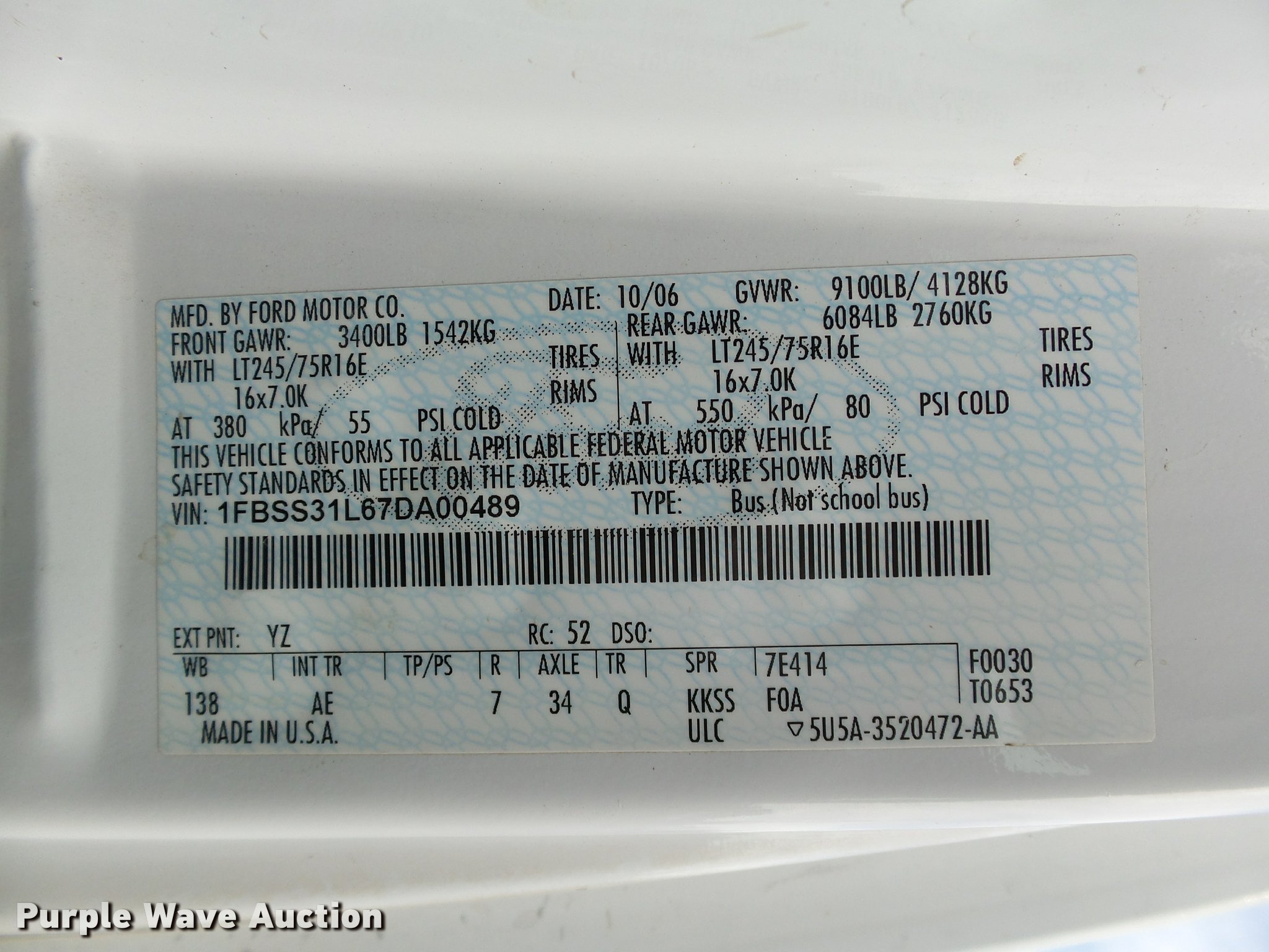 Purple Wave is selling a used 3/4 or 1 Ton Pickup or Van in Oklahoma. This item is a 2007 Ford Econoline E350 Super Duty XL van with the following: 185,343 miles on odometer, 5.4L V8 SOHC 16V gas engine, Automatic transmission, AC and heat, Tilt, Cruise, AM/FM, Power windows and locks, Vinyl interior, 15 passenger capacity, Firestone LT245/75R16 tires, Unit# 701.263