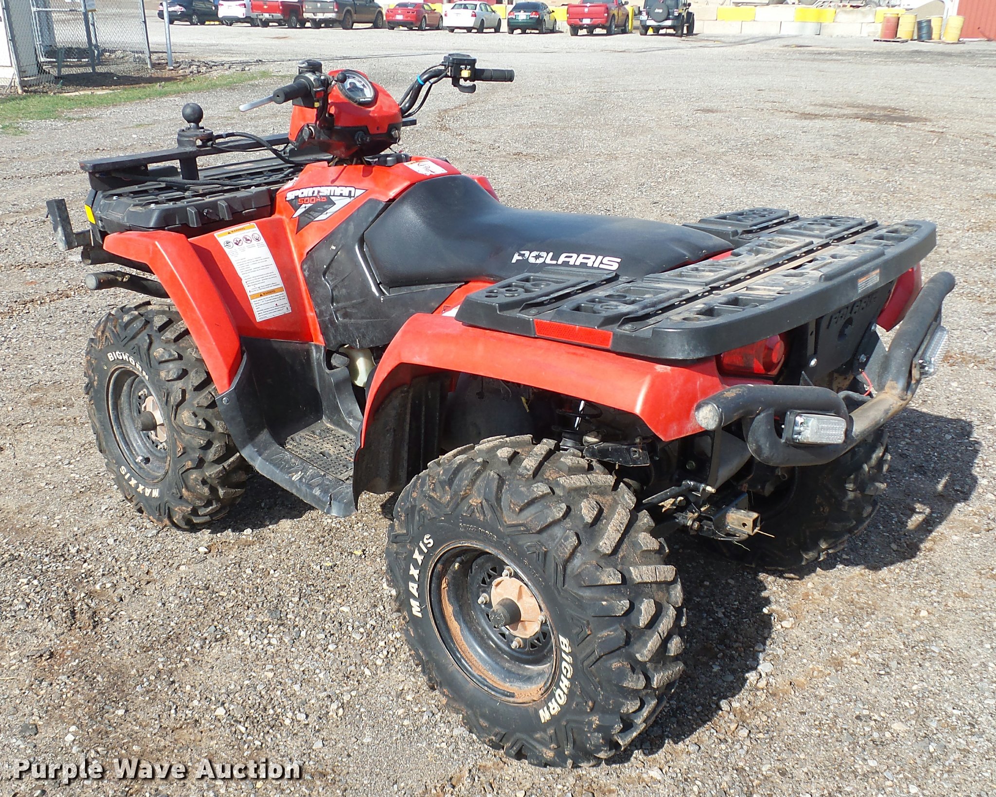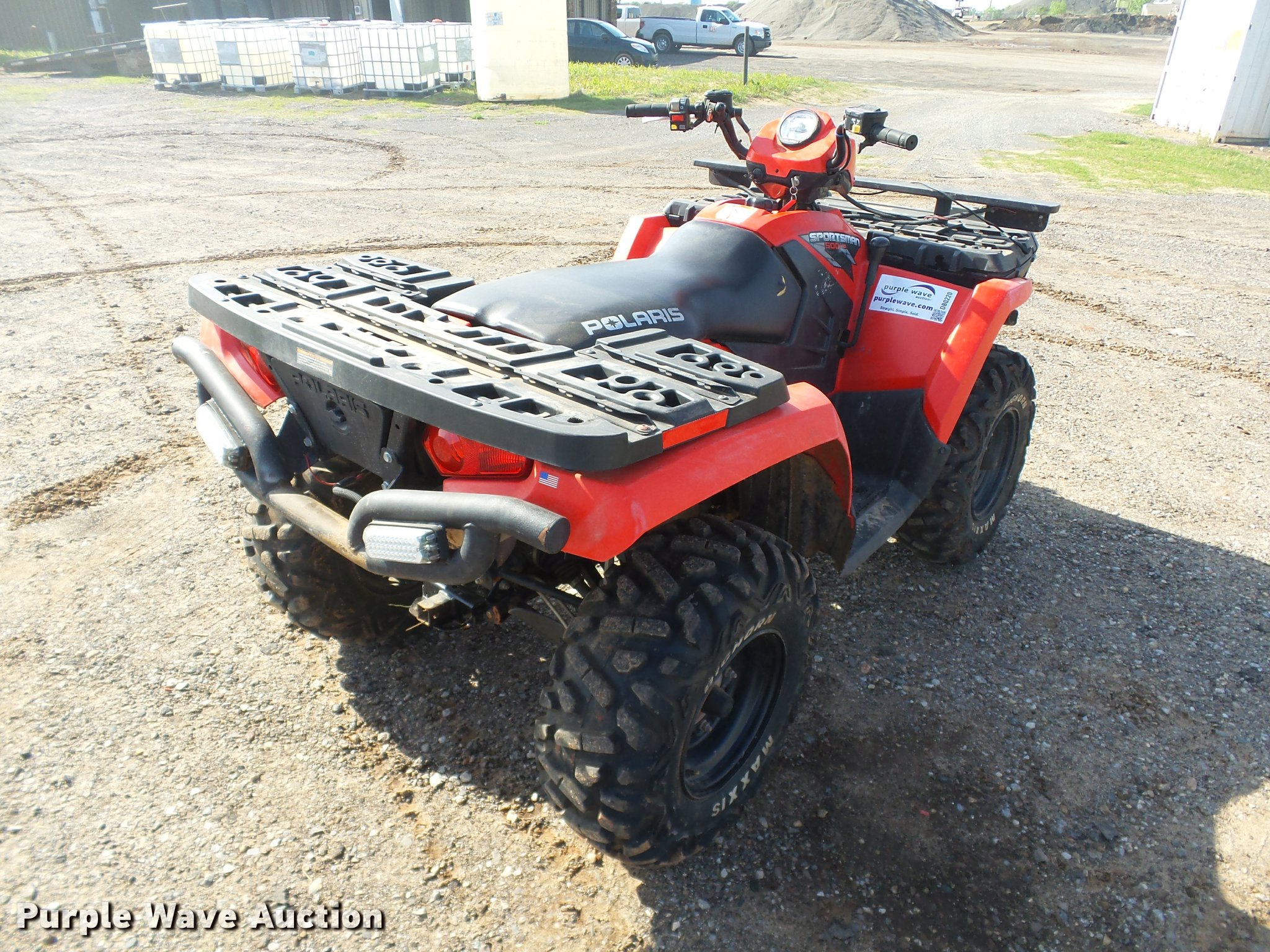 Purple Wave is selling a used ATV in Oklahoma. This item is a 2010 Polaris Sportsman 500 ATV with the following: 1,524 hours on meter, Polaris 500cc gas engine, Automatic transmission, All wheel drive, Receiver hitch, Maxxis Bighorn AT25x8R12 front tires, Maxxis Bighorn AT25x10R12 rear tires, Unit# 301.103