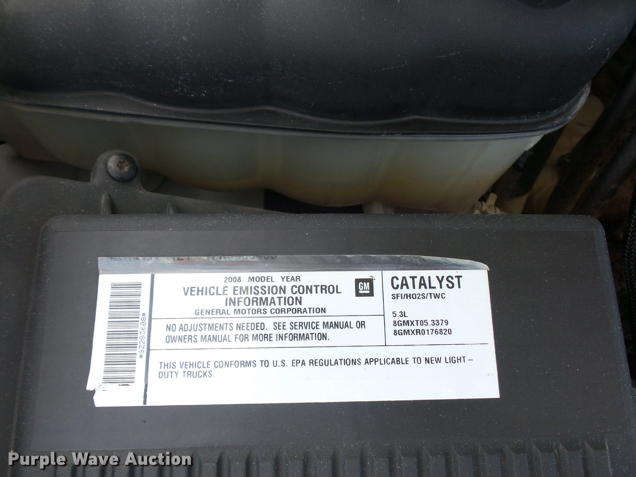 Purple Wave is selling a used 1/2 Ton Pickup or Van in Missouri. This item is a 2008 GMC Sierra 1500 Ext. Cab pickup truck with the following: 184,320 miles on odometer, 5.3L V8 OHV 16V gas engine, Automatic transmission, Four wheel drive, AC and heat, Tilt, Cruise, AM/FM/CD, Power windows, locks, and mirrors, Cloth interior, Receiver hitch, Trailer wiring, 265/70R17 tires