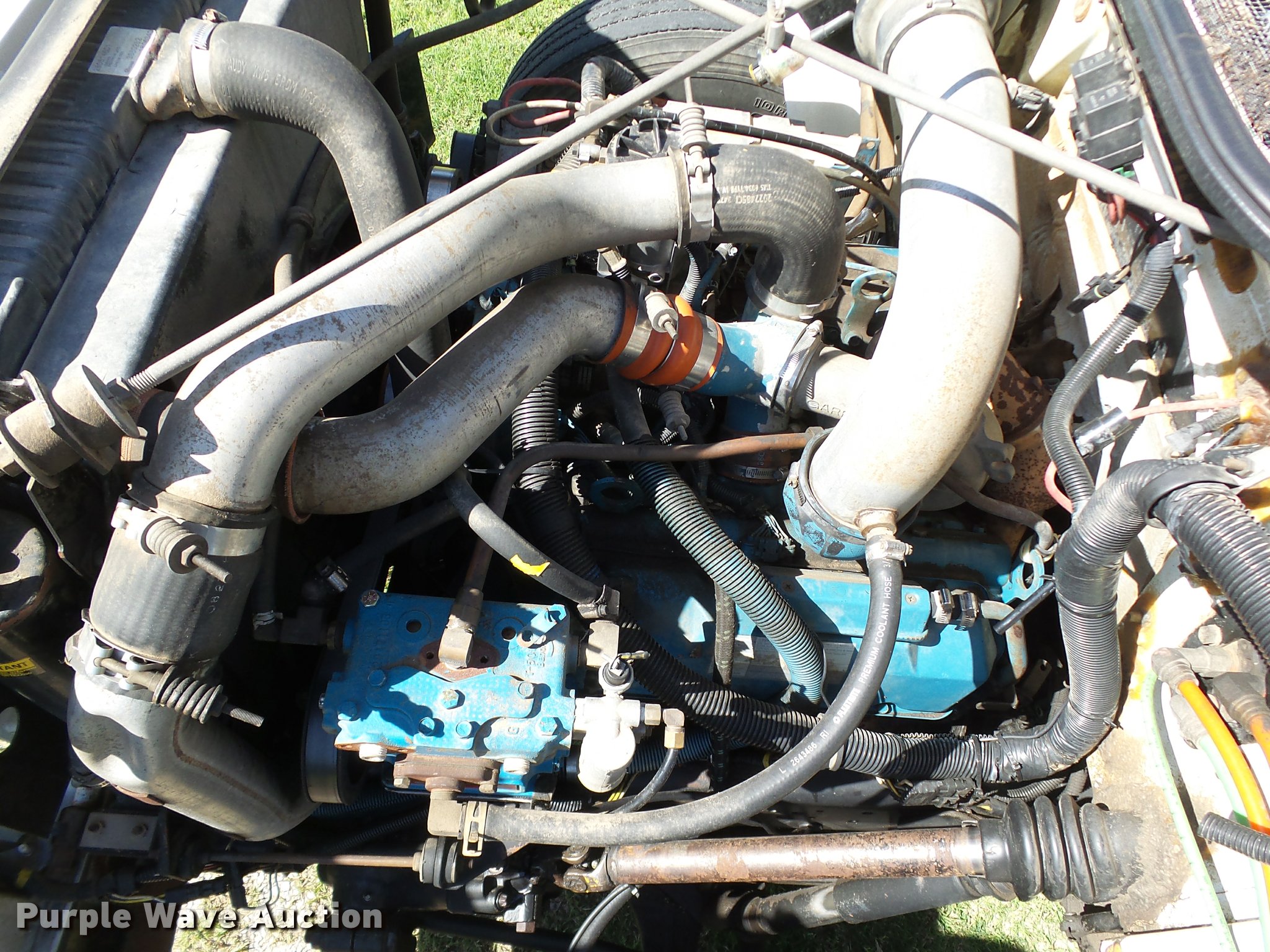 Purple Wave is selling a used Flat Bed Truck in Oklahoma. This item is a 1999 International 4700 Crew Cab dump flatbed truck with the following: 123,958 miles on odometer, International T444E B175 7.3L V8 diesel engine, 175 HP, Spicer five speed manual transmission, Single axle, Heat, Cruise, Front tow hooks, PTO, Wet kit, 13.5'L x 96"W steel dump flatbed, 12" side height, 12" side board height, Stake side pockets, Harsh RL-E50 lift, Dual ram hoist, Single fuel tank, Pintle hitch, Trailer wiring, Spring suspension, Air brakes, 188" wheelbase, 10R22.5 tires