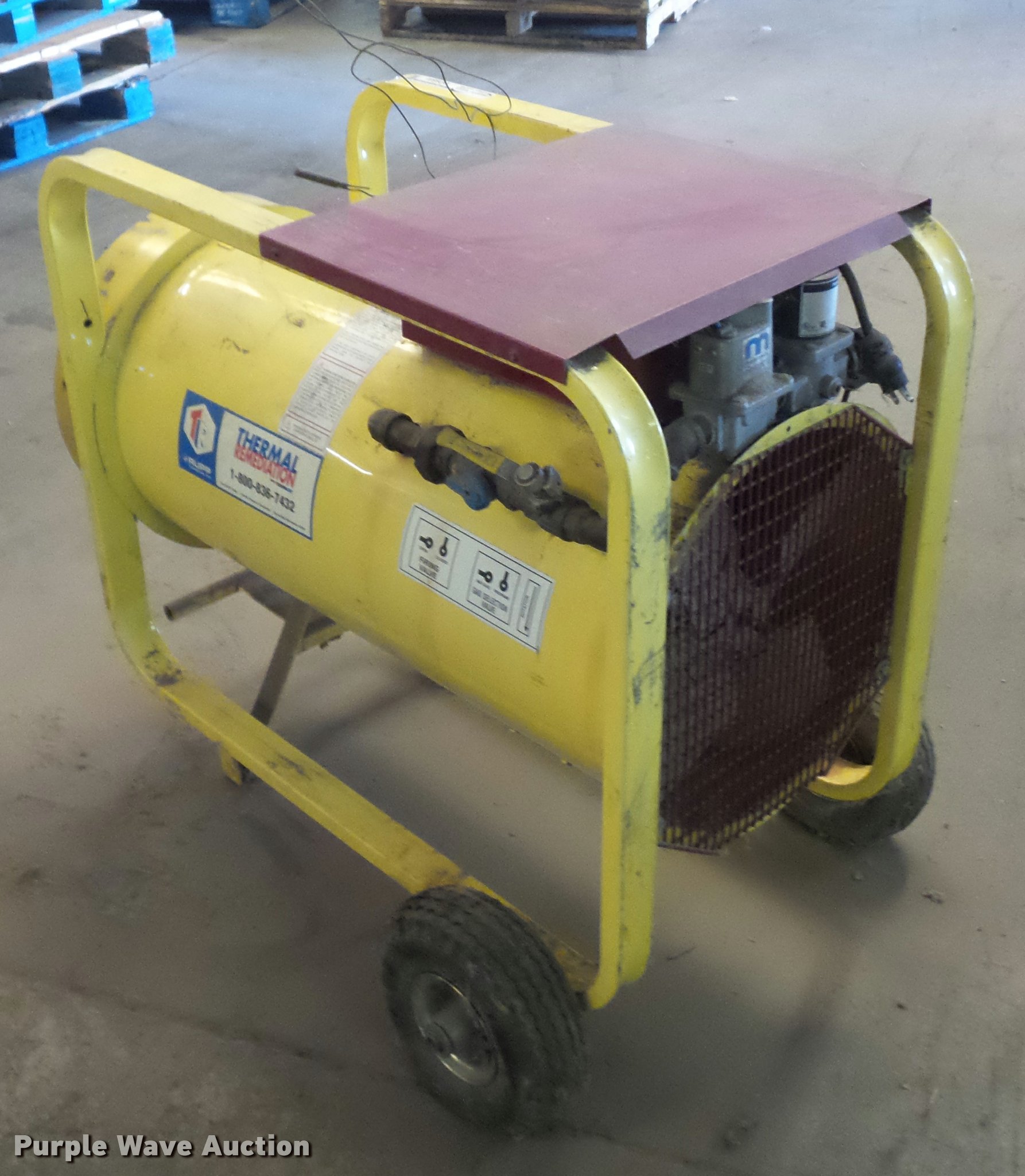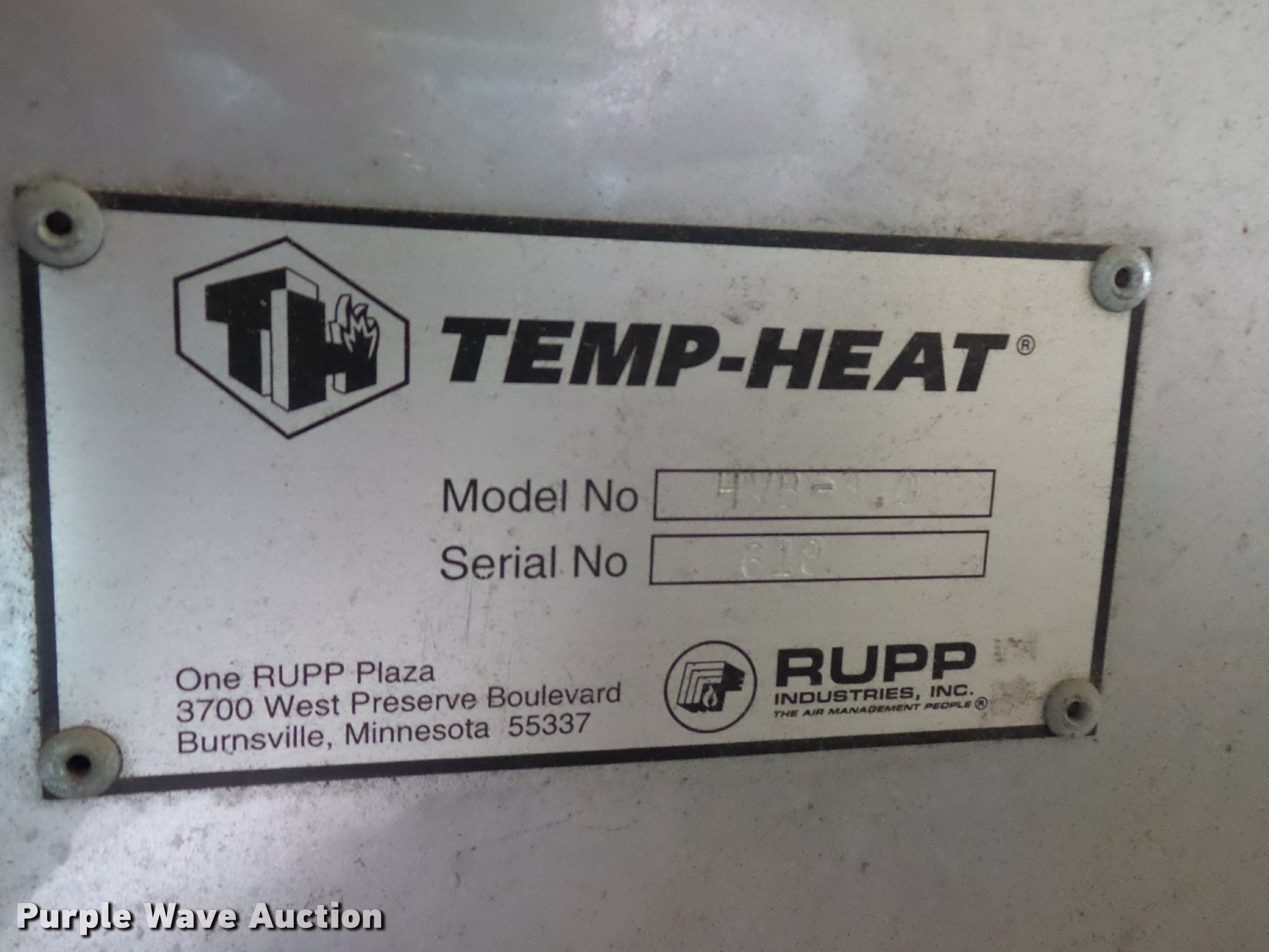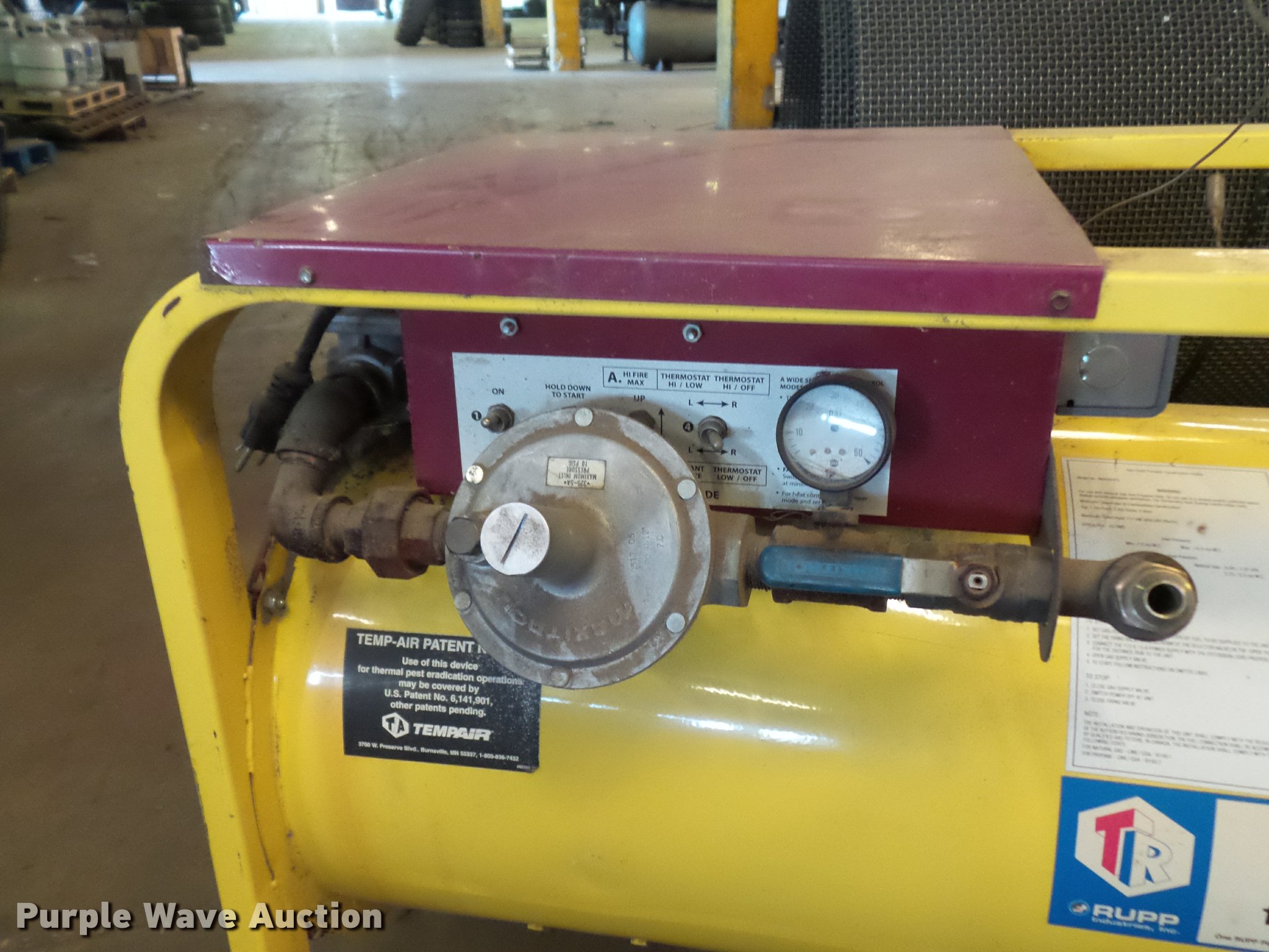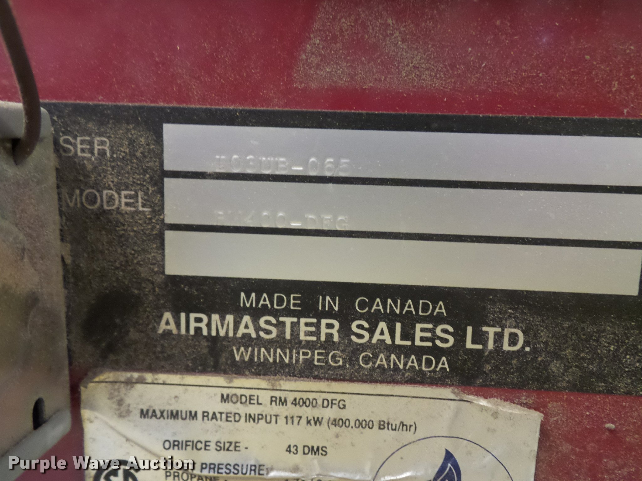 Purple Wave is selling a used Portable Heater or Fan in Missouri. This item is a Airmaster heater with the following: Model RM4000DFG, 400,000 BTU, 115V, Natural gas/propane fired, Temp-Heat HVB-3.0 fan, Serial 618