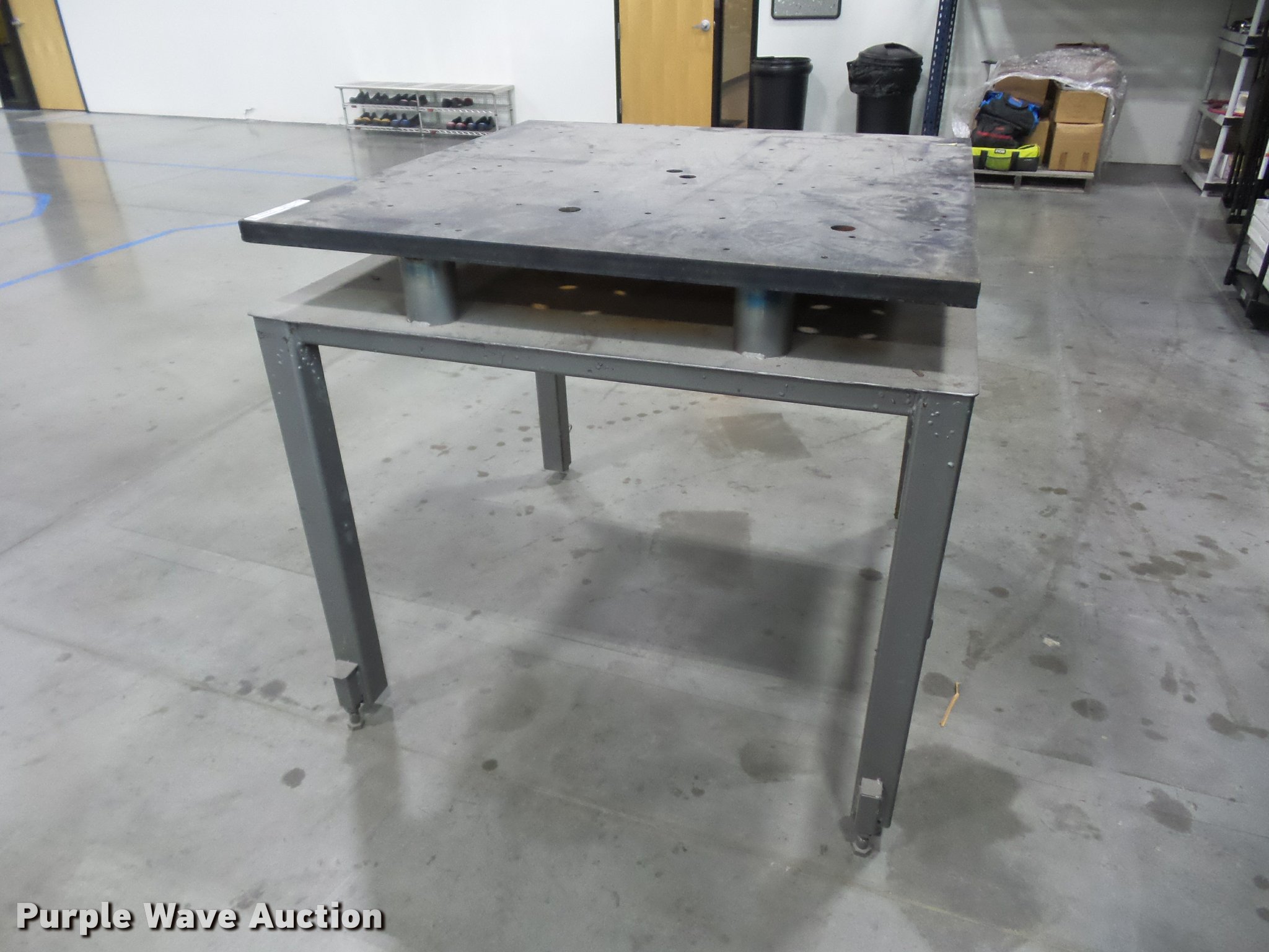 Purple Wave is selling a used Tools in Missouri. This item is a Welding table with the following: 4' x 4' x 38"H main table, 4' x 4' x 1 3/8" thick top plate