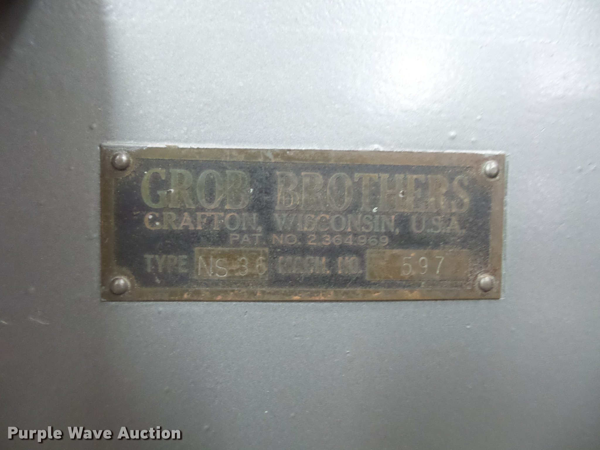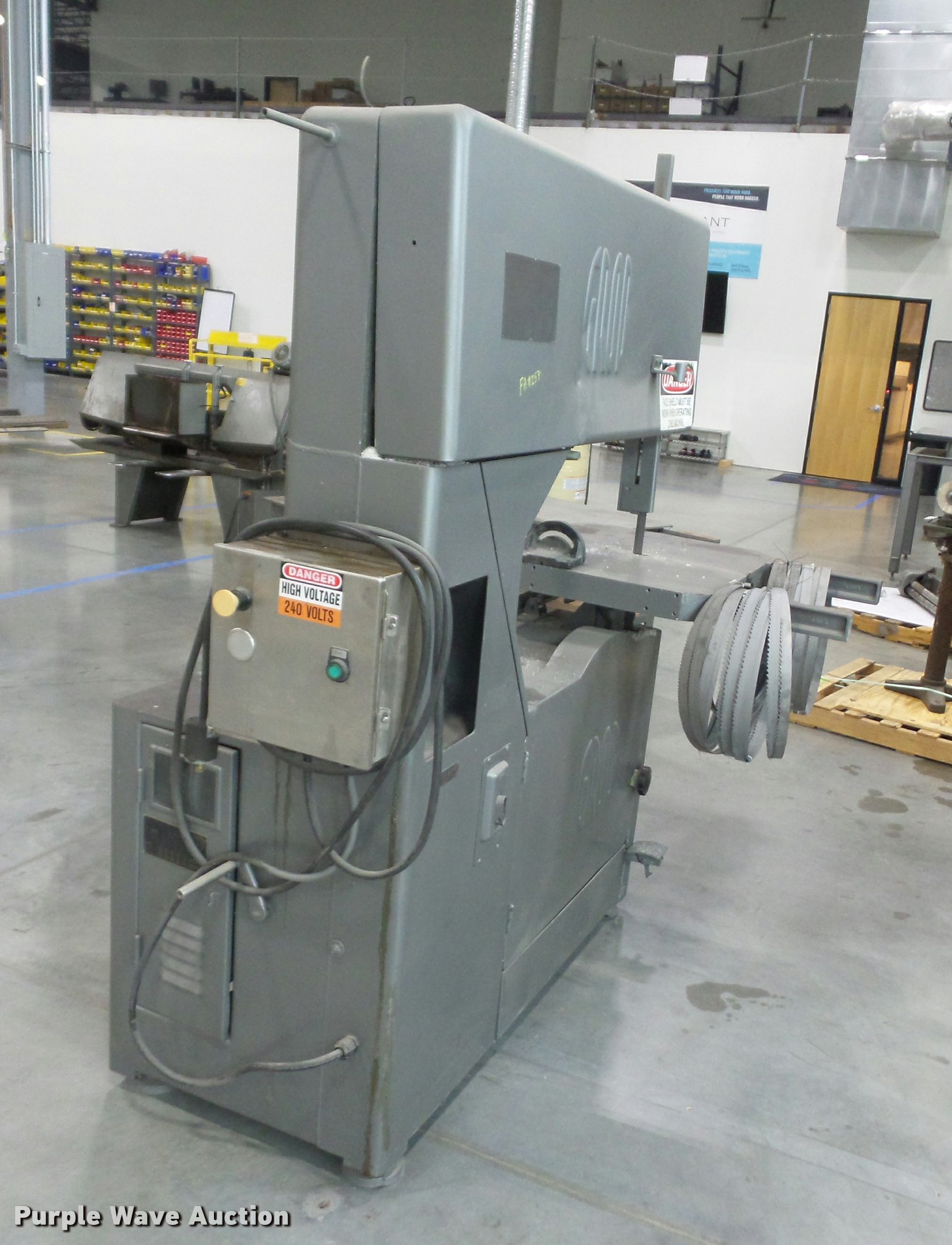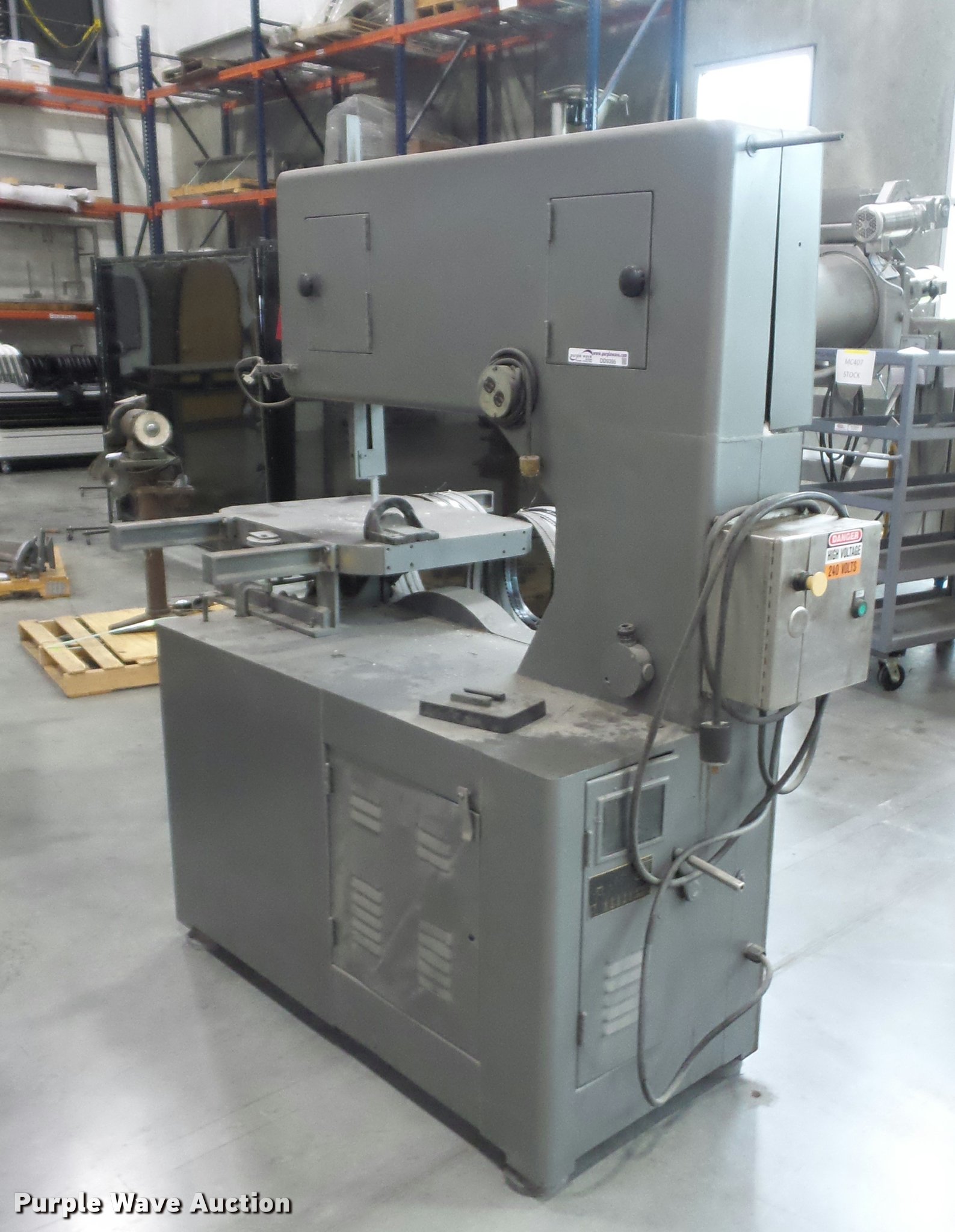 Purple Wave is selling a used Tools in Missouri. This item is a Grob Brothers vertical bandsaw with the following: Type NS36, 240V, Serial 597