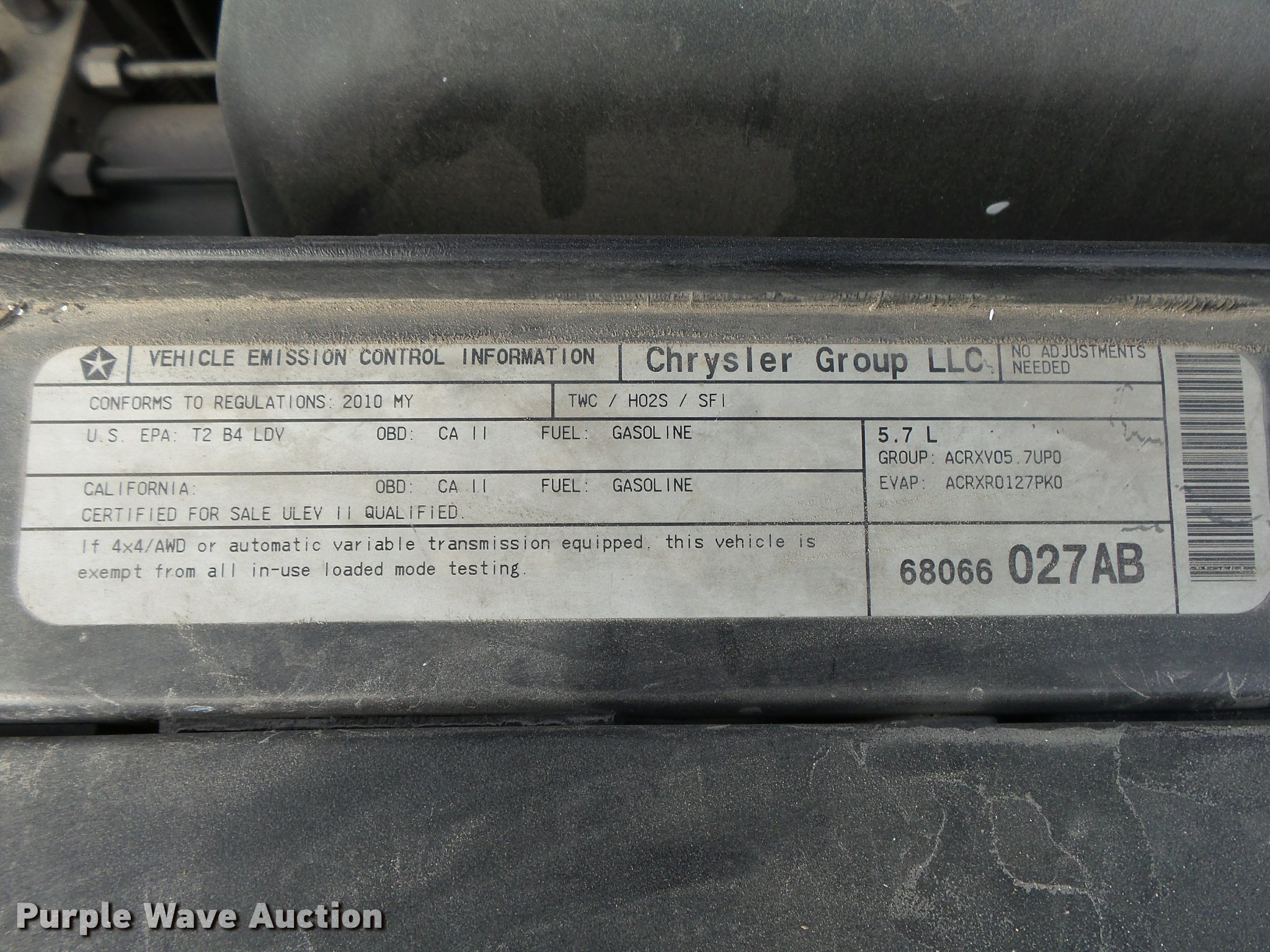 Purple Wave is selling a used Passenger Vehicle in Missouri. This item is a 2010 Dodge Charger with the following: 106,207 miles on odometer, 5.7L V8 OHV 16V gas engine, Automatic transmission, AC and heat, Cruise, AM/FM/CD, Power windows, locks, mirrors, and seat, Cloth interior, P225/60R18 tires, Check engine light on, TPMS light on, Center console missing, Driver seat damage