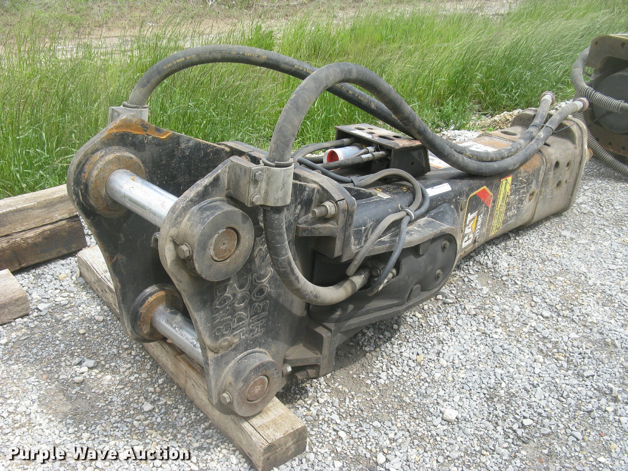 Purple Wave is selling a used Breaker or Hammer in Kansas. This item is a Caterpillar H120CS roll-out hydraulic hammer with the following: Caterpillar HBH120B quick coupler, DB linkage, Fits Caterpillar 320 and 323 excavators, Reconditioned by a Caterpillar dealer, Serial 9MM05433