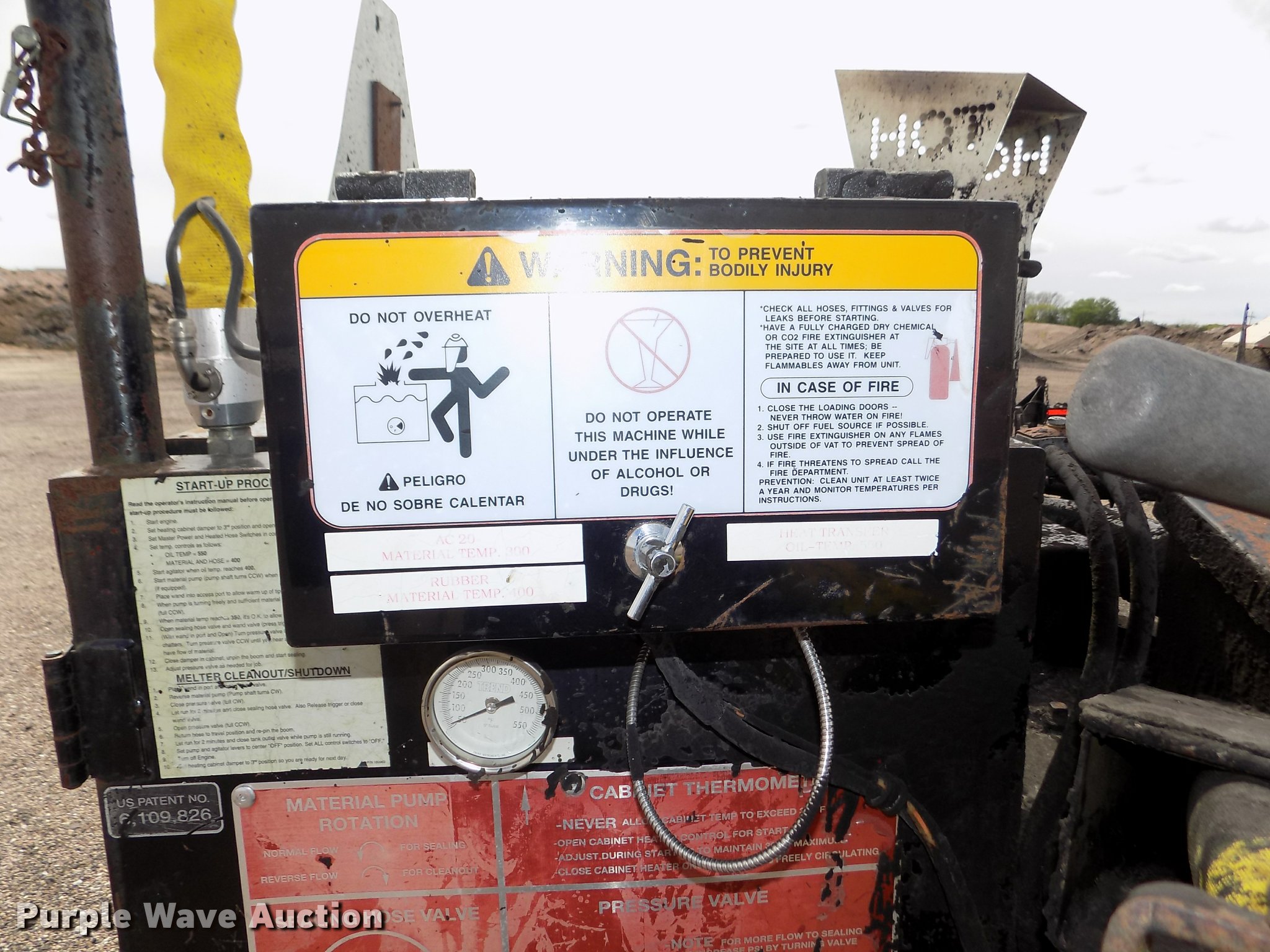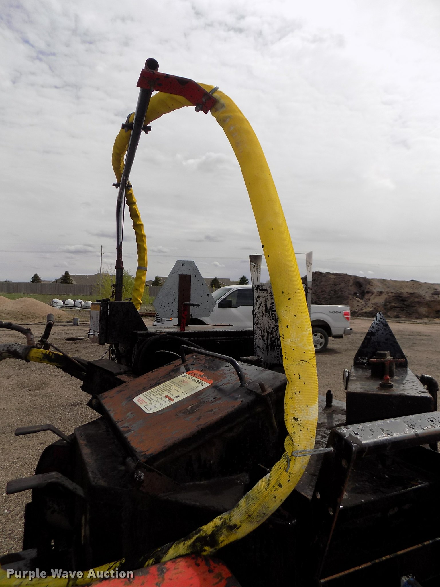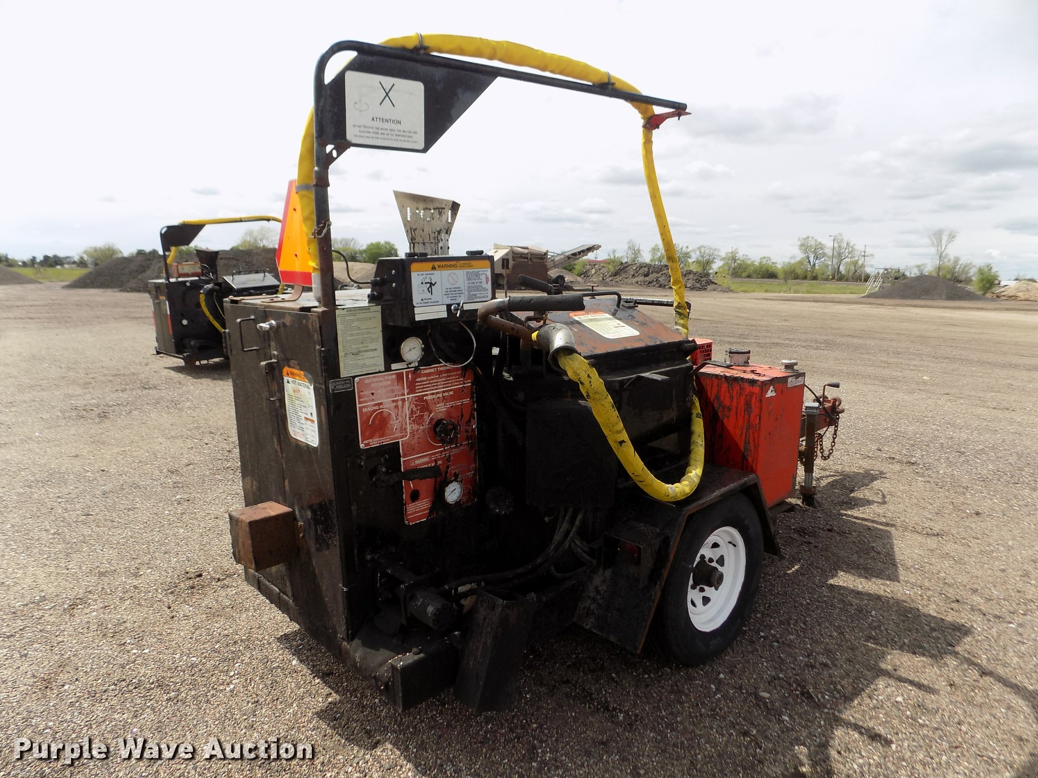 Purple Wave is selling a used Pot Hole Patcher in Nebraska. This item is a 2005 Cimline 110DMA melter applicator with the following: 8,570 hours on meter, Isuzu 3LB1PW-15 three cylinder diesel engine, 3LB1-431478, Beckett 12V advanced burner control, ADC series oil burner, Serial 050107-92463, 110 gallon capacity, Wand, Hose, Safety chains, Adjustable pintle hitch, Surge brakes, ST225/75R15 tires, Unit# 90082
