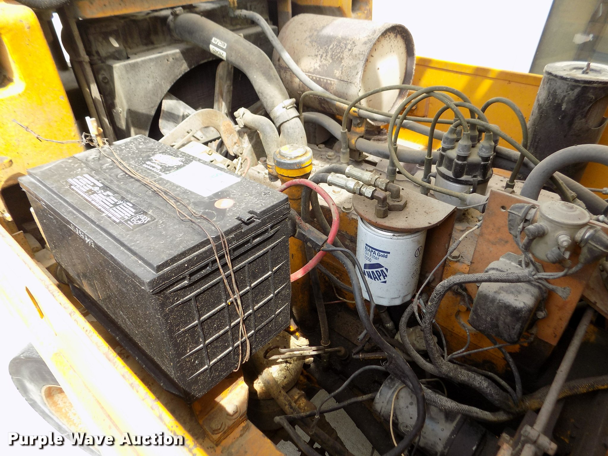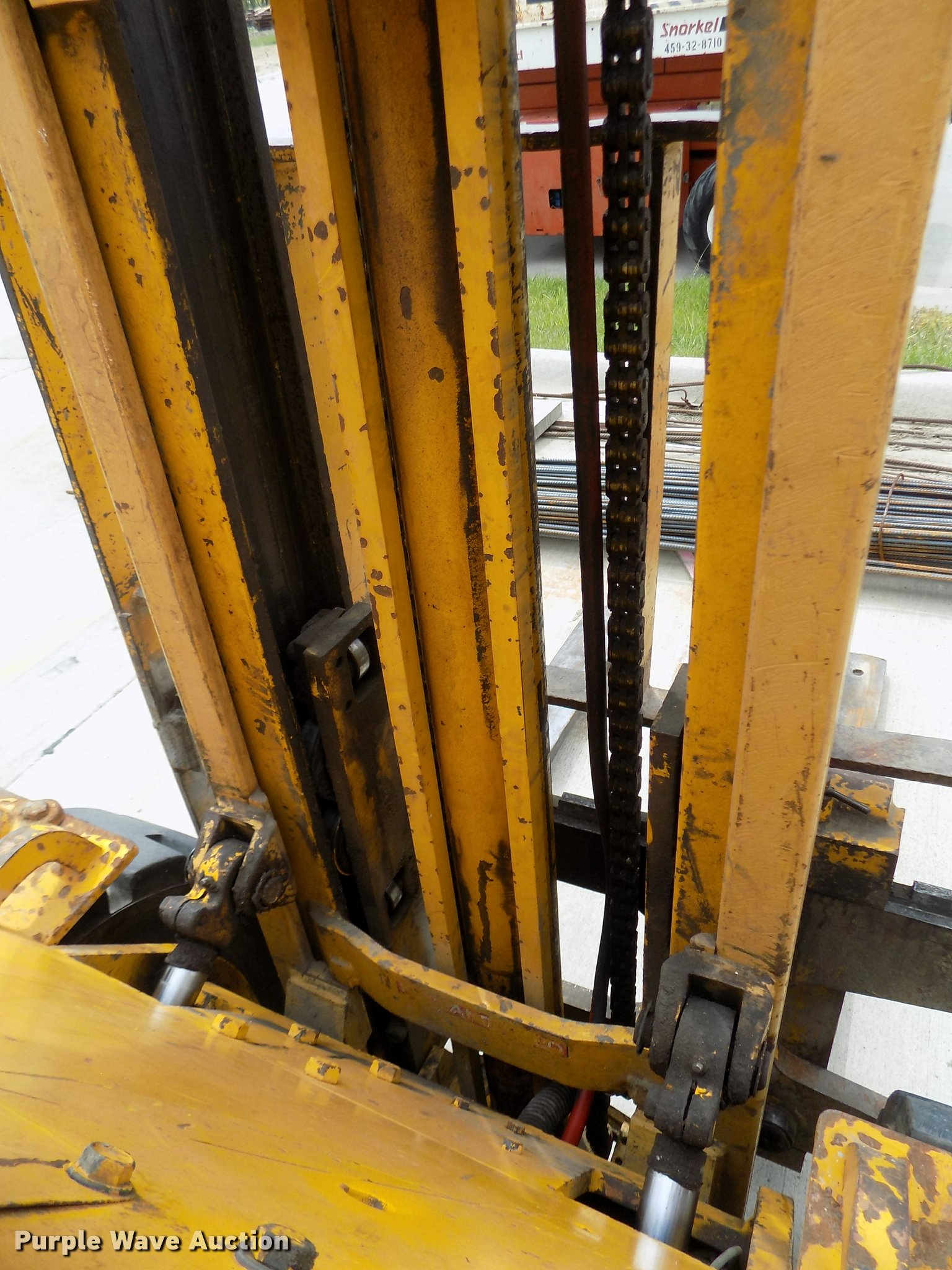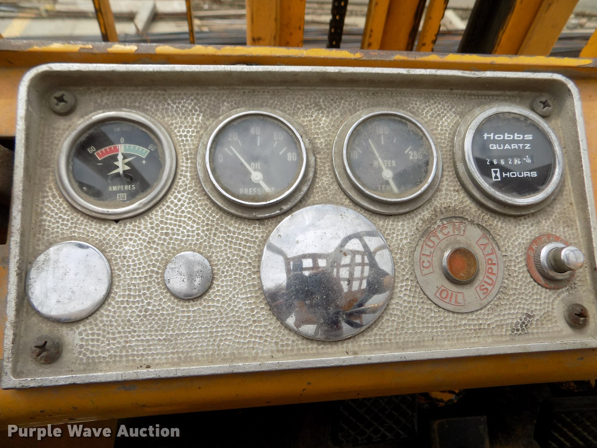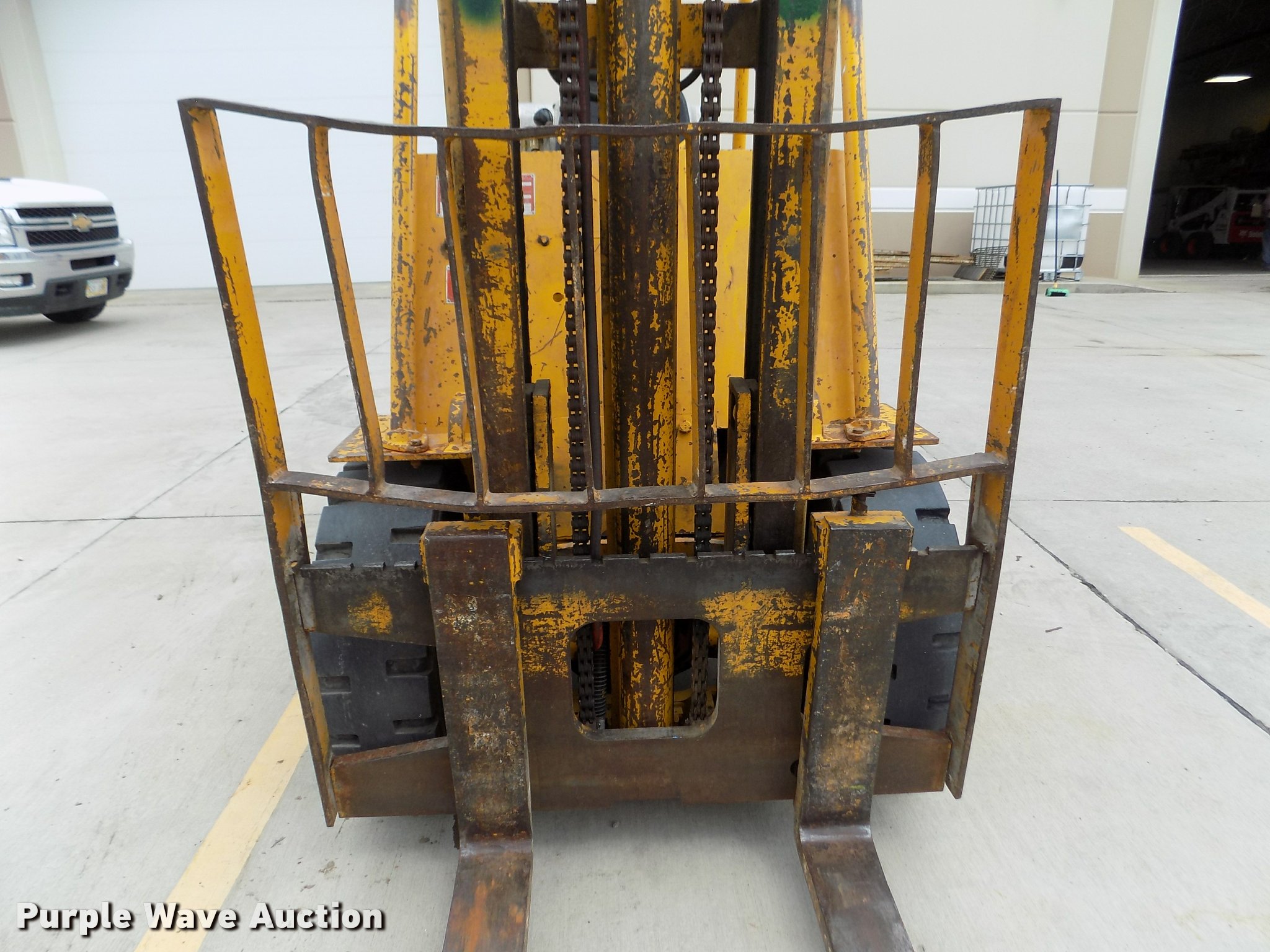 Purple Wave is selling a used Strt. Mast Rough Terr. Forklift in Nebraska. This item is a Caterpillar V60B forklift with the following: 2,663 hours on meter, Six cylinder propane engine, 2F-2R gears, Canopy, 6,000 lbs maximum lift capacity, 130" maximum lift height, Two stage mast, Mast tilt, 46"L x 5"W forks, Hole in forks, 45"W x 48"H carriage, 811 x 05 solid front tires, 6.50 x 10 solid rear tires, 9,310 lbs. base operating weight, Man basket is not included, Battery weak, Propane bottle is not included, Serial 89M1057