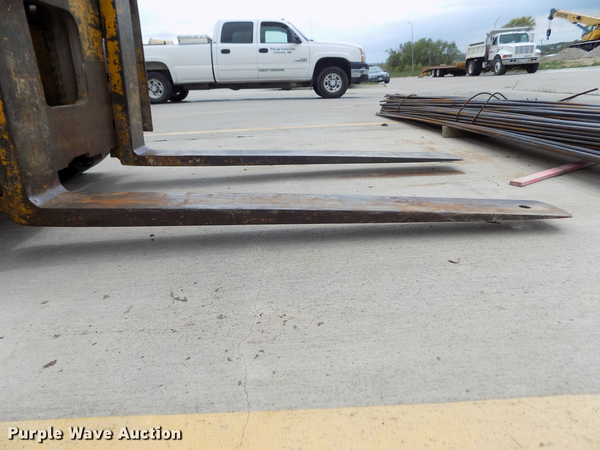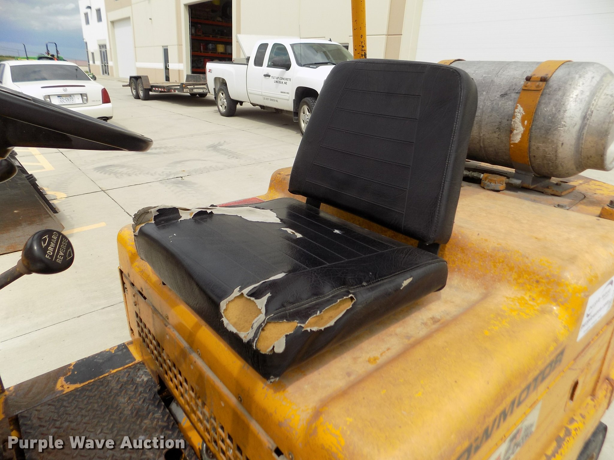 Caterpillar V60B forklift. 2,663 hours on meter, Six cylinder propane engine, 2F-2R gears, Canopy, 6,000 lbs maximum lift capacity, 130" maximum lift height, Two stage mast, Mast tilt, 46"L x 5"W forks Hole in forks, 45"W x 48"H carriage, 811 x 05 solid front tires, 6.50 x 10 solid rear tires, 9,310 lbs. base operating weight, Man basket is not included, Battery weak, Propane bottle is not included, Serial 89M1057. Tilt Up Concrete Inc.. 200 NW 28th St. Lincoln, NE 68528