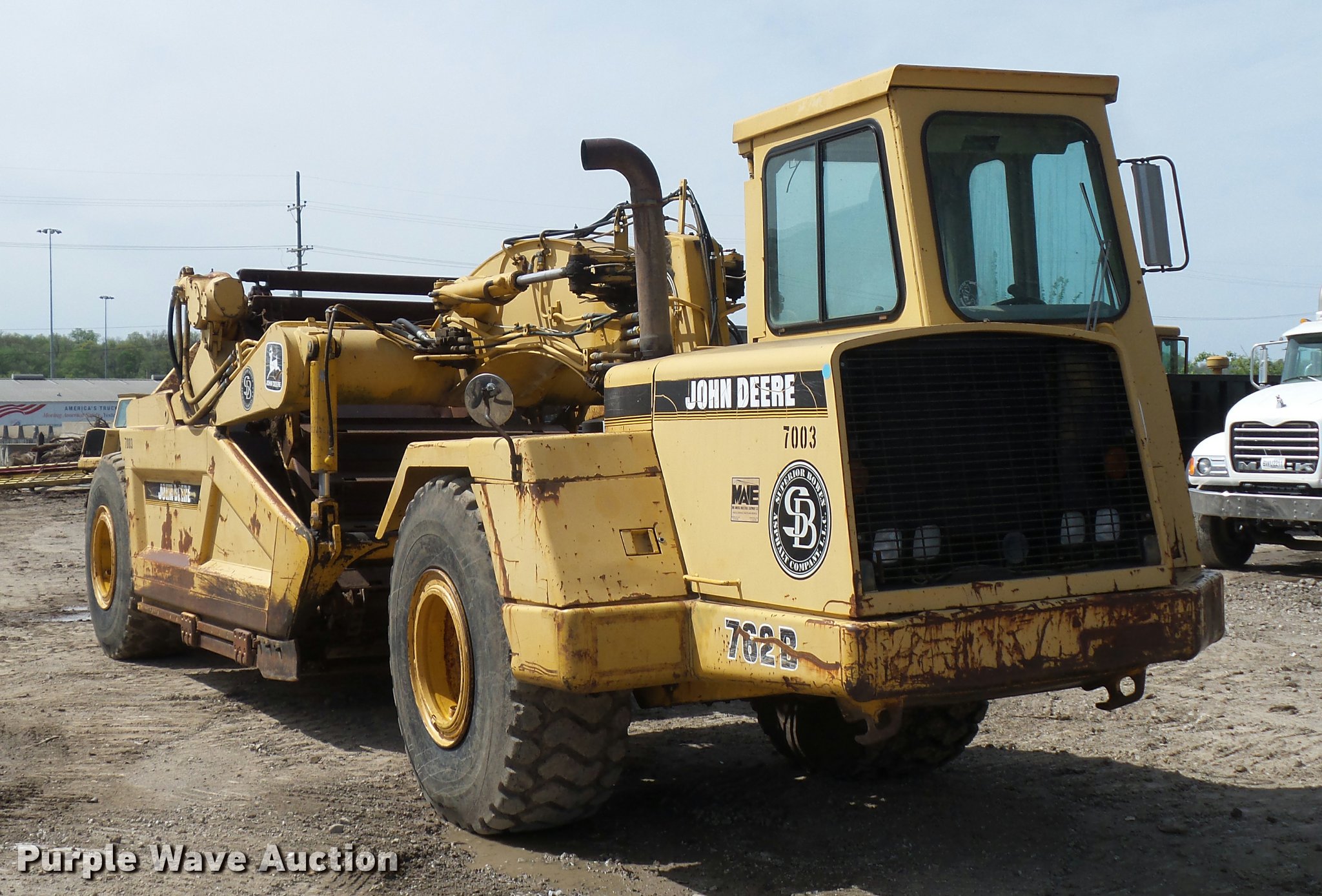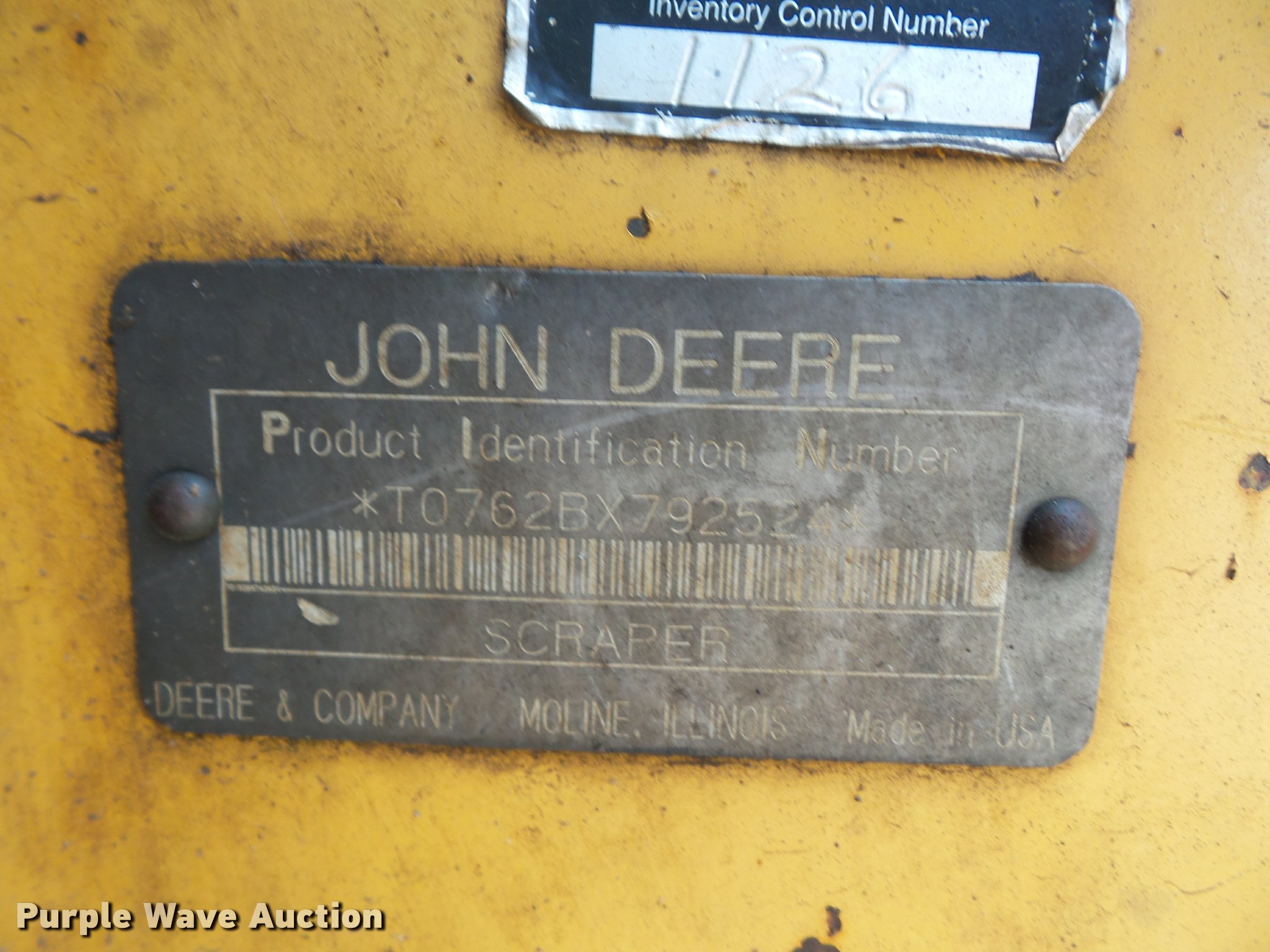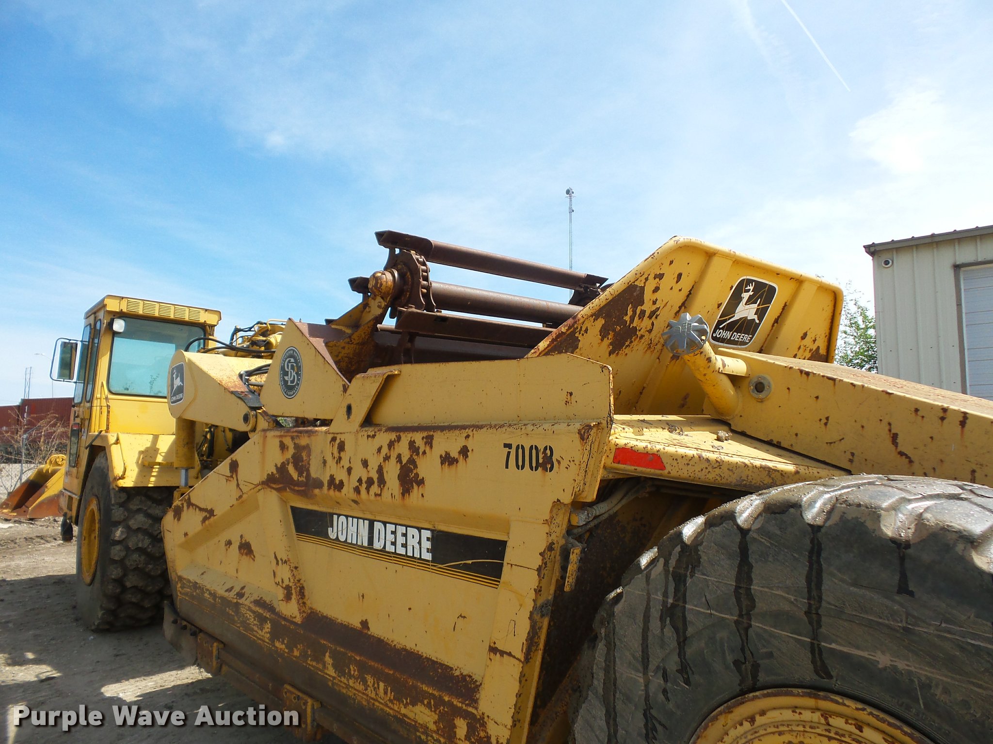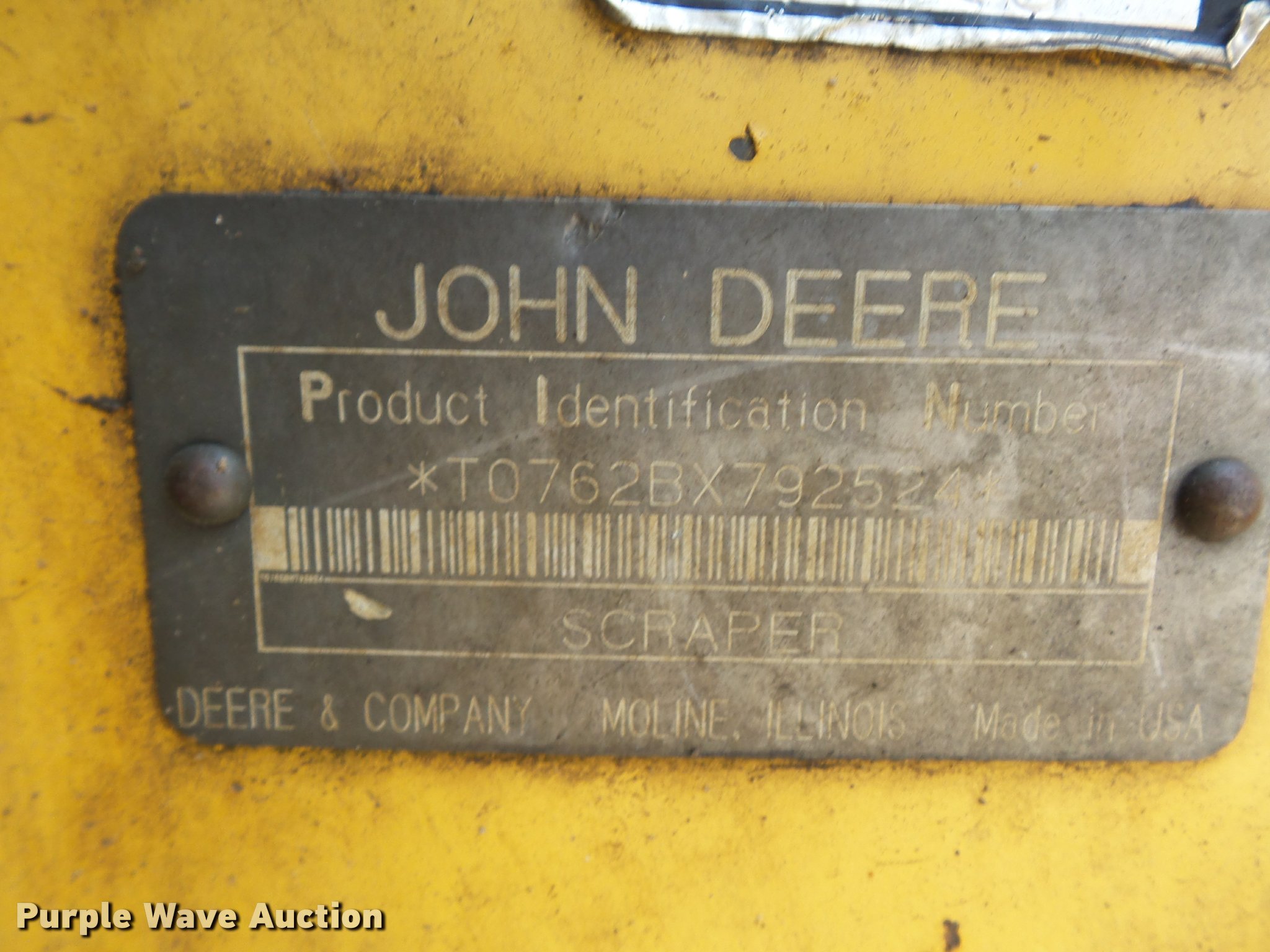 Purple Wave is selling a used Elevating Scraper in Missouri. This item is a 1993 John Deere 762B elevating scraper with the following: 6,175 hours on meter, John Deere six cylinder turbo diesel engine, Powershift transmission, 6F-1R gears, AC and heat, Air suspension seat, 94"W bowl, Hydraulic lift, Rear push block, Front work lights, 23.5R25 tires, Unknown operating condition of AC, Serial T0762BX792524