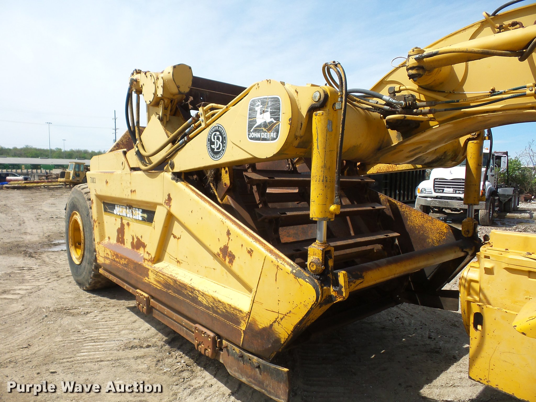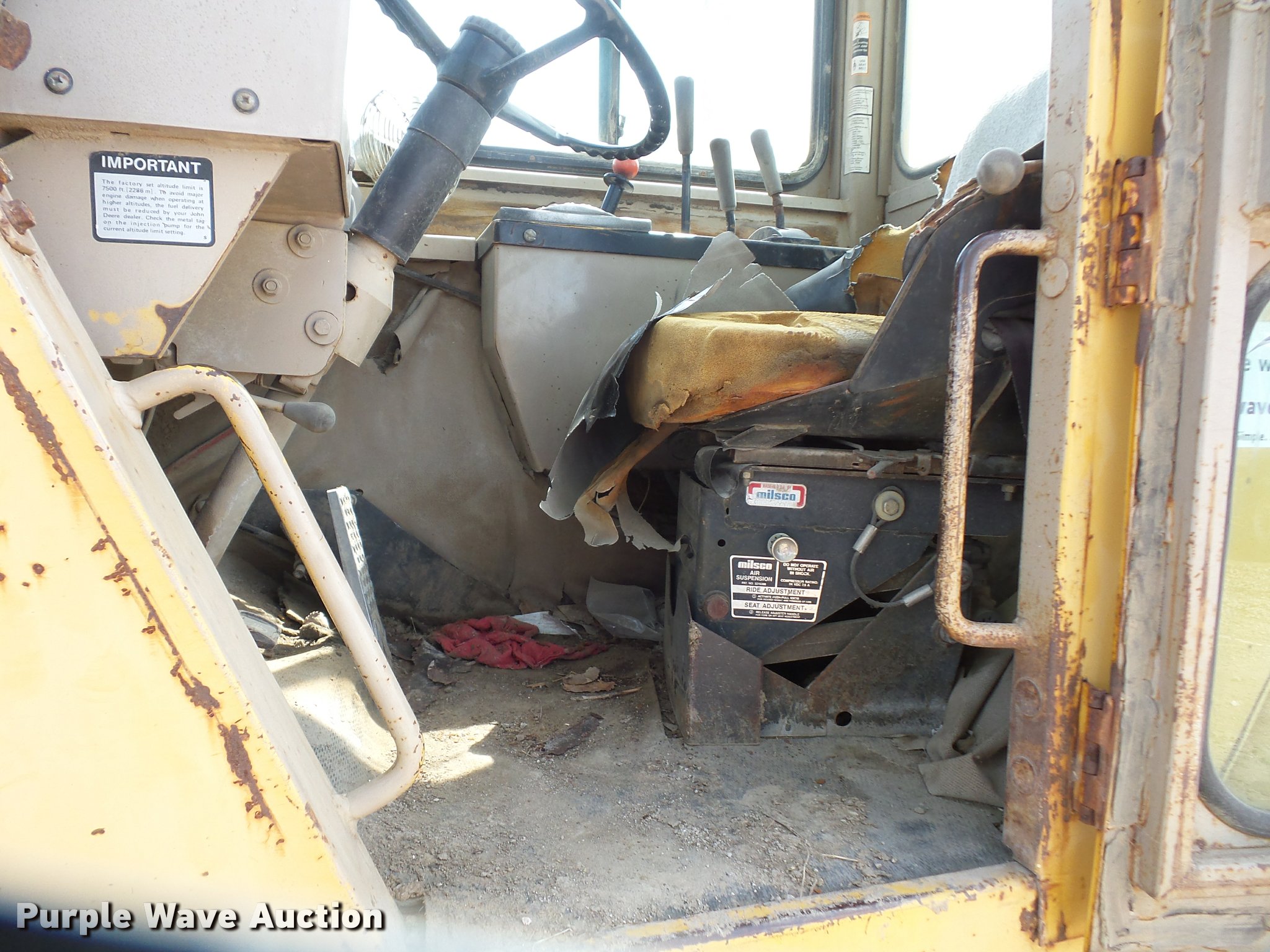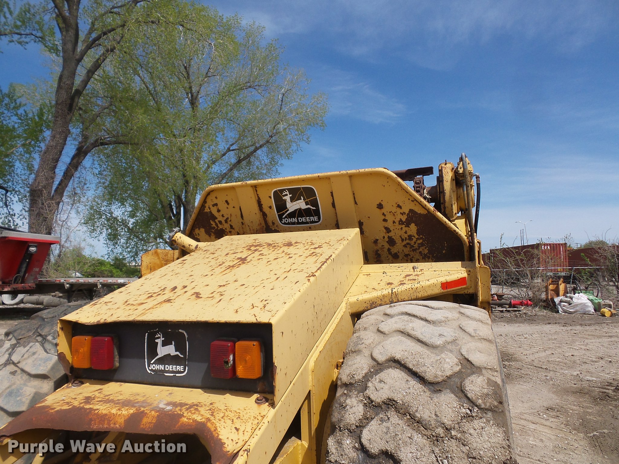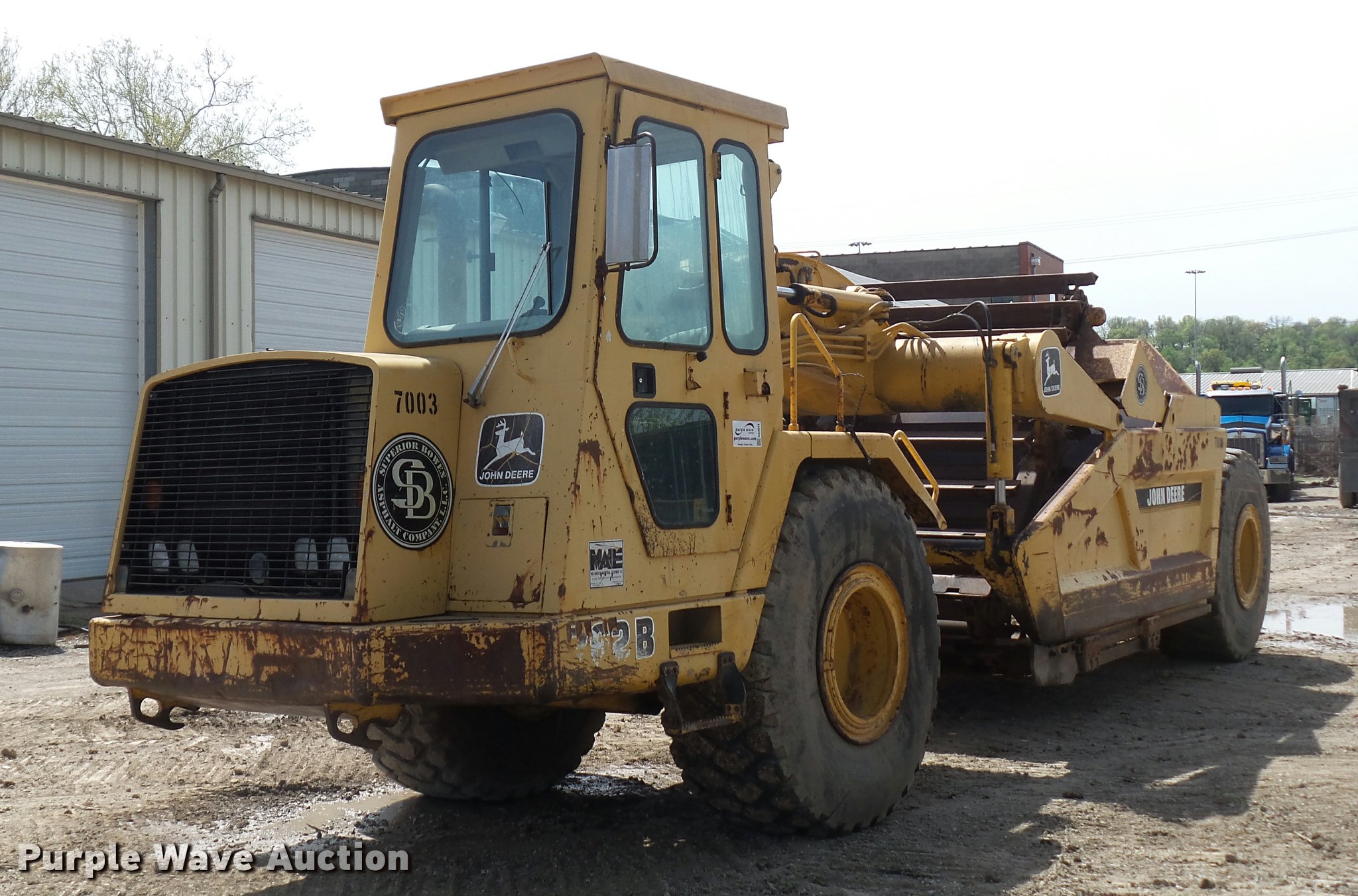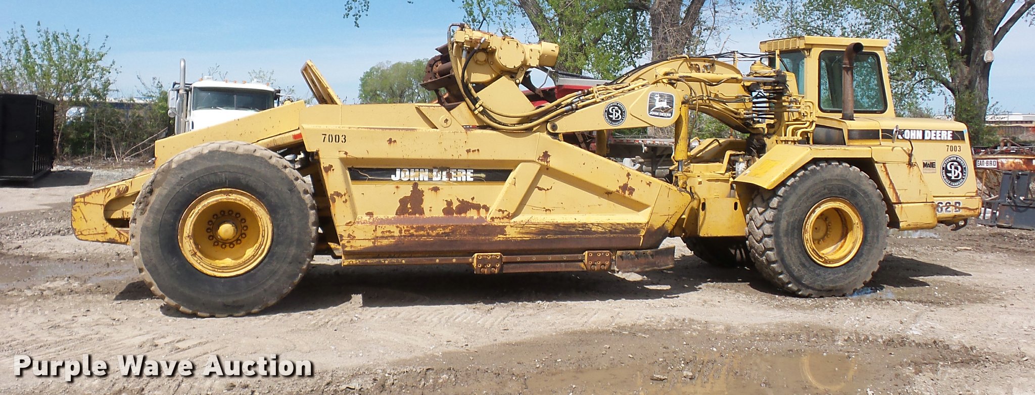 Purple Wave is selling a used Elevating Scraper in Missouri. This item is a 1993 John Deere 762B elevating scraper with the following: 6,175 hours on meter, John Deere six cylinder turbo diesel engine, Powershift transmission, 6F-1R gears, AC and heat, Air suspension seat, 94"W bowl, Hydraulic lift, Rear push block, Front work lights, 23.5R25 tires, Unknown operating condition of AC, Serial T0762BX792524