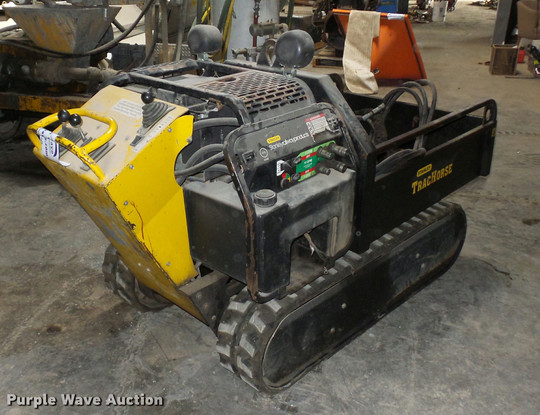 Purple Wave is selling a used Concrete Dispenser in Missouri. This item is a Stanley Track Horse buggy with the following: 453 hours on meter, Gas engine, Auxiliary hydraulics, Front work lights, 8"W tracks, No battery