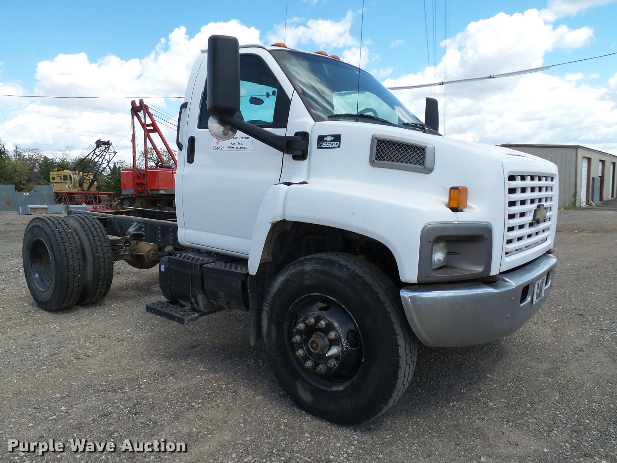 Purple Wave is selling a used Truck Chassis in Oklahoma. This item is a 2005 Chevrolet C6500 truck chassis with the following: 303,892 miles on odometer, 25,428 hours on meter, Caterpillar C7 7.2L six cylinder turbo diesel engine, 207 HP, Serial KAL63779, Six speed manual transmission, Single axle, AC and heat, AM/FM, Tilt, Cruise, PTO, Front tow hooks, Dual fuel tanks, 154" wheelbase, Spring suspension, Hydraulic brakes, 11R22.5 tires, GVWR 25,950 lbs, FAWR 10,000 lbs, RAWR 19,000 lbs, Unit# 761.191
