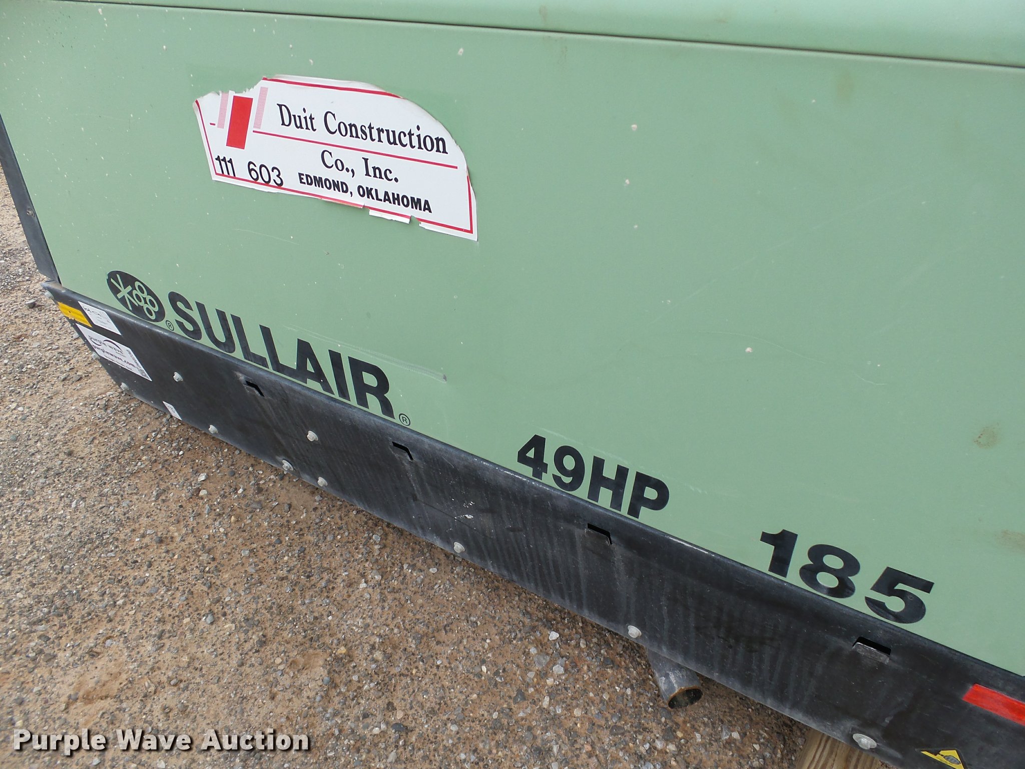 This 2013 Sullair 185DPQ air compressor will sell to the highest bidder regardless of price.