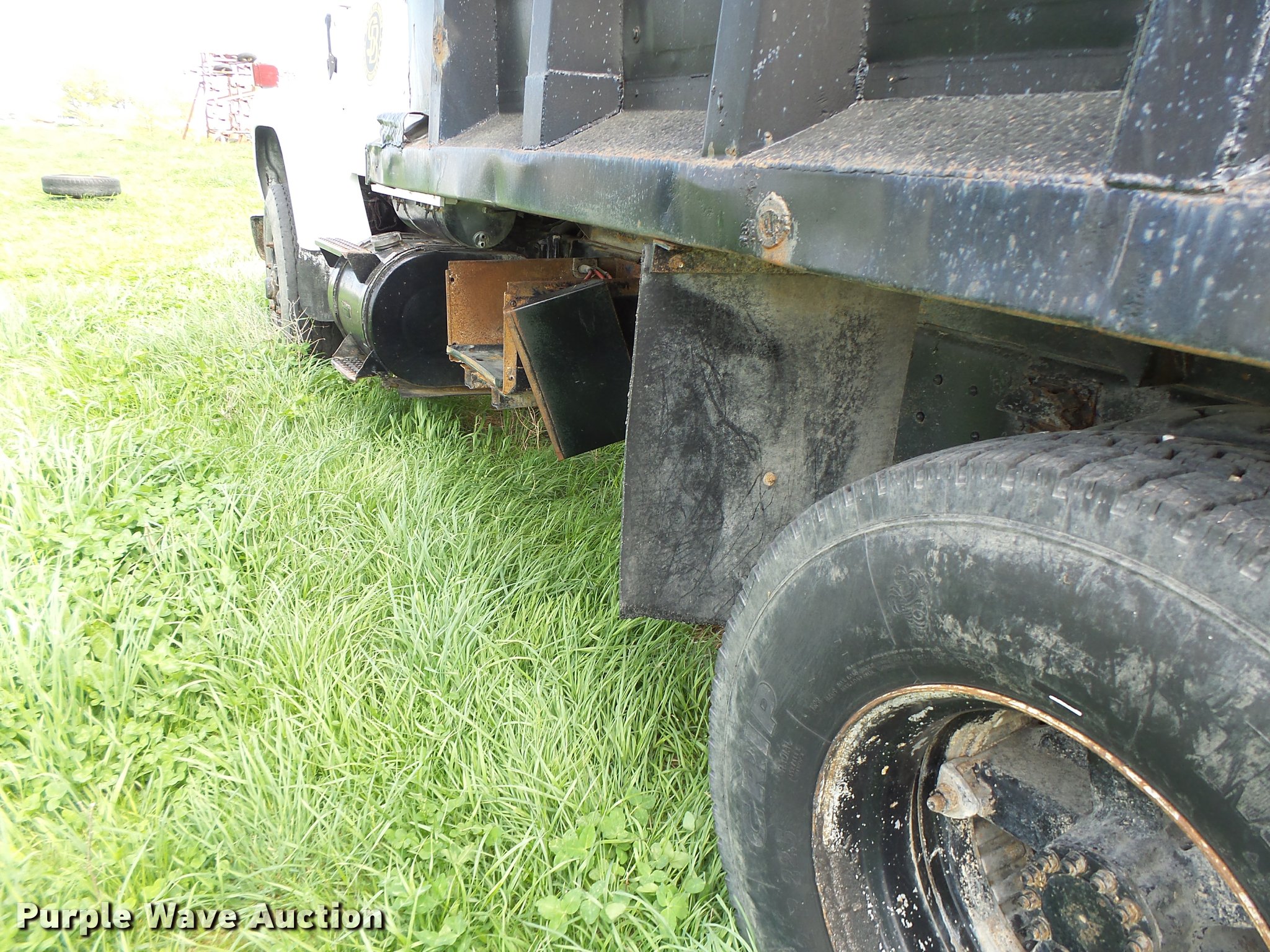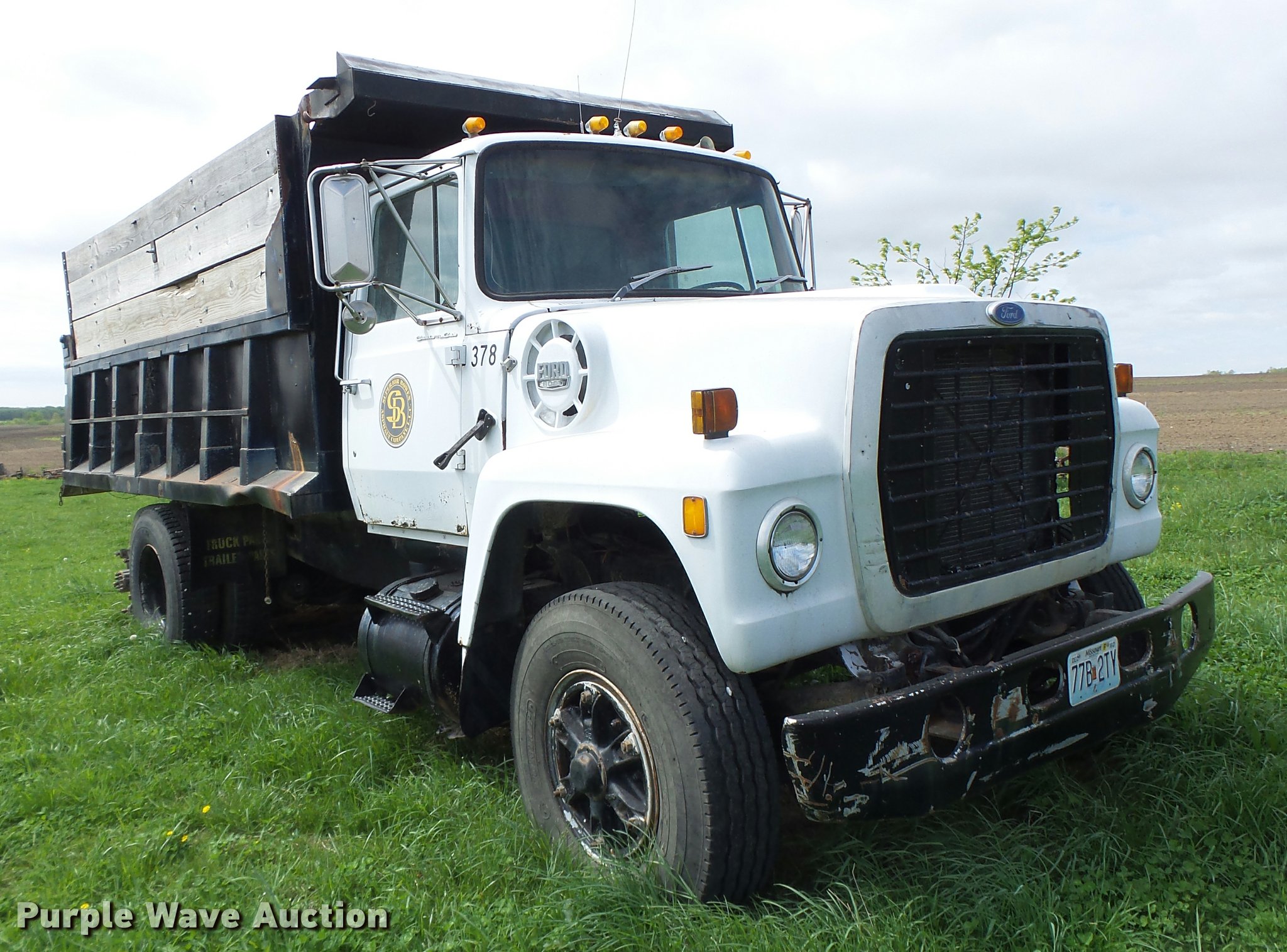 Purple Wave is selling a used Construction Dump Truck in Missouri. This item is a 1980 Ford 8000 dump truck with the following: 94,024 miles on odometer, Caterpillar 3208 diesel engine, Eaton Fuller Road Ranger RT613 13 speed manual transmission, Tandem axle, Inter-axle differential lock, Heat, AM/FM/cassette, Air suspension seat, PTO, Steel dump bed, 15'L x 8'W, 33" side height, 32" side board height, Single ram hoist, Air operated end gate, Dual fuel tanks, Spring suspension, Air brakes, 315/80R22.5 front tires, 12R22.5 rear tires, Engine bad, No battery