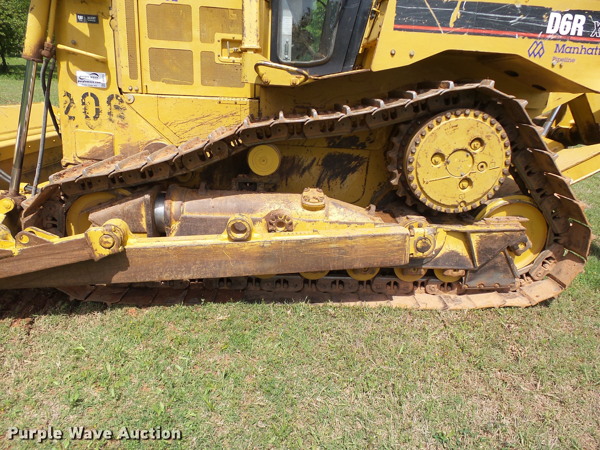 Purple Wave is selling a used Crawler Dozer in Oklahoma. This item is a 2006 Caterpillar D6R XL Series III dozer with the following: 9,540 hours on meter, Caterpillar C9 Acert six cylinder turbo diesel engine, 200 HP, Powershift transmission, 3F-3R gears, Enclosed cab, AC and heat, Suspension seat, Differential steering, Front and rear wipers, Sweeps, Screen guards, Front and rear work lights, 160"W straight dozer blade, Caterpillar D6 ripper, (3) shanks, Seven bottom rollers, 24" single grouser track pads, Serial GJB002016