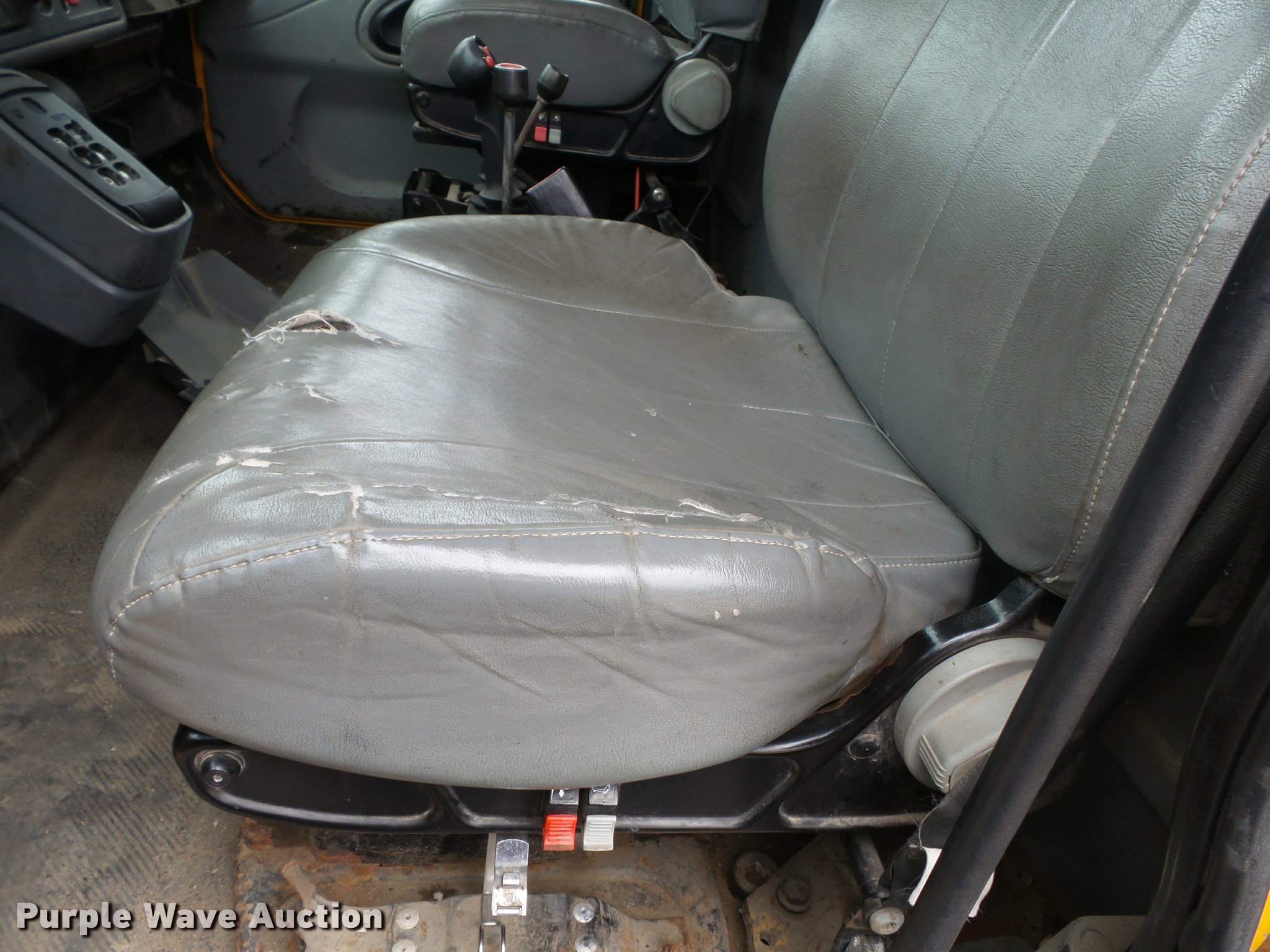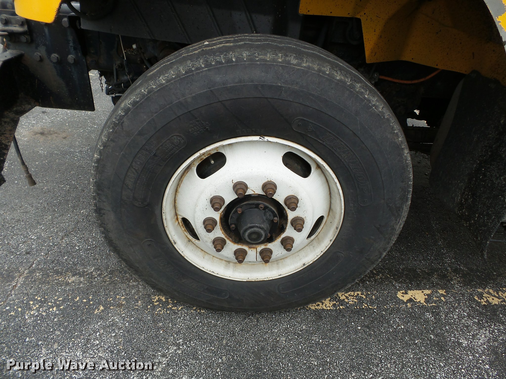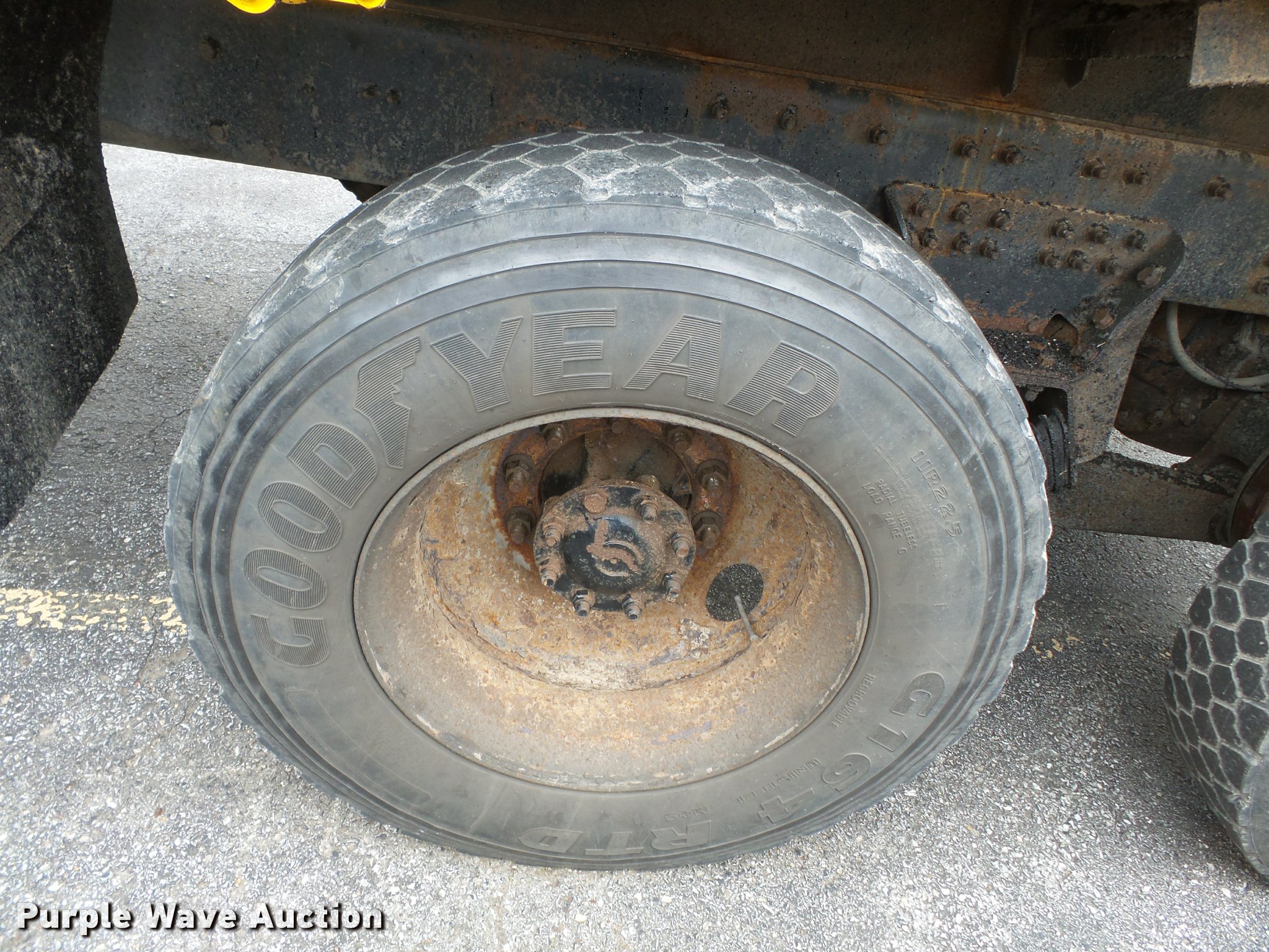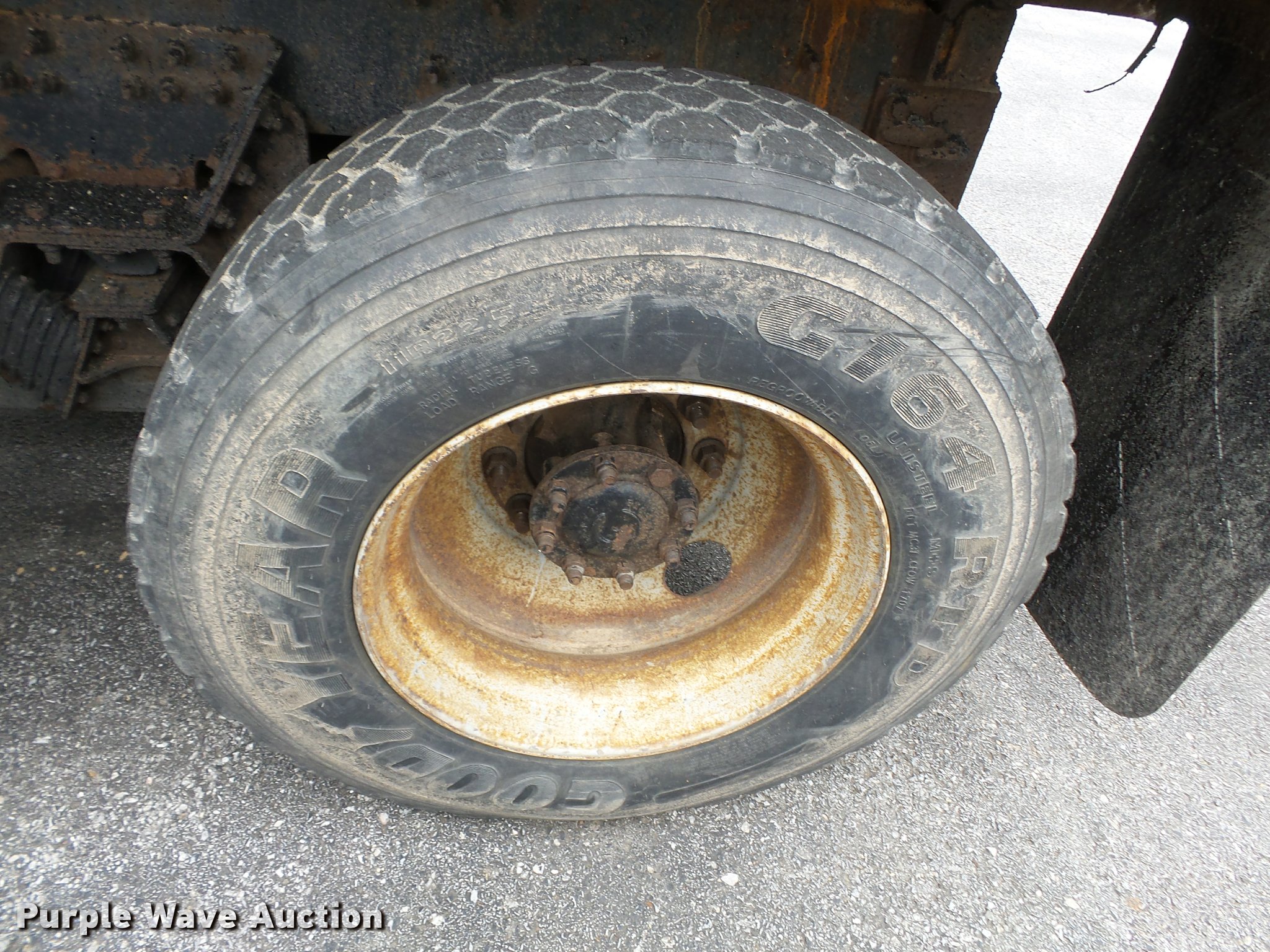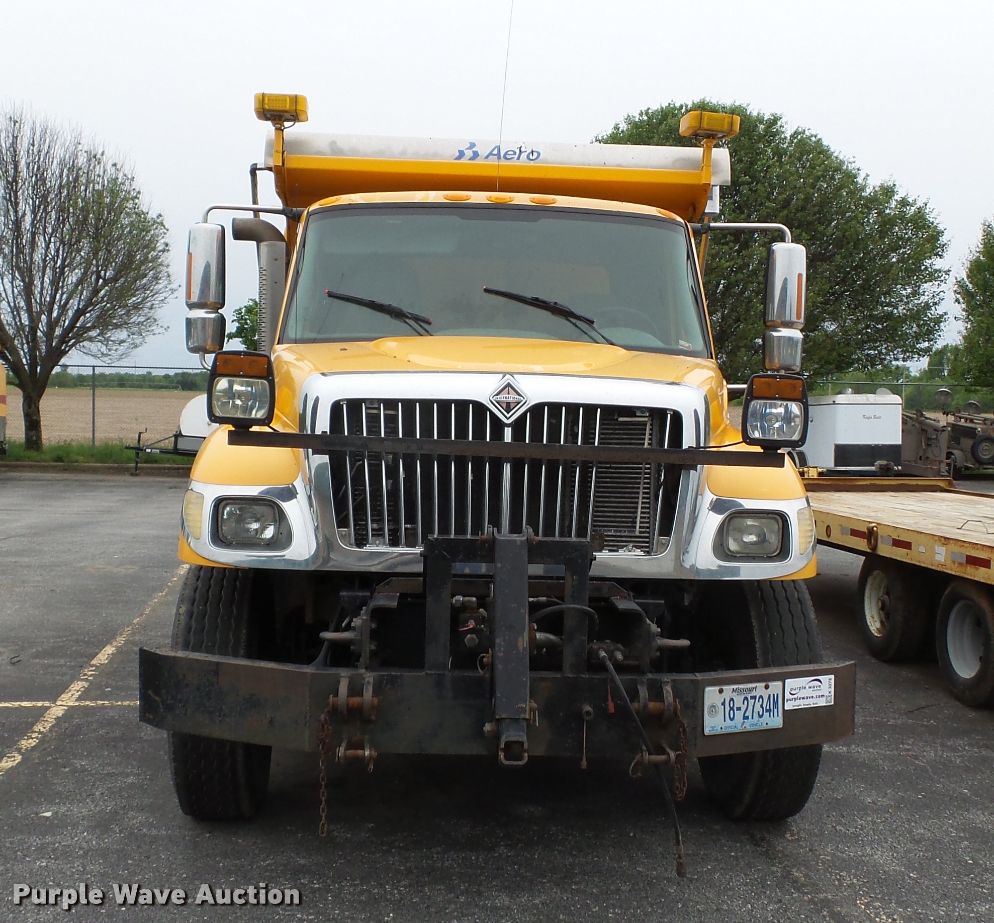 Purple Wave is selling a used Construction Dump Truck in Missouri. This item is a 2006 International 7400 dump truck with the following: 187,356 miles on odometer, 9,462 hours on meter, International DT570 9.3L L6 turbo diesel engine, Automatic transmission, Tandem axle, AC and heat, Cruise, AM/FM, Power windows, Power and heated mirrors, Air suspension seat, Block heater, Front mounted PTO, Backup alarm, Wheeler steel dump bed, 16'L x 96"W, Single ram hoist, Air operated end gate, Roll tarp, Single fuel tank, 213" wheelbase, Walking beam suspension, Air brakes, Engine brake, 315/80R22.5 front tires, 11R22.5 rear tires, GVWR 58,000 lbs, FAWR 18,000 lbs, IAWR 20,000 lbs, RAWR 20,000 lbs, Two way radio is not included, Beacon light is not included, Inside rear wheels missing, Rear wheel seal leaking, Bed hydraulics disables, Bed rail rusted, Check engine light on, MODOT ID 7695