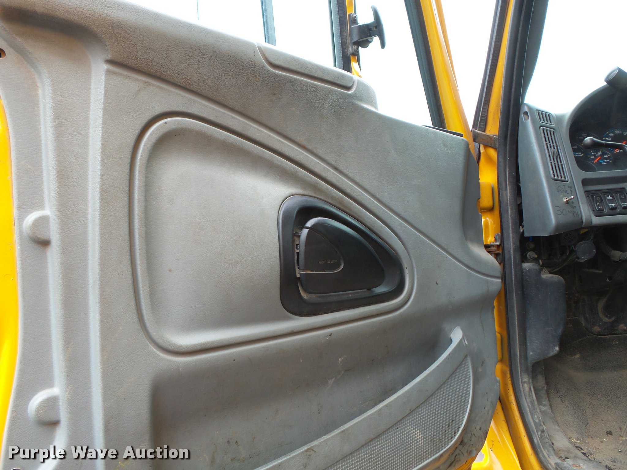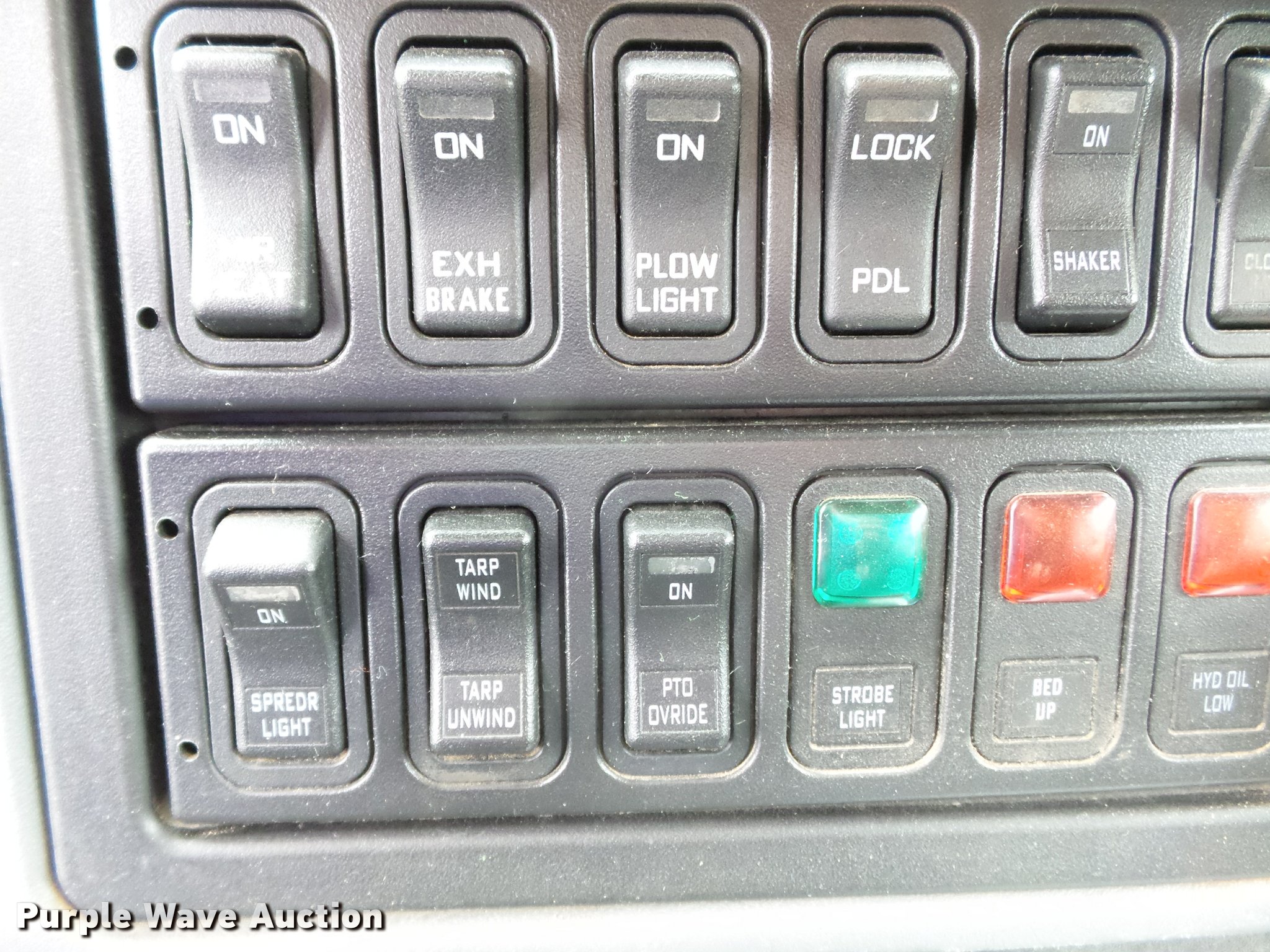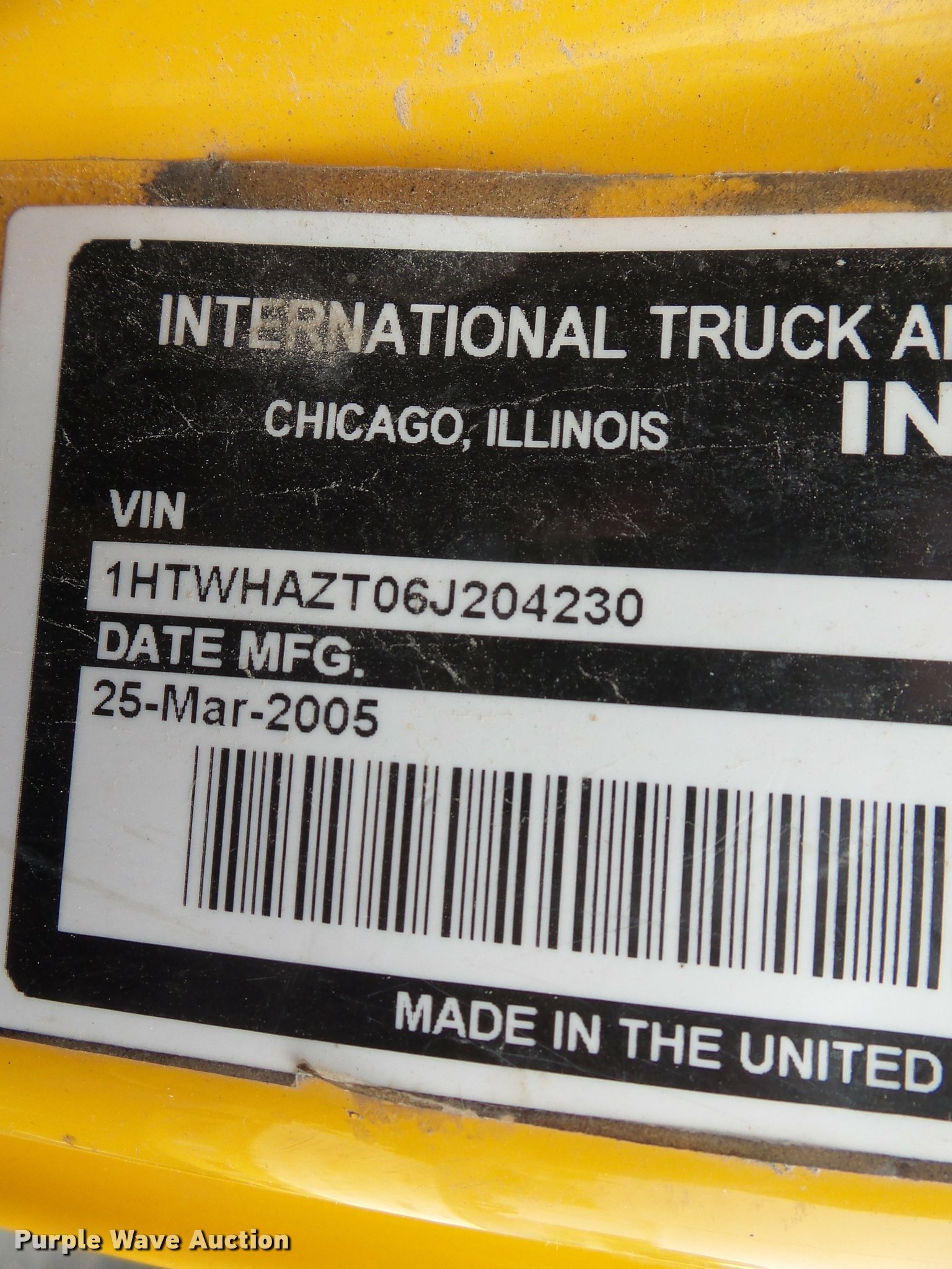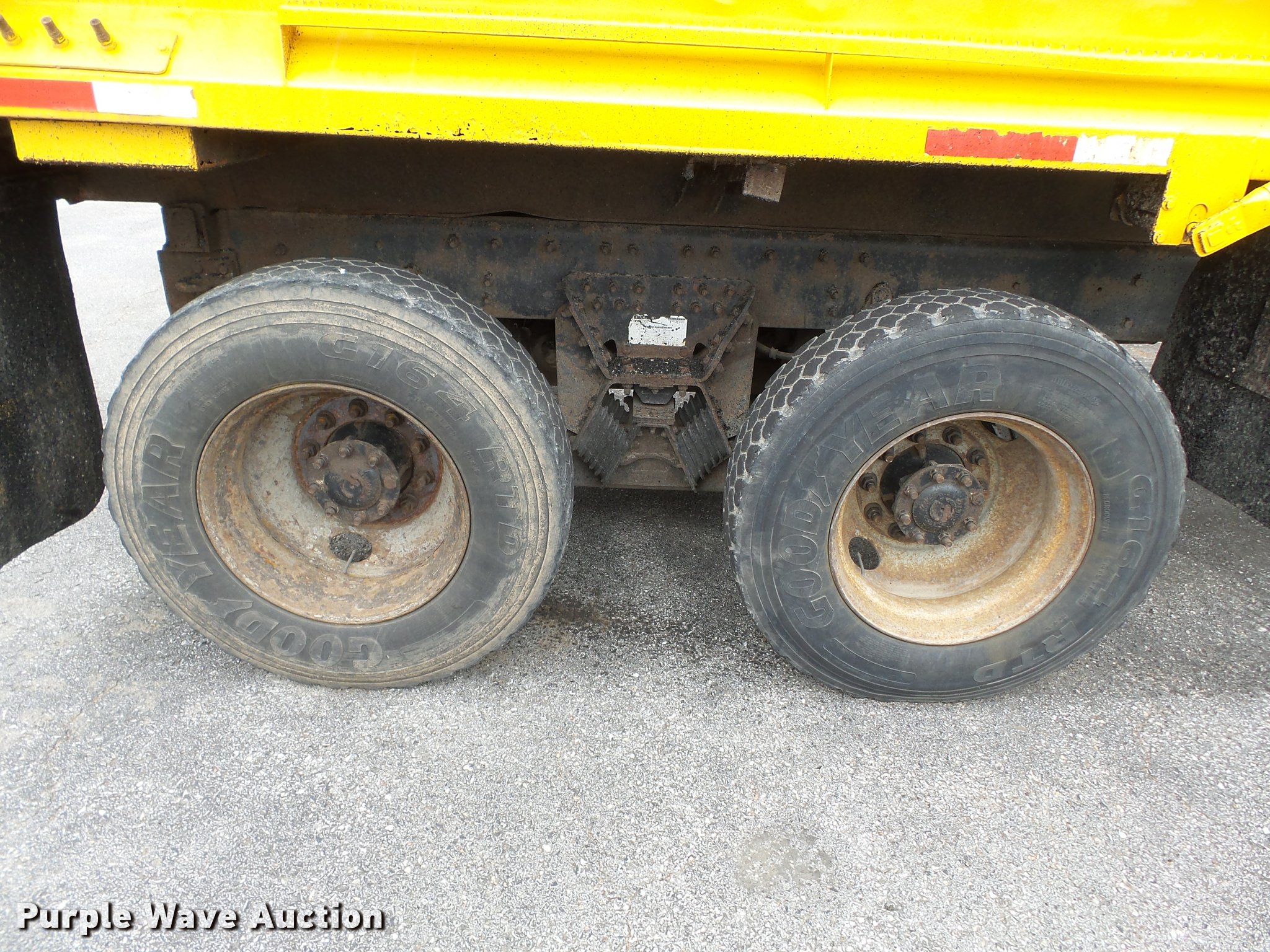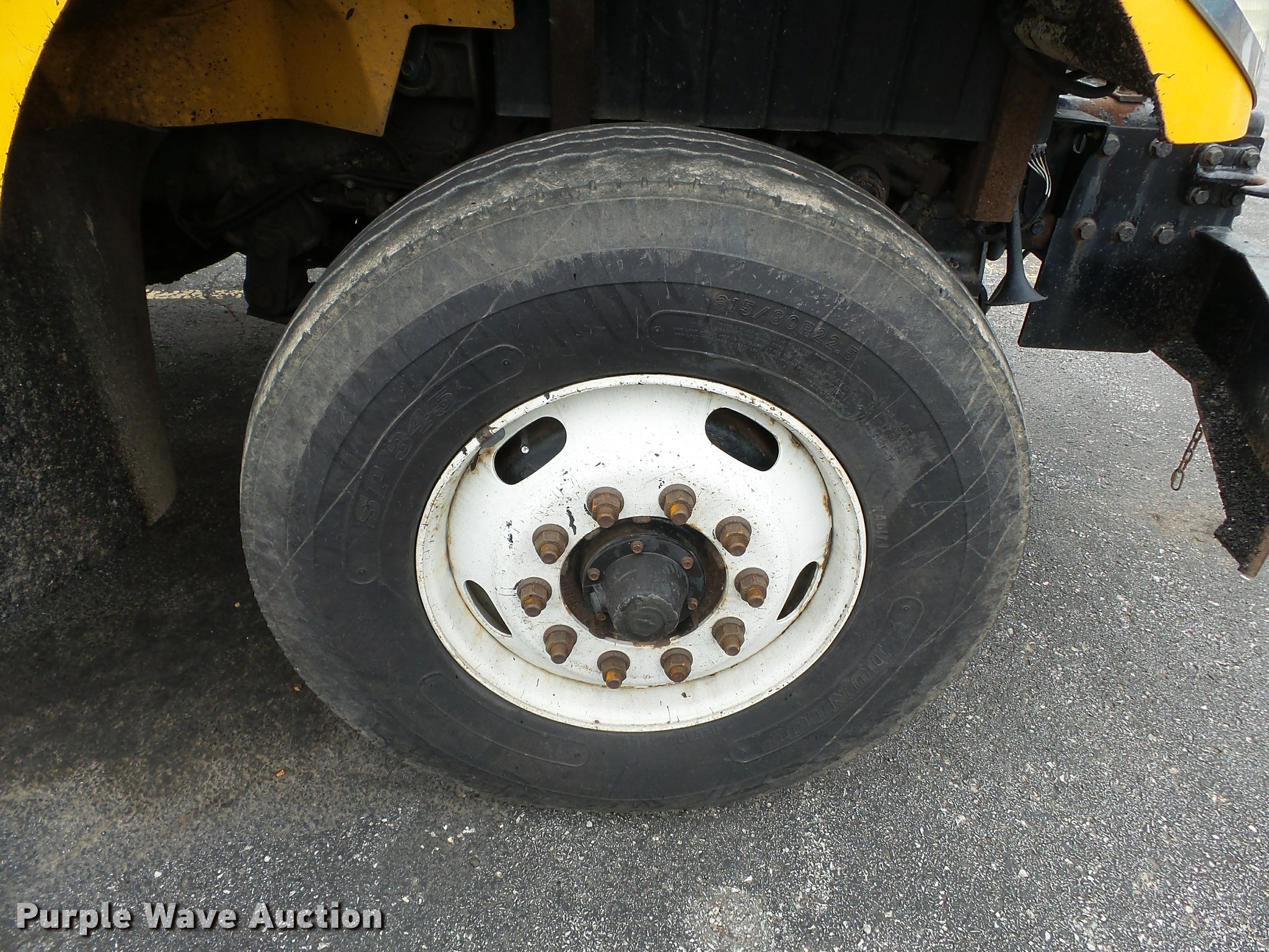 Purple Wave is selling a used Construction Dump Truck in Missouri. This item is a 2006 International 7400 dump truck with the following: 187,356 miles on odometer, 9,462 hours on meter, International DT570 9.3L L6 turbo diesel engine, Automatic transmission, Tandem axle, AC and heat, Cruise, AM/FM, Power windows, Power and heated mirrors, Air suspension seat, Block heater, Front mounted PTO, Backup alarm, Wheeler steel dump bed, 16'L x 96"W, Single ram hoist, Air operated end gate, Roll tarp, Single fuel tank, 213" wheelbase, Walking beam suspension, Air brakes, Engine brake, 315/80R22.5 front tires, 11R22.5 rear tires, GVWR 58,000 lbs, FAWR 18,000 lbs, IAWR 20,000 lbs, RAWR 20,000 lbs, Two way radio is not included, Beacon light is not included, Inside rear wheels missing, Rear wheel seal leaking, Bed hydraulics disables, Bed rail rusted, Check engine light on, MODOT ID 7695