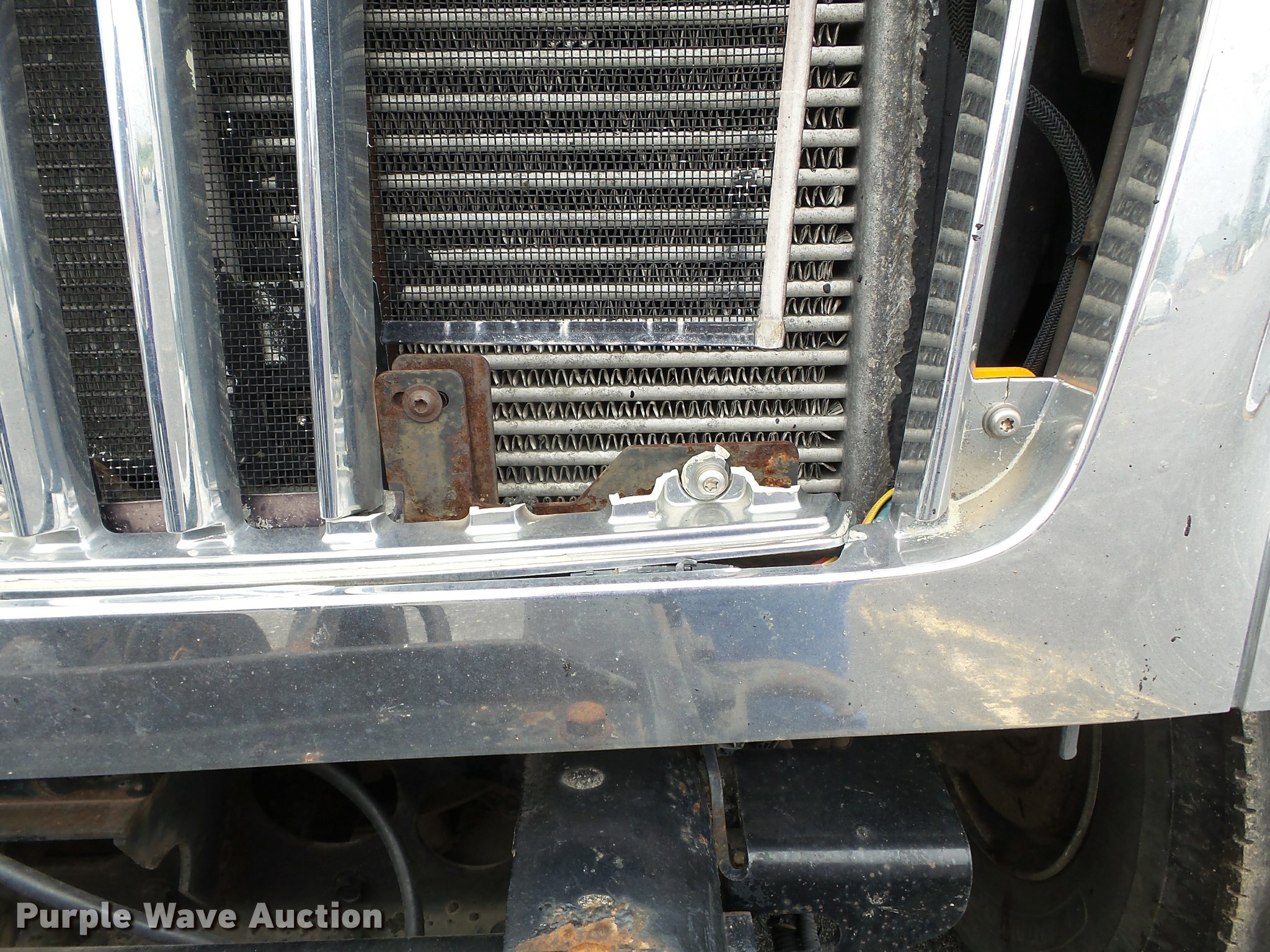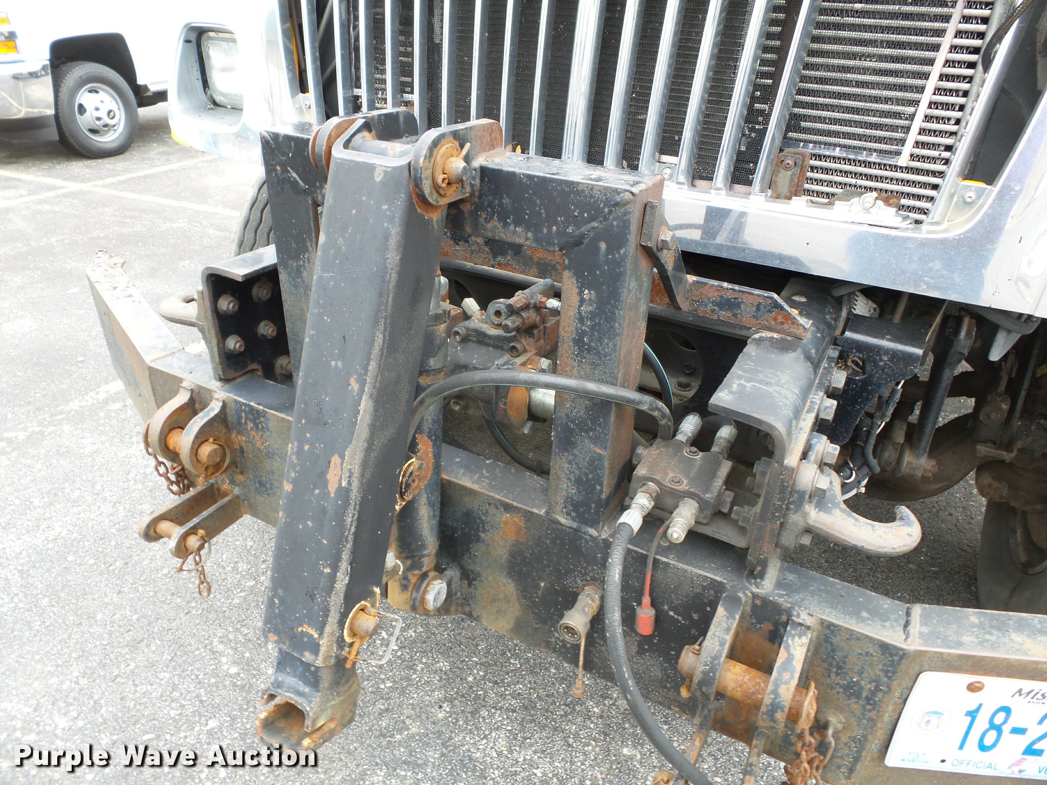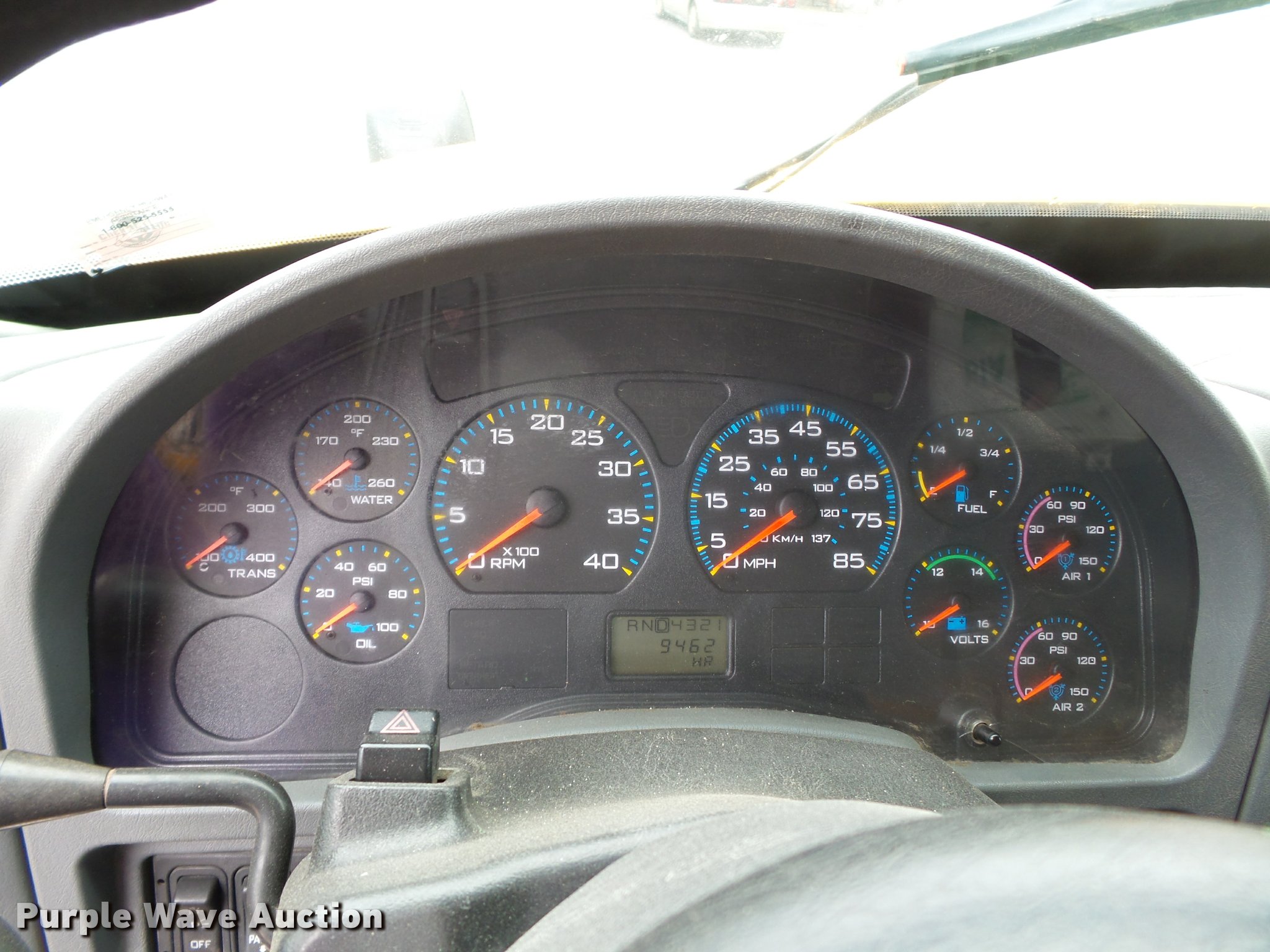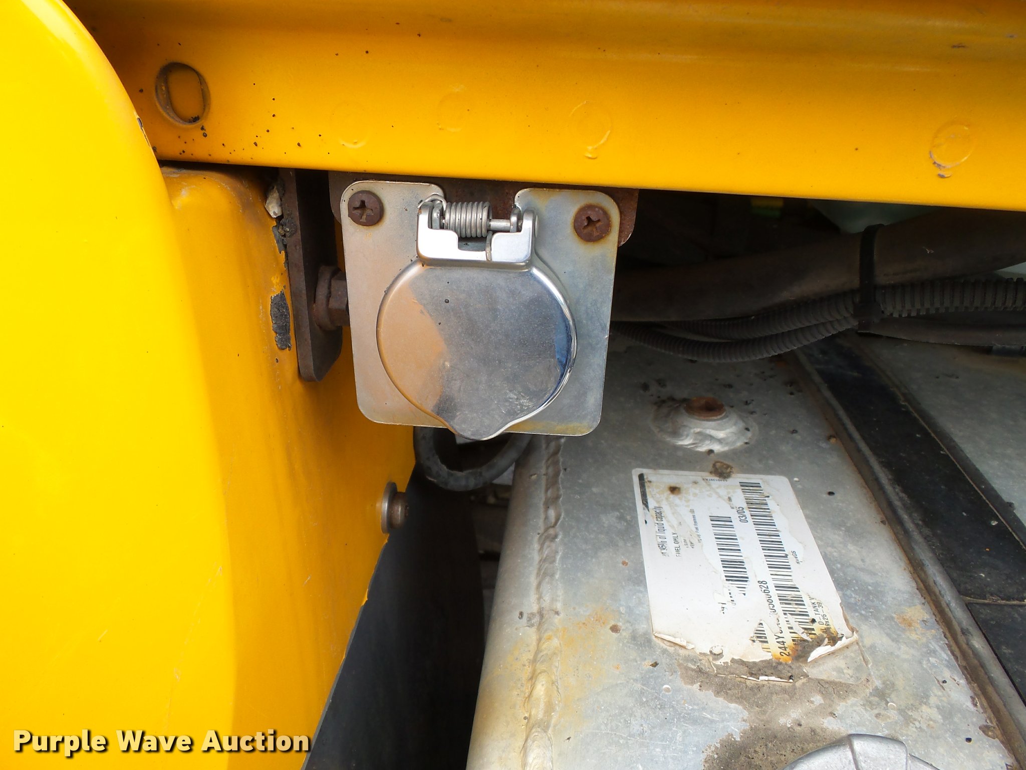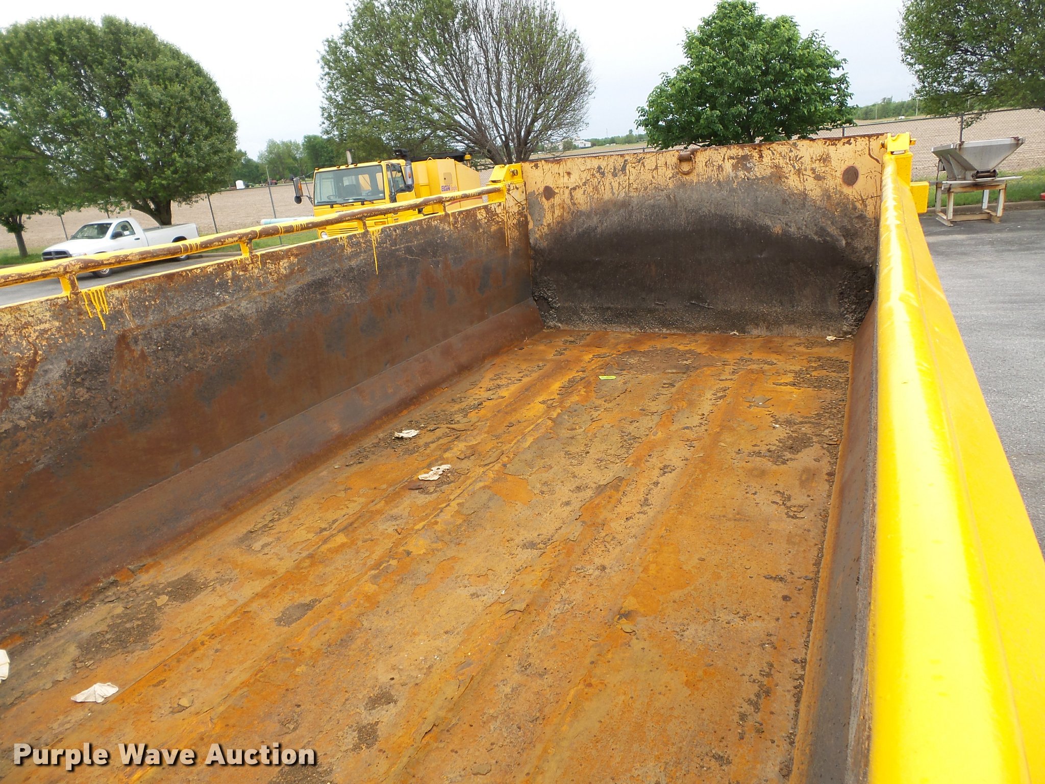 Purple Wave is selling a used Construction Dump Truck in Missouri. This item is a 2006 International 7400 dump truck with the following: 187,356 miles on odometer, 9,462 hours on meter, International DT570 9.3L L6 turbo diesel engine, Automatic transmission, Tandem axle, AC and heat, Cruise, AM/FM, Power windows, Power and heated mirrors, Air suspension seat, Block heater, Front mounted PTO, Backup alarm, Wheeler steel dump bed, 16'L x 96"W, Single ram hoist, Air operated end gate, Roll tarp, Single fuel tank, 213" wheelbase, Walking beam suspension, Air brakes, Engine brake, 315/80R22.5 front tires, 11R22.5 rear tires, GVWR 58,000 lbs, FAWR 18,000 lbs, IAWR 20,000 lbs, RAWR 20,000 lbs, Two way radio is not included, Beacon light is not included, Inside rear wheels missing, Rear wheel seal leaking, Bed hydraulics disables, Bed rail rusted, Check engine light on, MODOT ID 7695
