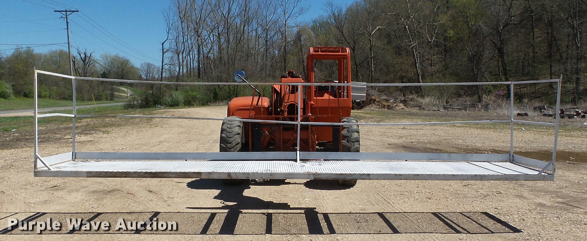 Purple Wave is selling a used Forklift Attach. in Missouri. This item is a Shop built work platform with the following: 20'L x 48"W, 45" rail height, Expanded metal floor