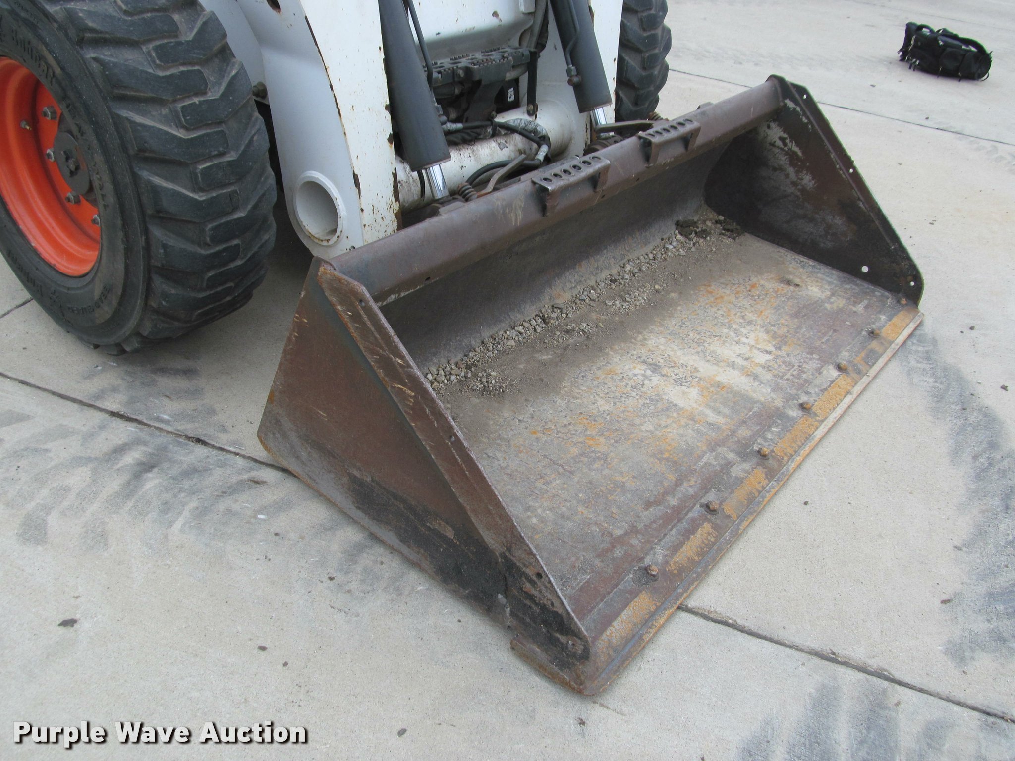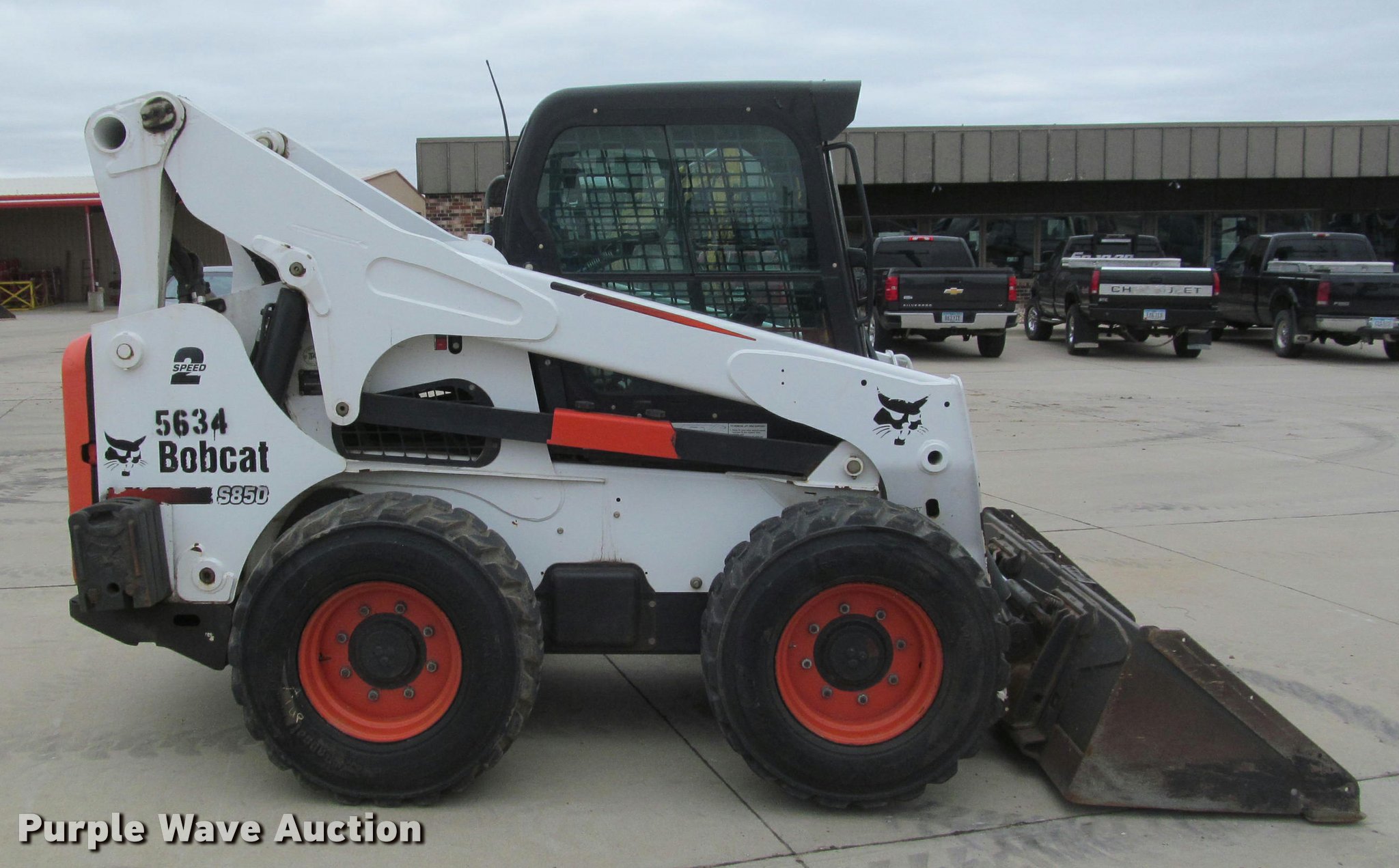 Purple Wave is selling a used Skid Steer Loader in Iowa. This item is a 2012 Bobcat S850 skid steer with the following: 2,060 hours on meter, Kubota four cylinder diesel engine, Two speed hydrostatic transmission, Enclosed cab, AC and heat, AM/FM, Joystick controls, EMS panel, Spring suspension seat, Front and rear work lights, Backup alarm, 73"W bucket, Bolt-on cutting edge, Hydraulic quick coupler, Auxiliary hydraulics, Auxiliary electrical outlet, Counter weights, Bobcat 14-17.5 tires, Serial ATF411700, Unit# 5634