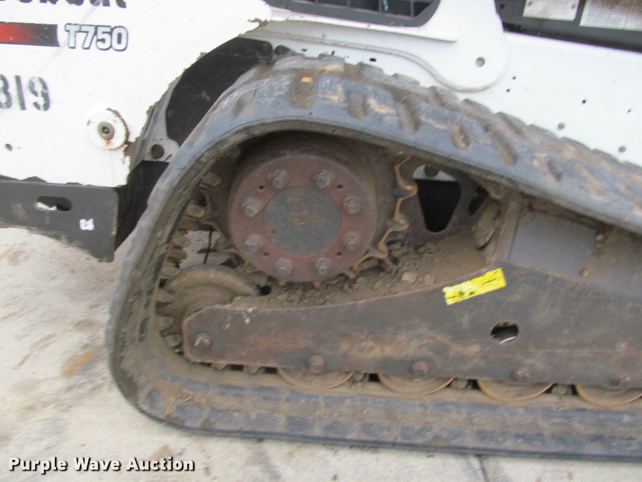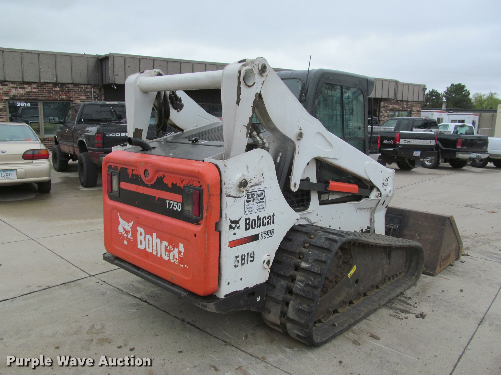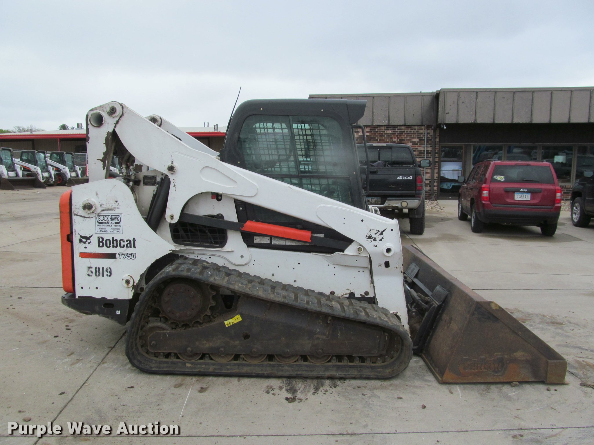 Purple Wave is selling a used Tracked Skid Steer Loader in Iowa. This item is a 2012 Bobcat T750 skid steer with the following: 2,419 hours on meter, Kubota V3800-T four cylinder turbo diesel engine, Serial CG3928, Hydrostatic transmission, Enclosed cab, AC and heat, AM/FM, Joystick controls, EMS panel, Spring suspension seat, Wipers, Front work lights, Berlon 7'W bucket, Bolt-on cutting edge, Hydraulic quick coupler, Auxiliary hydraulics, Auxiliary electrical outlet, 18"W tracks, Serial ANKA13513, Unit# 5819