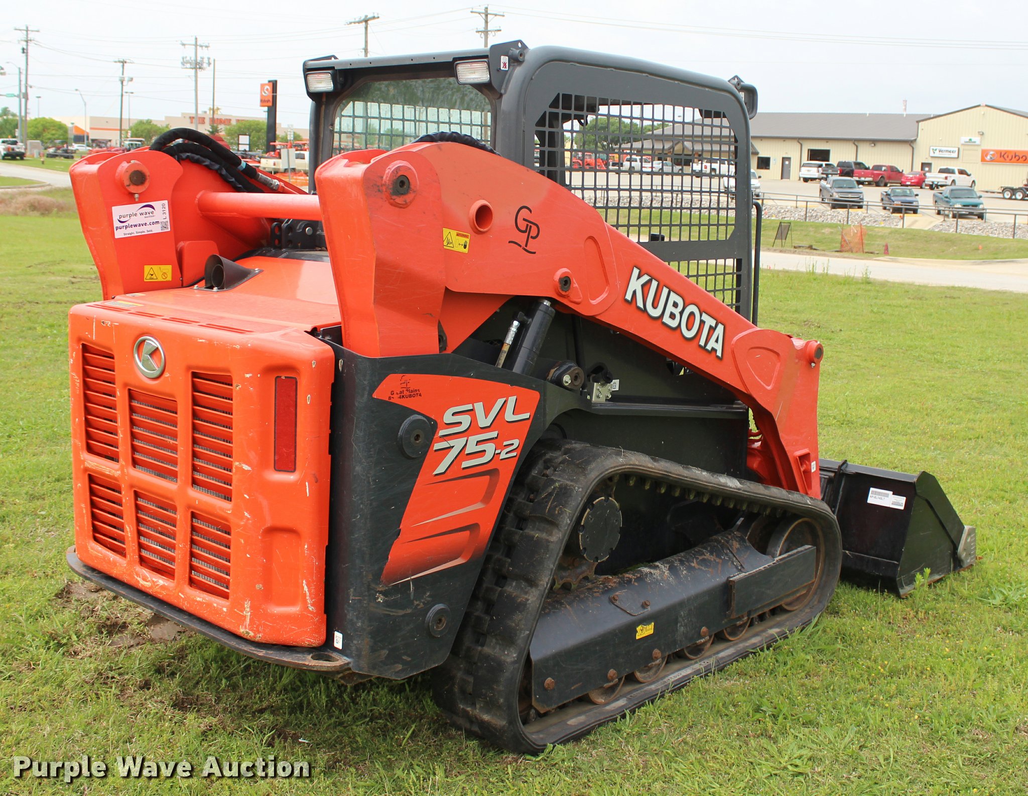 Purple Wave is selling a used Tracked Skid Steer Loader in Oklahoma. This item is a 2015 Kubota SVL75-2 skid steer with the following: 408 hours on meter, Kubota four cylinder turbo diesel engine, Serial 85L0411, Two speed hydrostatic transmission, OROPS, Joystick controls, Spring suspension seat, Front and rear work lights, 74"W low profile bucket, Weld-on teeth, Hydraulic quick coupler, Auxiliary hydraulics, 12"W tracks, Serial 22130