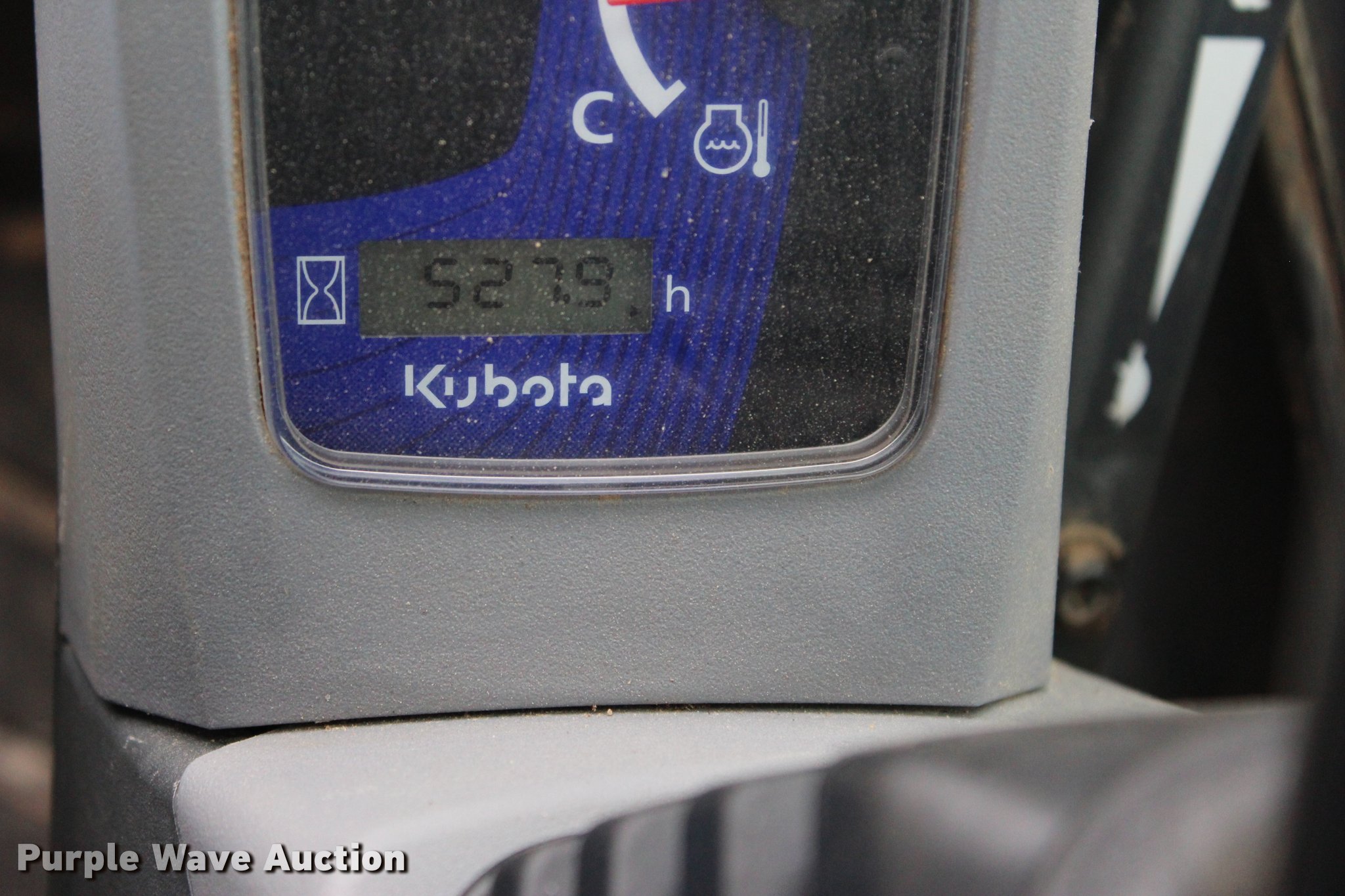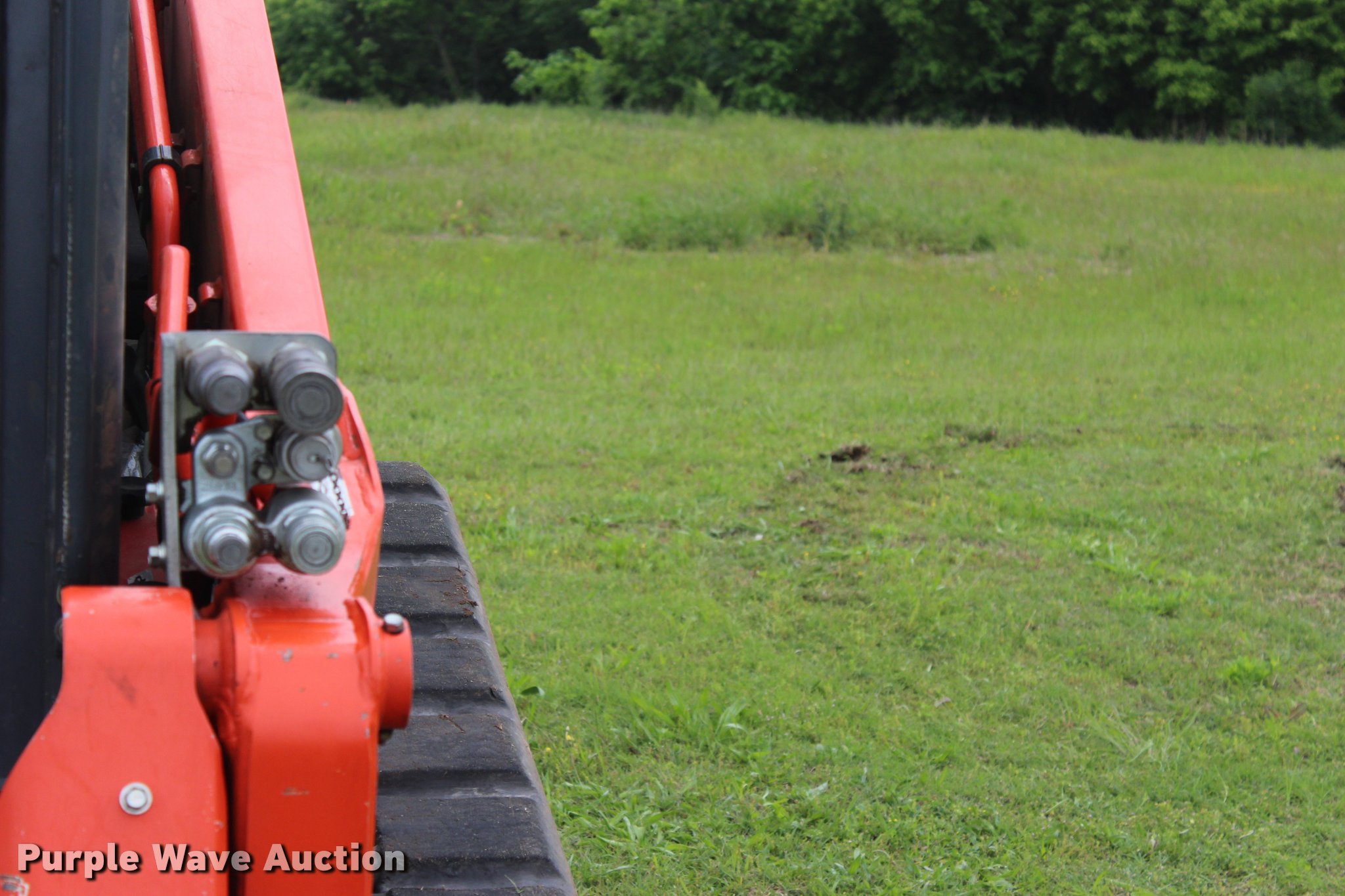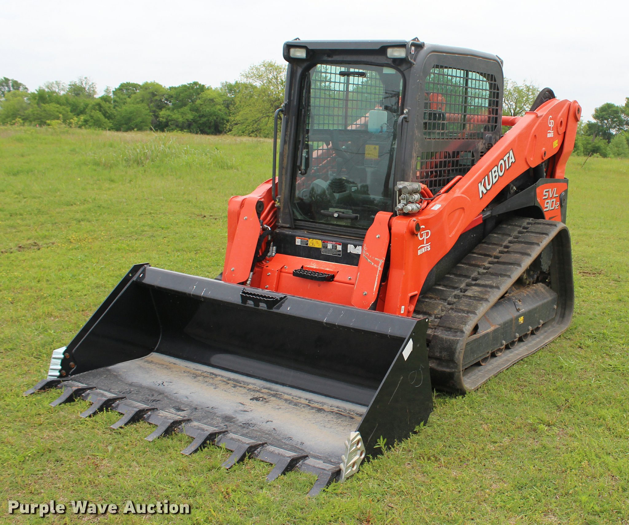 Purple Wave is selling a used Tracked Skid Steer Loader in Oklahoma. This item is a 2015 Kubota SVL90-2 skid steer with the following: 527 hours on meter, Kubota V3800-T 3.8L four cylinder turbo diesel engine, Two speed hydrostatic transmission, Enclosed cab, AC and heat, AM/FM, Joystick controls, Spring suspension seat, Wipers, Front and rear work lights, Kubota S6605 80"W bucket, Weld-on teeth, Hydraulic quick coupler, High Flow auxiliary hydraulics, 18"W tracks, Serial 17041