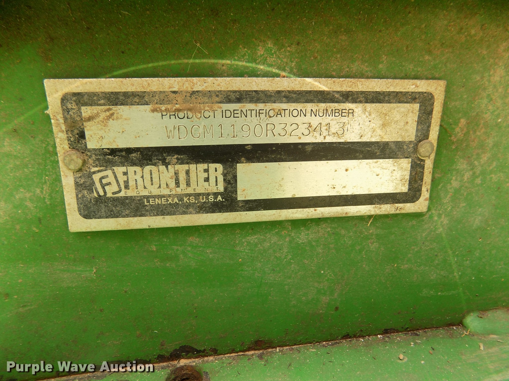 Purple Wave is selling a used Mower, Cutter, Shredder in Nebraska. This item is a Frontier GM1190R rotary mower with the following: 93"W deck, 89"W cut, Front and rear chain deflectors, 13x5-10 ribbed hard rubber swivel tires, Serial WDGM1190R323413