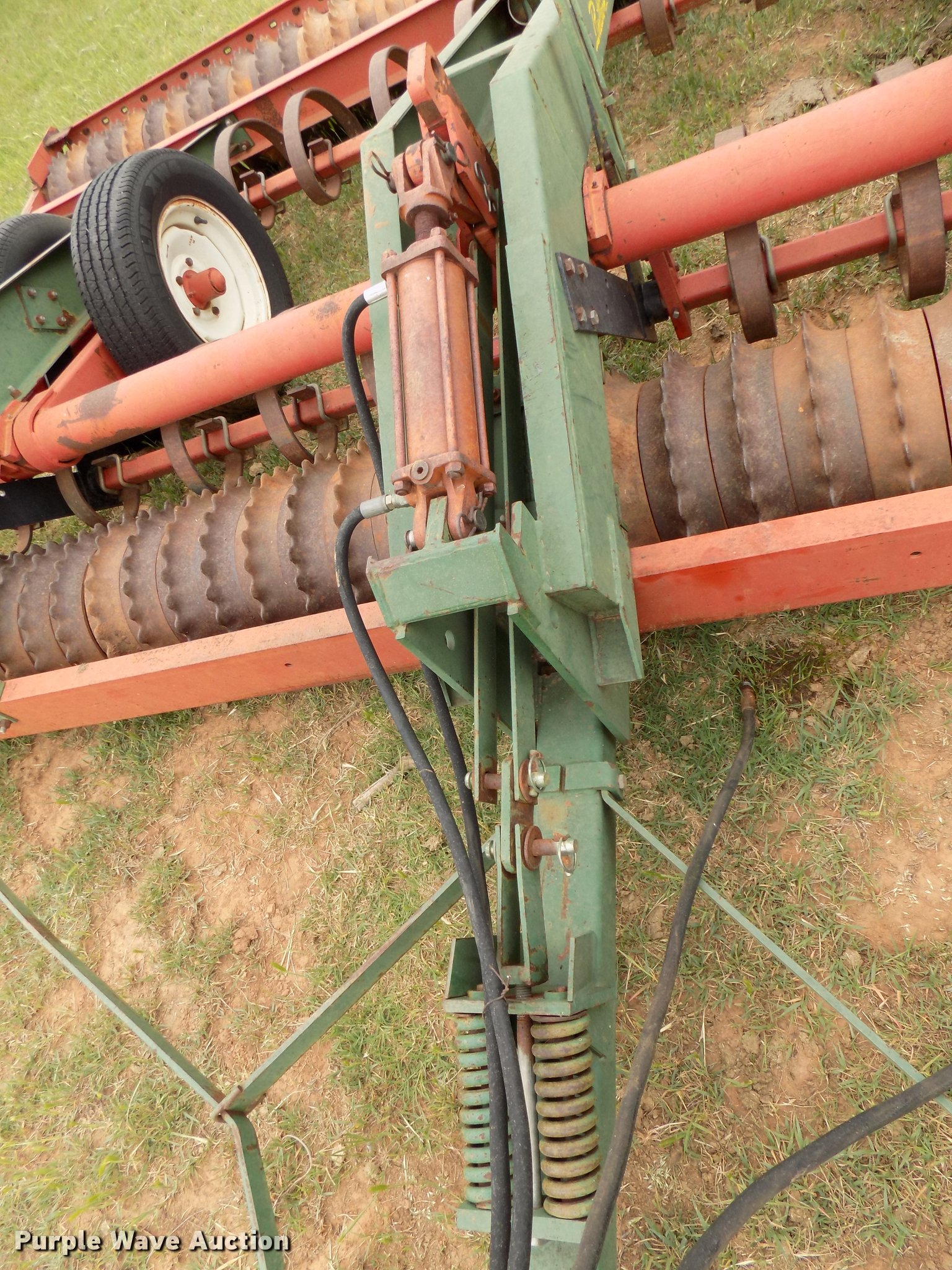 Purple Wave is selling a used Rotary Tillage in Oklahoma. This item is a Brillion MD-1641 cultipacker with the following: 14'3"W, Hydraulic lift, Manual tine raise, Pin/clevis hitch, Rear hitch, Walking tandem axle, 215/65R15 tires, One outside tire and wheel missing, Right outside tire flat, Serial 176759