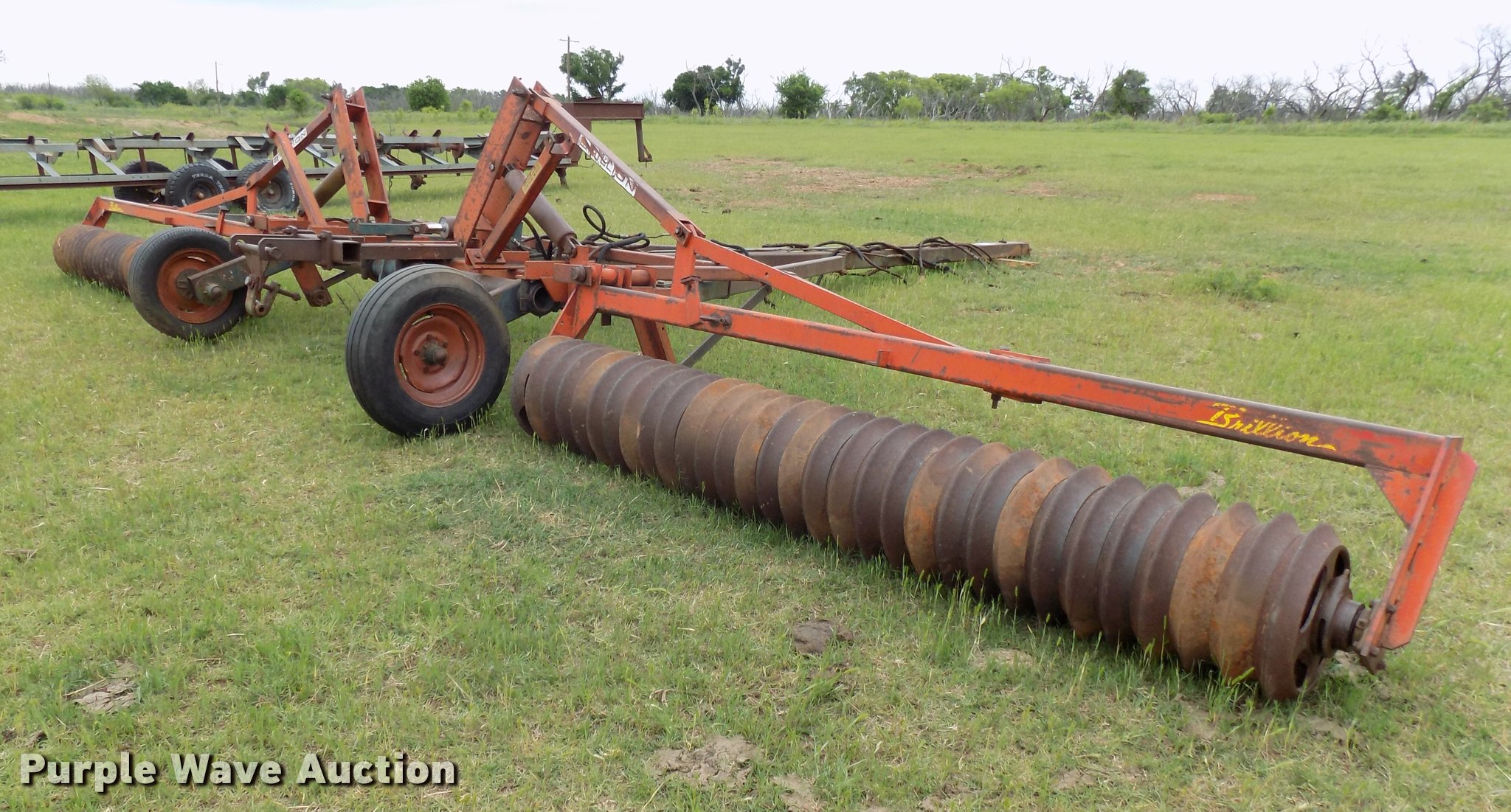 Purple Wave is selling a used Tillage Other in Oklahoma. This item is a Brillion WPW-128 packer with the following: 31'5"W, Hydraulic lift and fold, Pin/clevis hitch, Rear hitch, Walking tandem axle, 215/60R15 tires, Middle packer section included, parts only, Inner wheels missing on each axle, Hydraulic hoses rotted need replaced, Some hydraulic hoses missing, Serial 127159