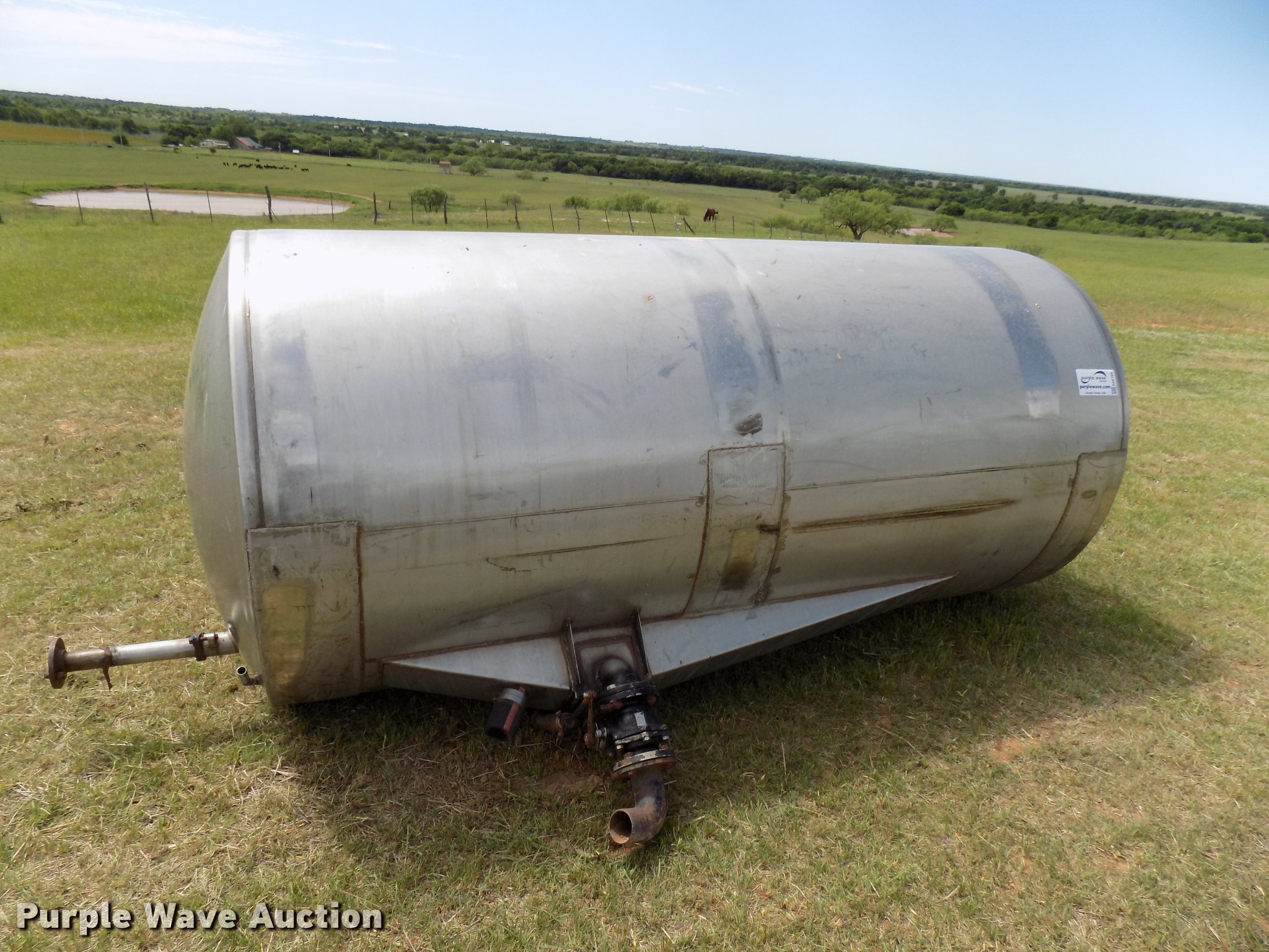1984 Progress Industries stainless steel tank. 1,575 gallon capacity, 2" discharge, Serial 36943. Bachand Ranch. Hastings, OK 73548