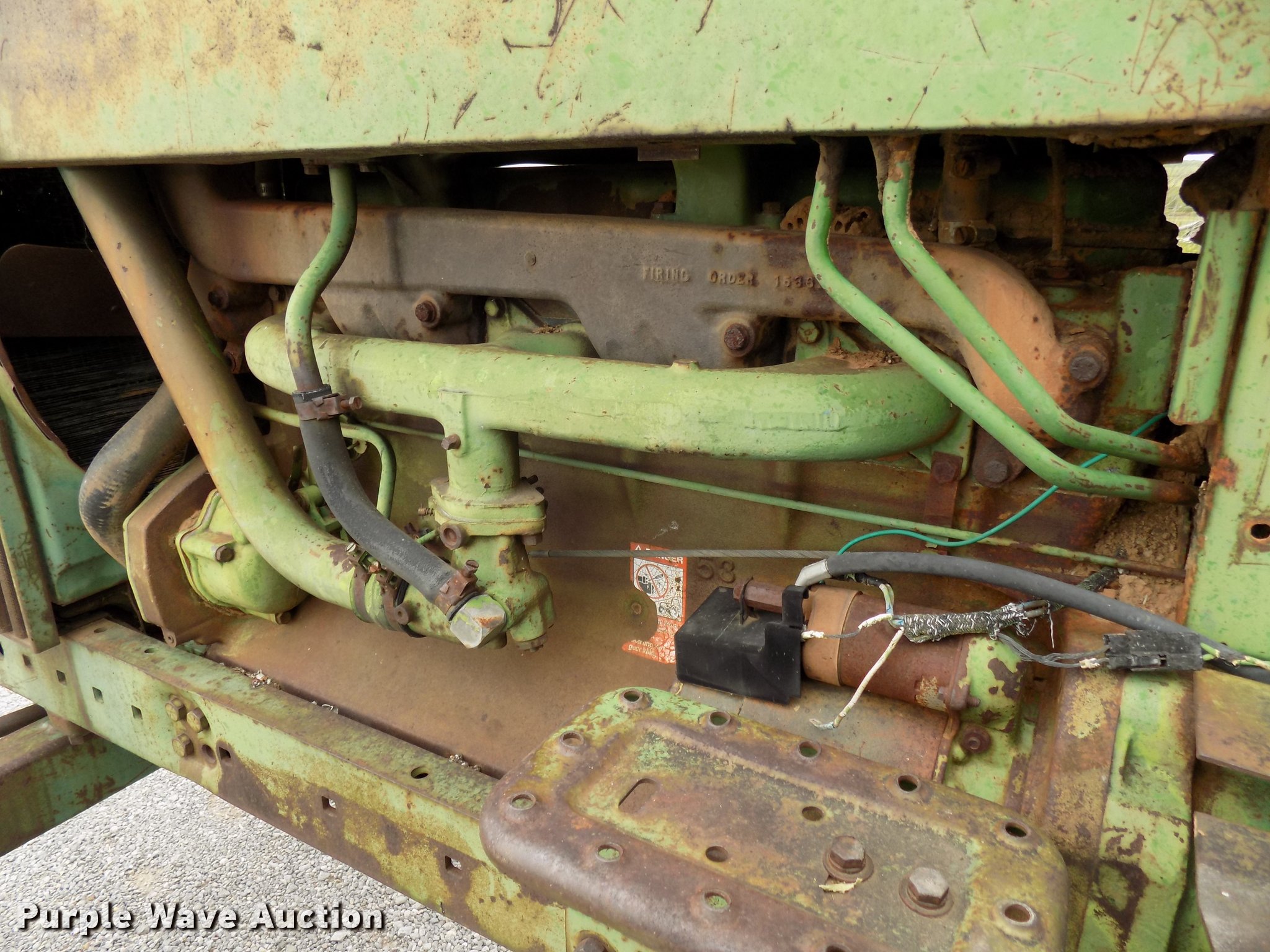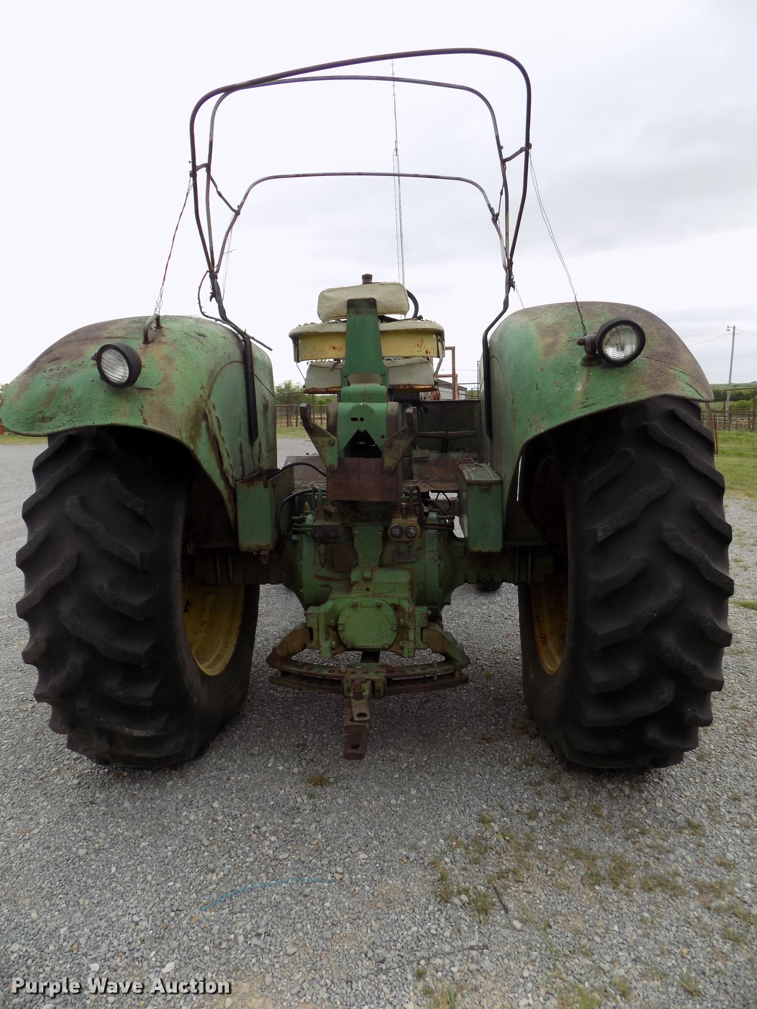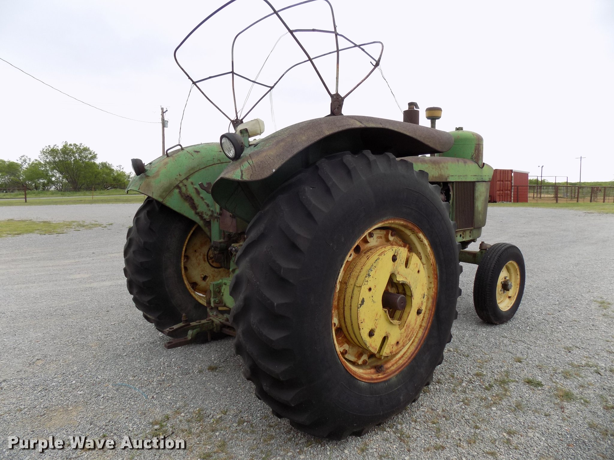 Purple Wave is selling a used Tractor in Oklahoma. This item is a 1964 John Deere 4020 tractor with the following: 4,800 hours on meter, John Deere 5.9L six cylinder propane engine, 83 HP, Synchro transmission, 8F-2R gears, Canopy frame, No canvas, Suspension seat, (2) rear hydraulic remotes, (6) rear wheel weights, 7.00-18 front tires, 18.4R34 rear tires, No battery, Seat weathered, Steering wheel cracked, Unknown operating condition, Serial SNT222R091403R