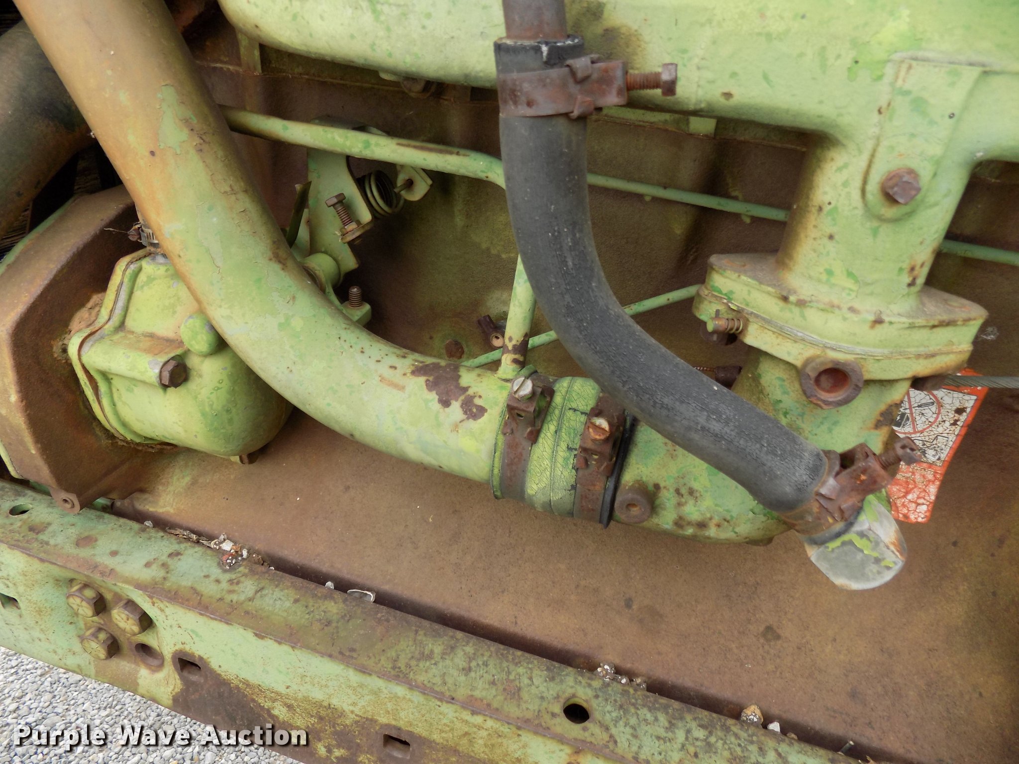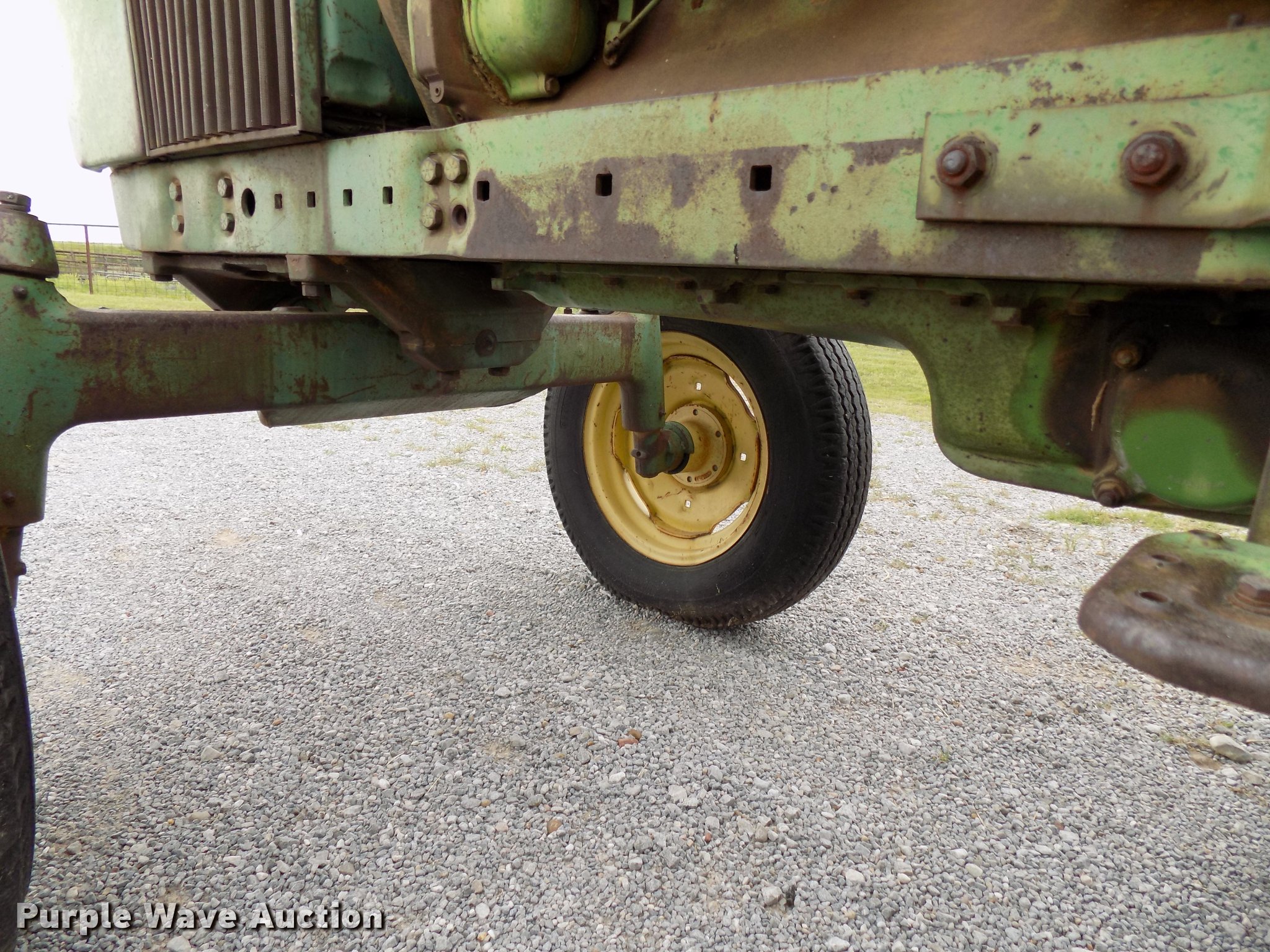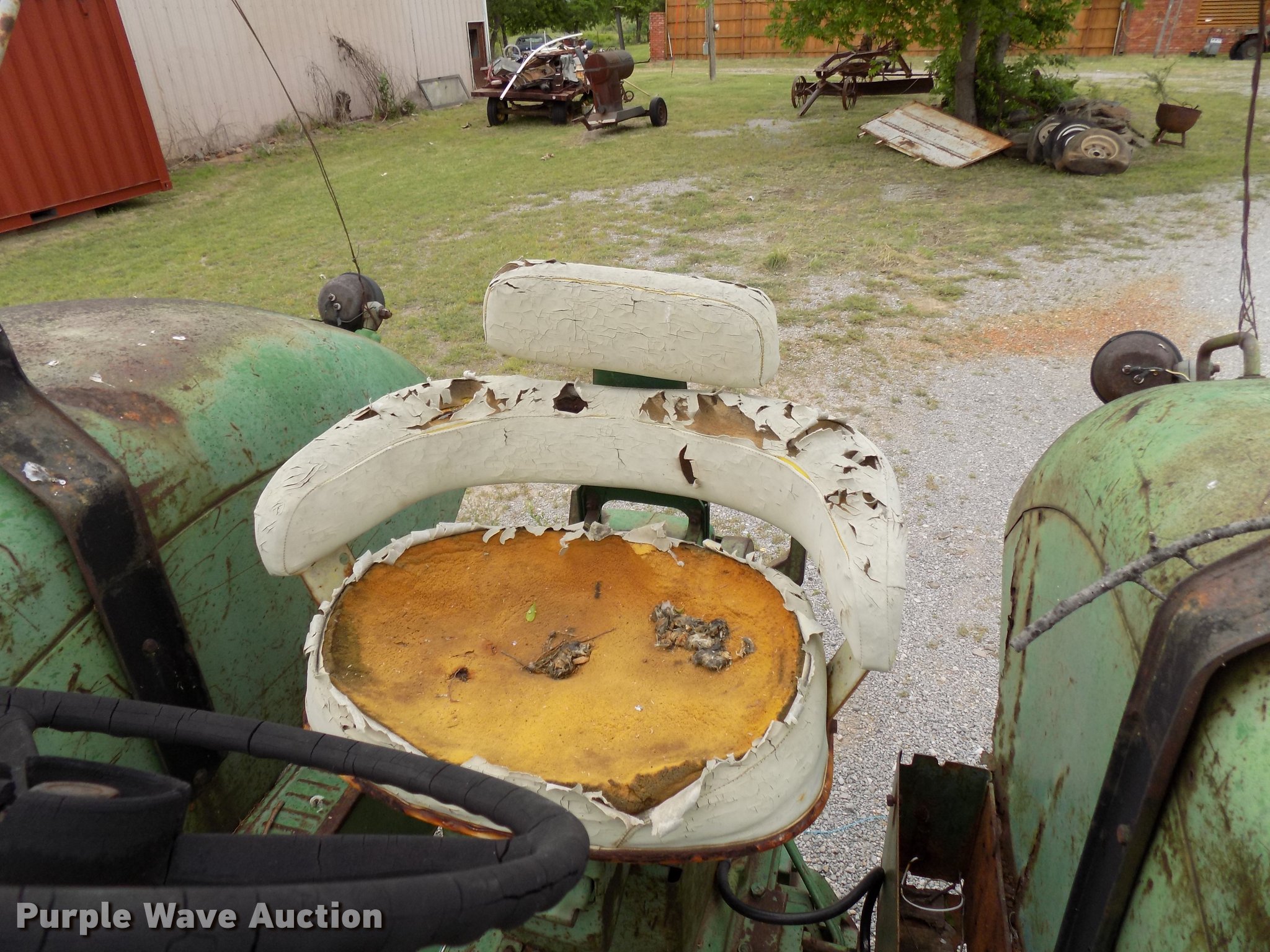Purple Wave is selling a used Tractor in Oklahoma. This item is a 1964 John Deere 4020 tractor with the following: 4,800 hours on meter, John Deere 5.9L six cylinder propane engine, 83 HP, Synchro transmission, 8F-2R gears, Canopy frame, No canvas, Suspension seat, (2) rear hydraulic remotes, (6) rear wheel weights, 7.00-18 front tires, 18.4R34 rear tires, No battery, Seat weathered, Steering wheel cracked, Unknown operating condition, Serial SNT222R091403R