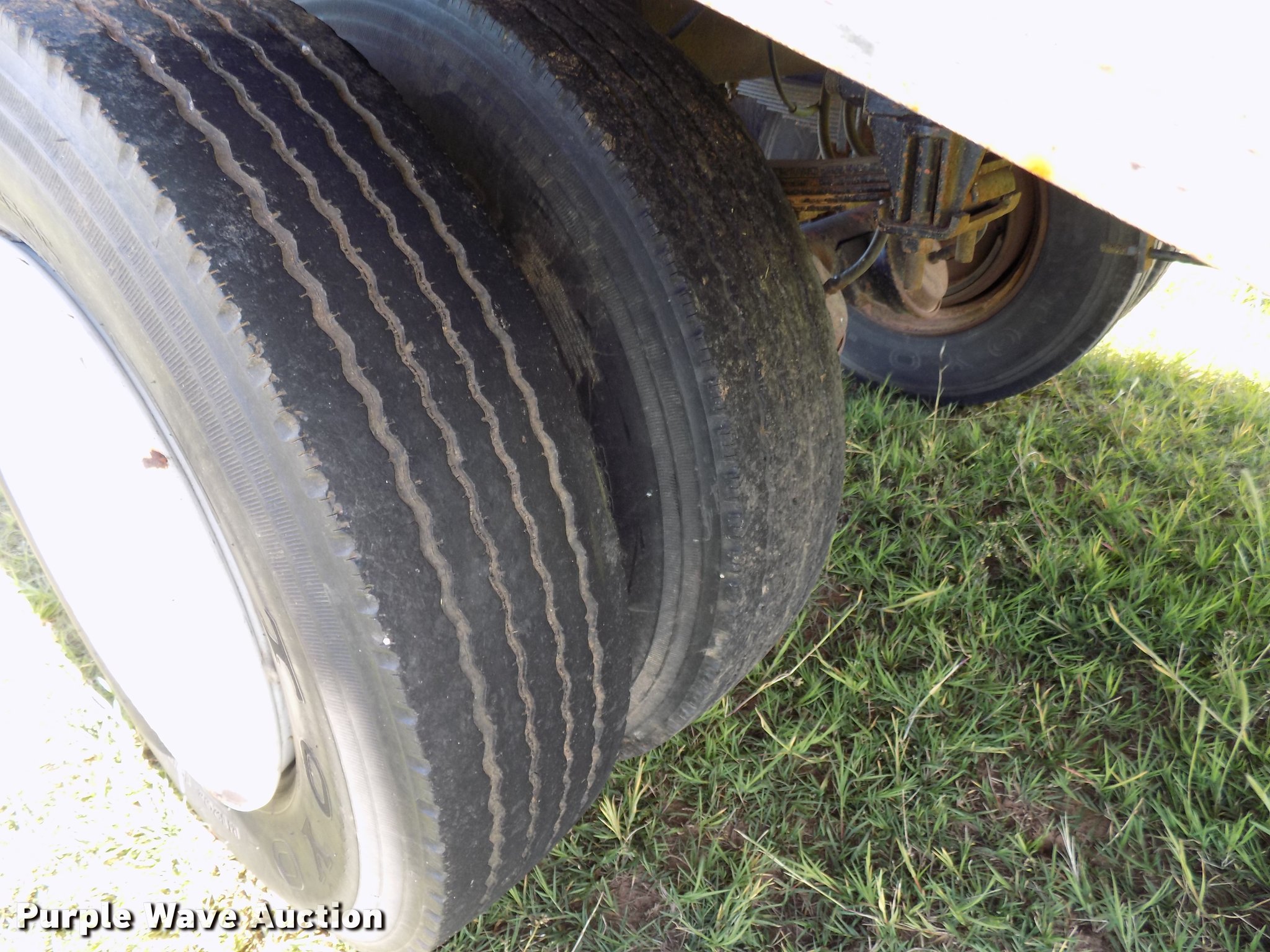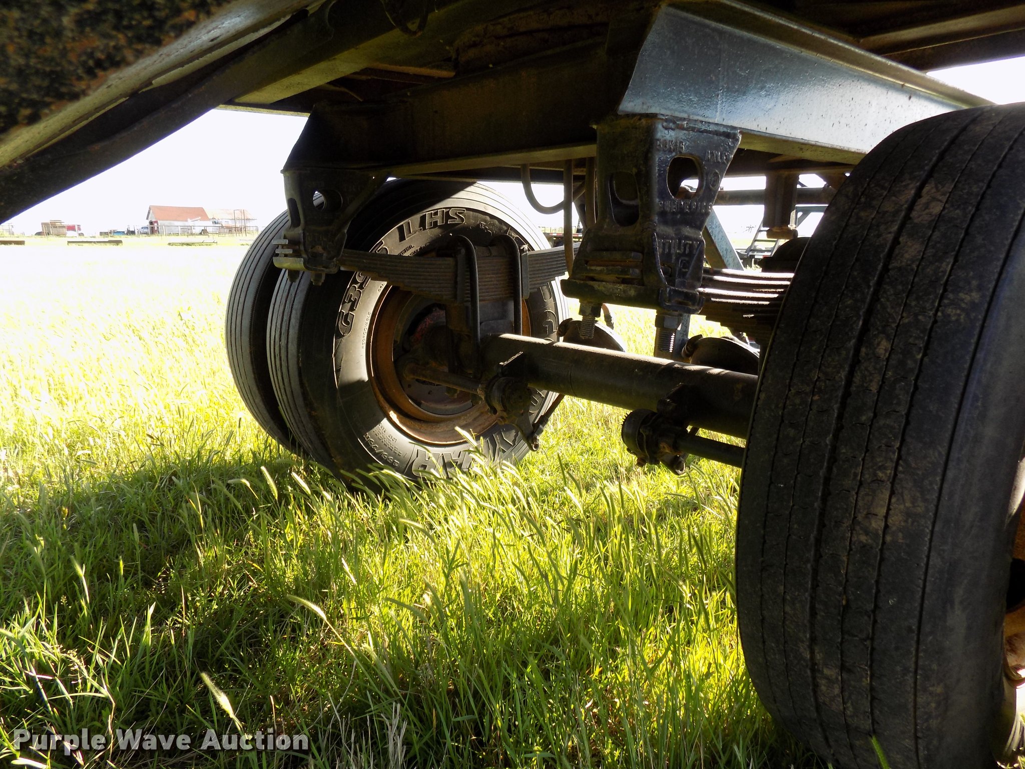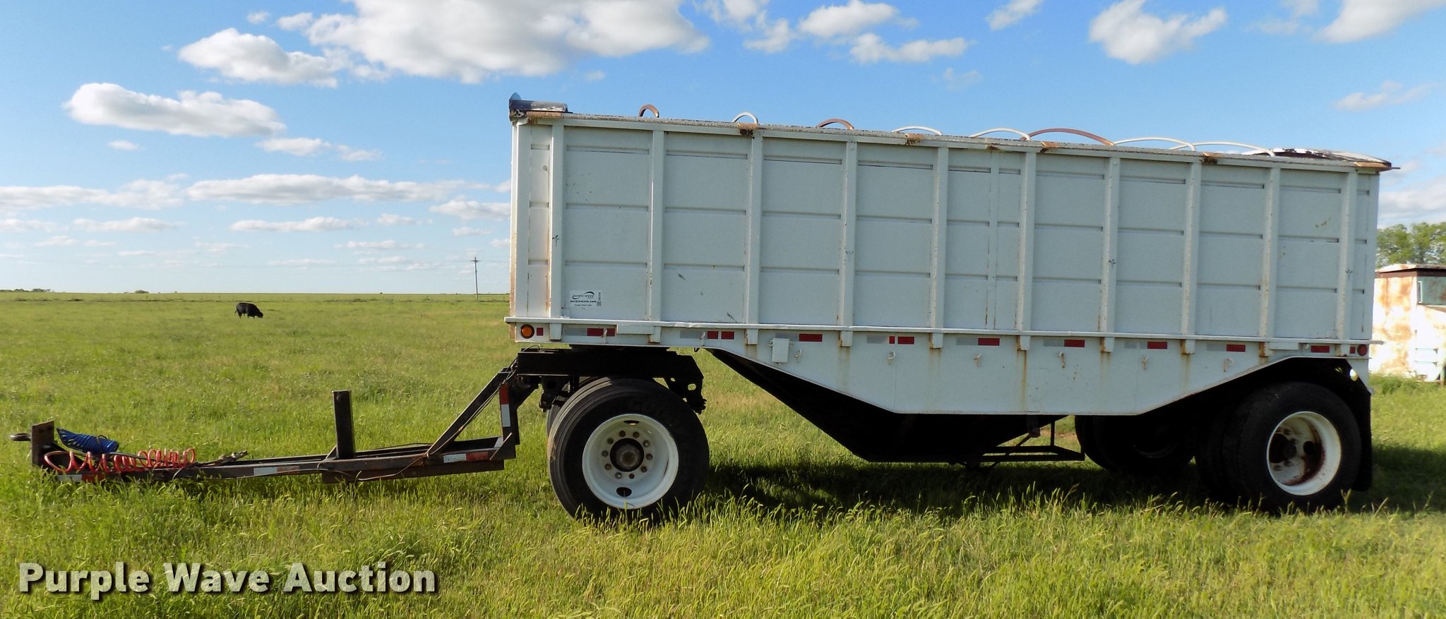Purple Wave is selling a used Grain or Commodity Trailer in Oklahoma. This item is a 1965 Utility single hopper grain trailer with the following: 30'L x 8'W, 19'L body, 53" side height, Removable sides, Manual trap gates, Front and rear ladders, Rollover tarp, Steel construction, Pintle hitch, 2" rear ball hitch, Single leg landing gear, Spring suspension, Air brakes, Spread axle, Steel wheels, 295/75R22.5 tires