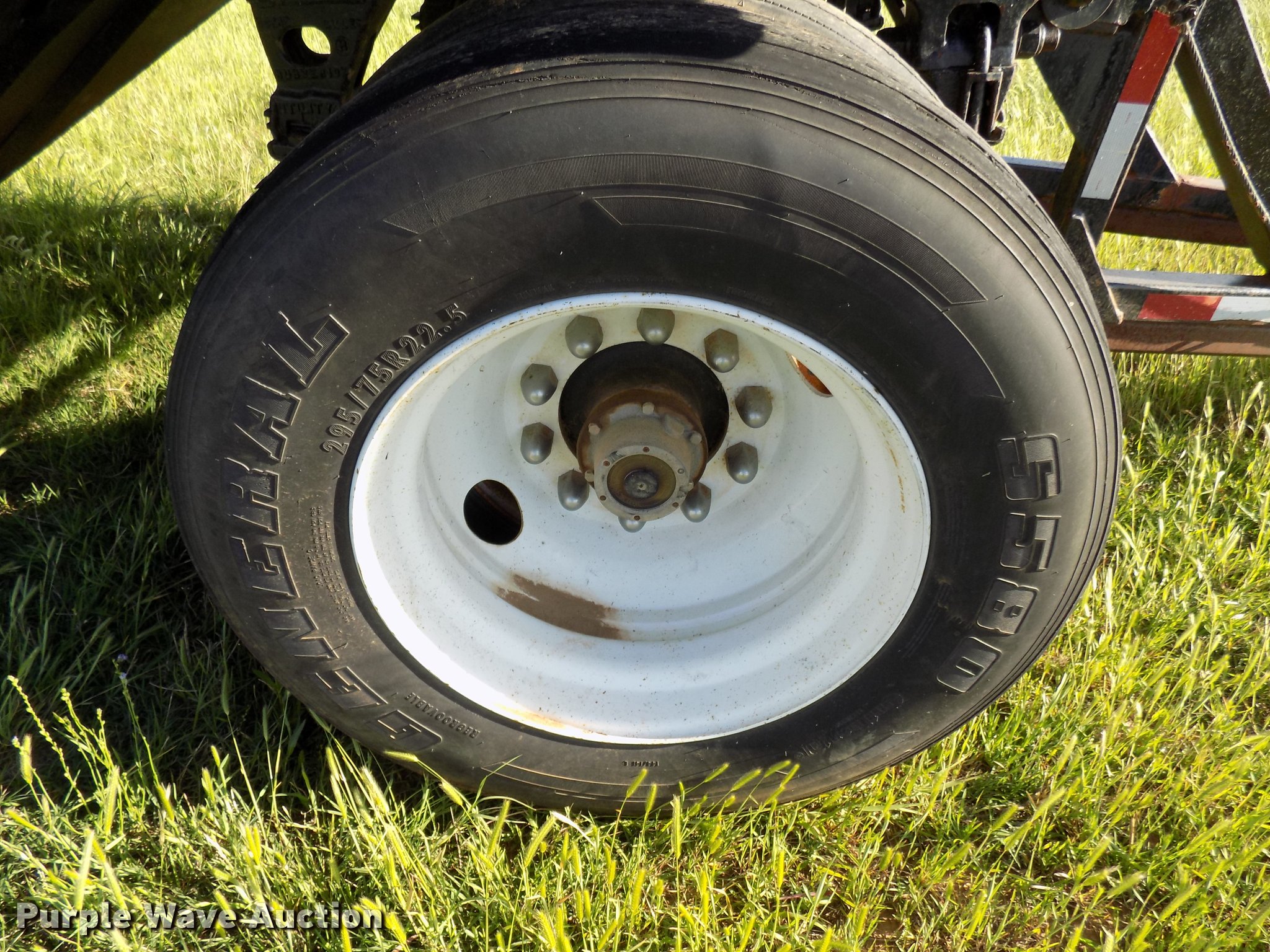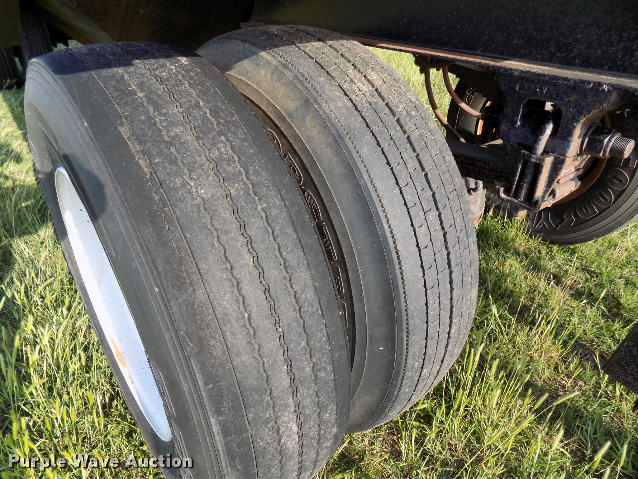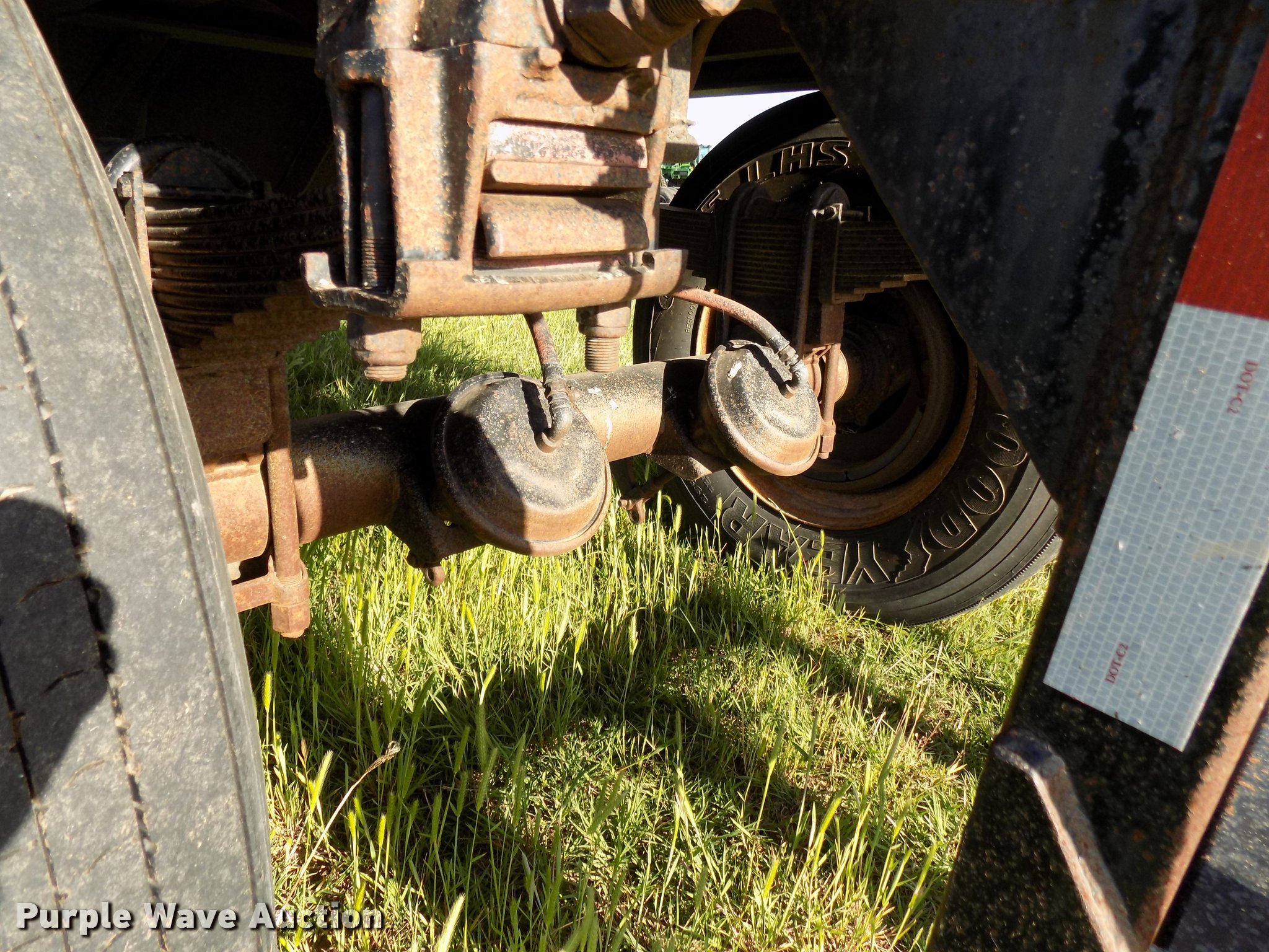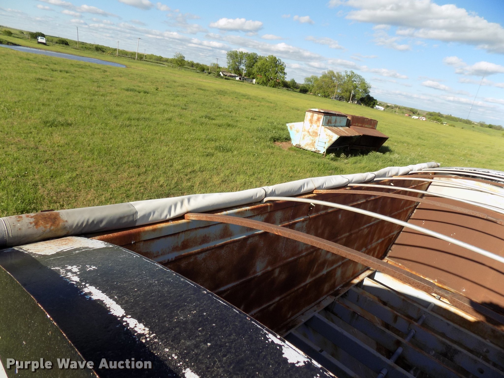 Purple Wave is selling a used Grain or Commodity Trailer in Oklahoma. This item is a 1965 Utility single hopper grain trailer with the following: 30'L x 8'W, 19'L body, 53" side height, Removable sides, Manual trap gates, Front and rear ladders, Rollover tarp, Steel construction, Pintle hitch, 2" rear ball hitch, Single leg landing gear, Spring suspension, Air brakes, Spread axle, Steel wheels, 295/75R22.5 tires