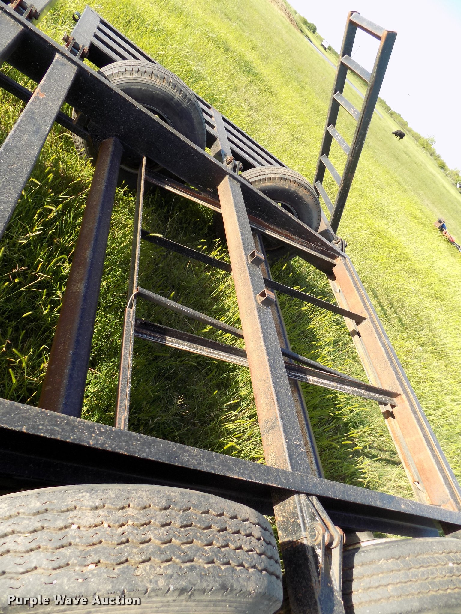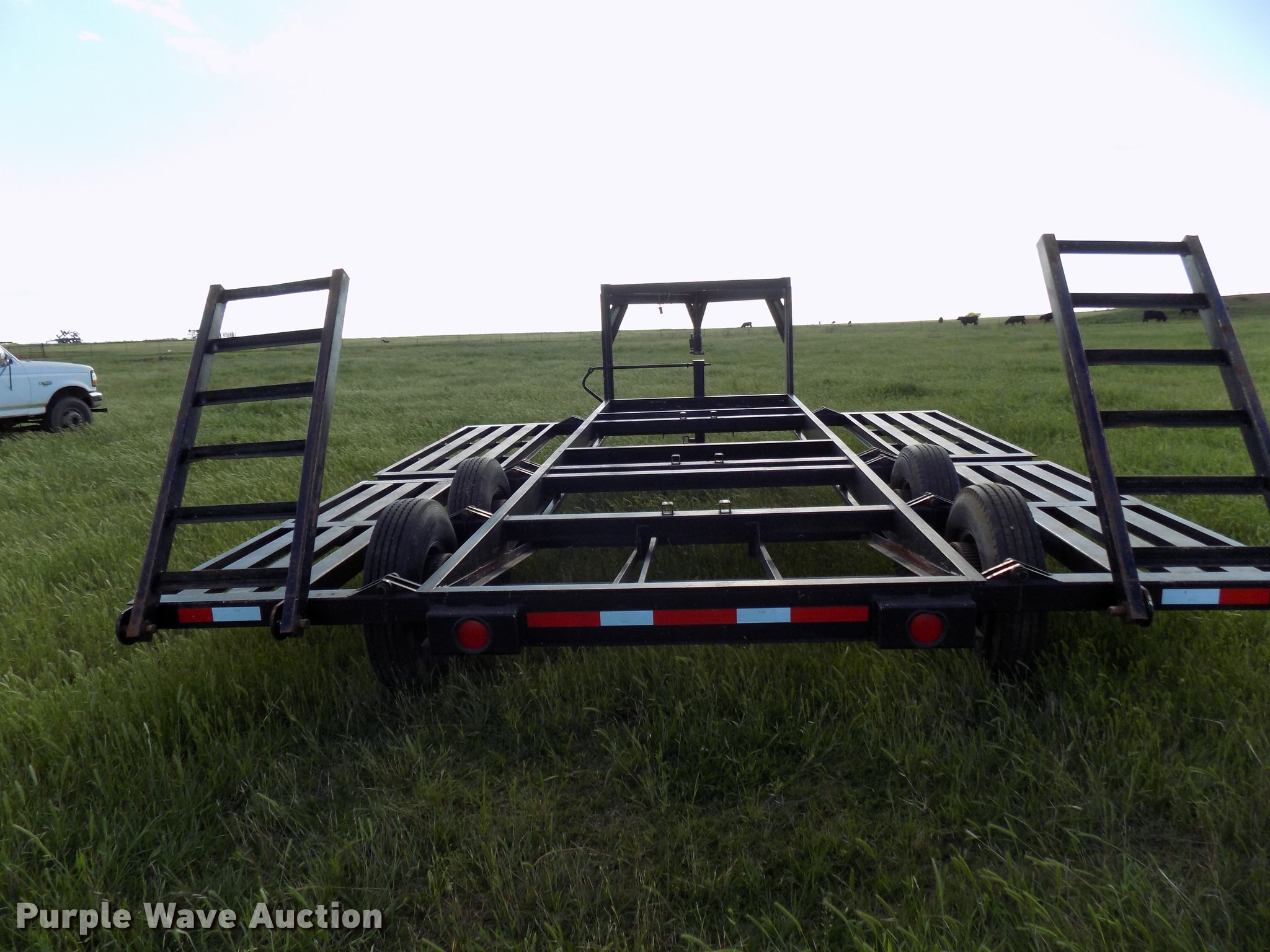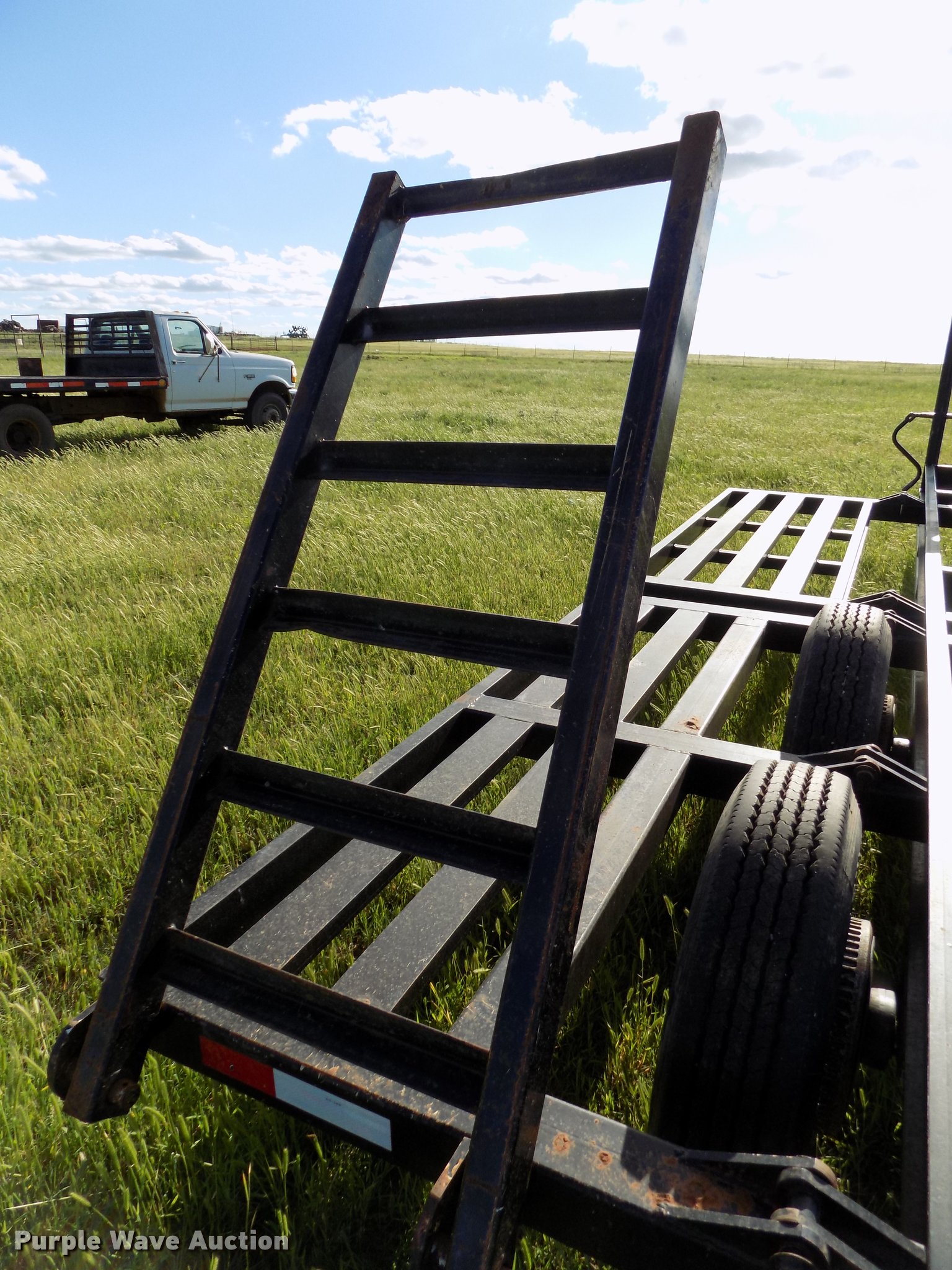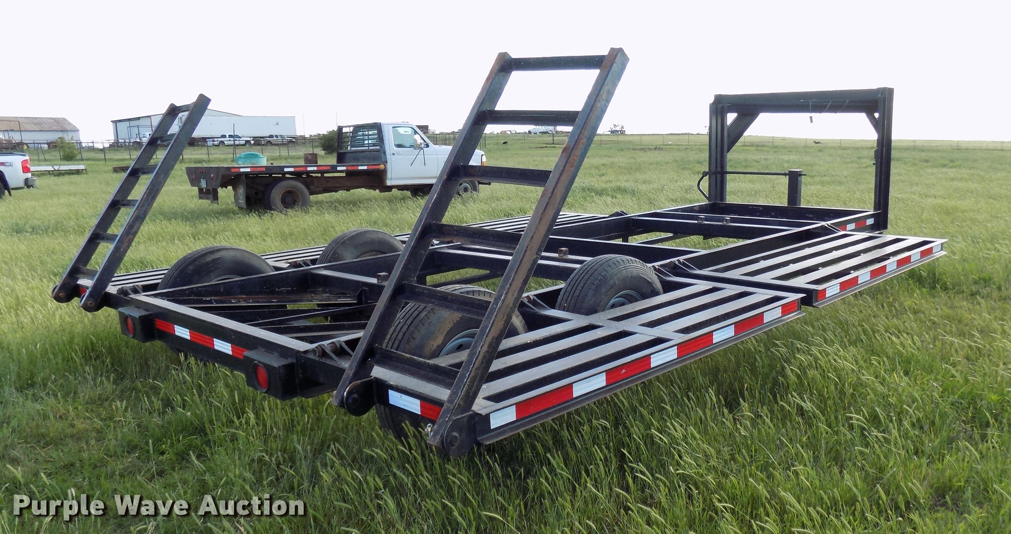 Purple Wave is selling a used Ag Equip. or Header Trailer in Oklahoma. This item is a Sprayer trailer with the following: 29'L x 76"W overall, 20'L deck, 13.5'L top deck, 42" folding sides, 5'L ramps, Adjustable width, 118" max width, Under bed ramp storage, Steel construction, Gooseneck hitch, Single leg landing gear, Spring suspension, Electric brakes, Tandem axle, Steel wheels, 122/18L tires