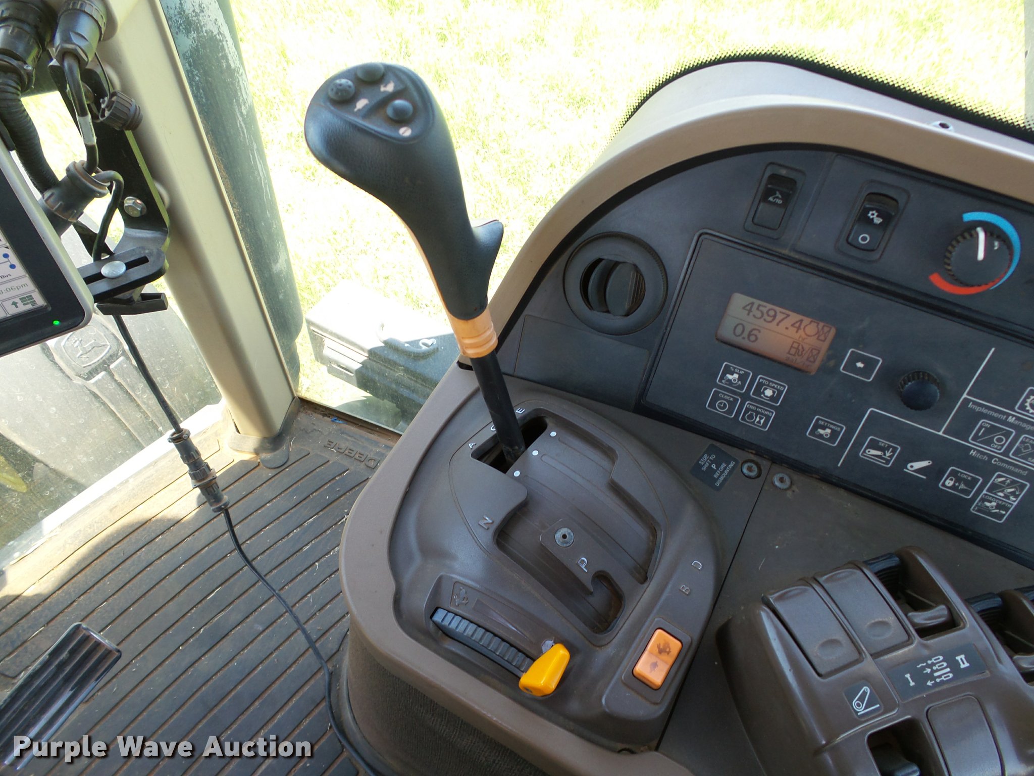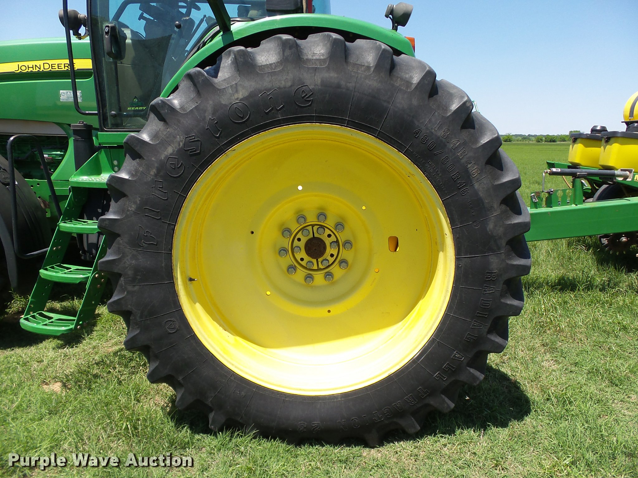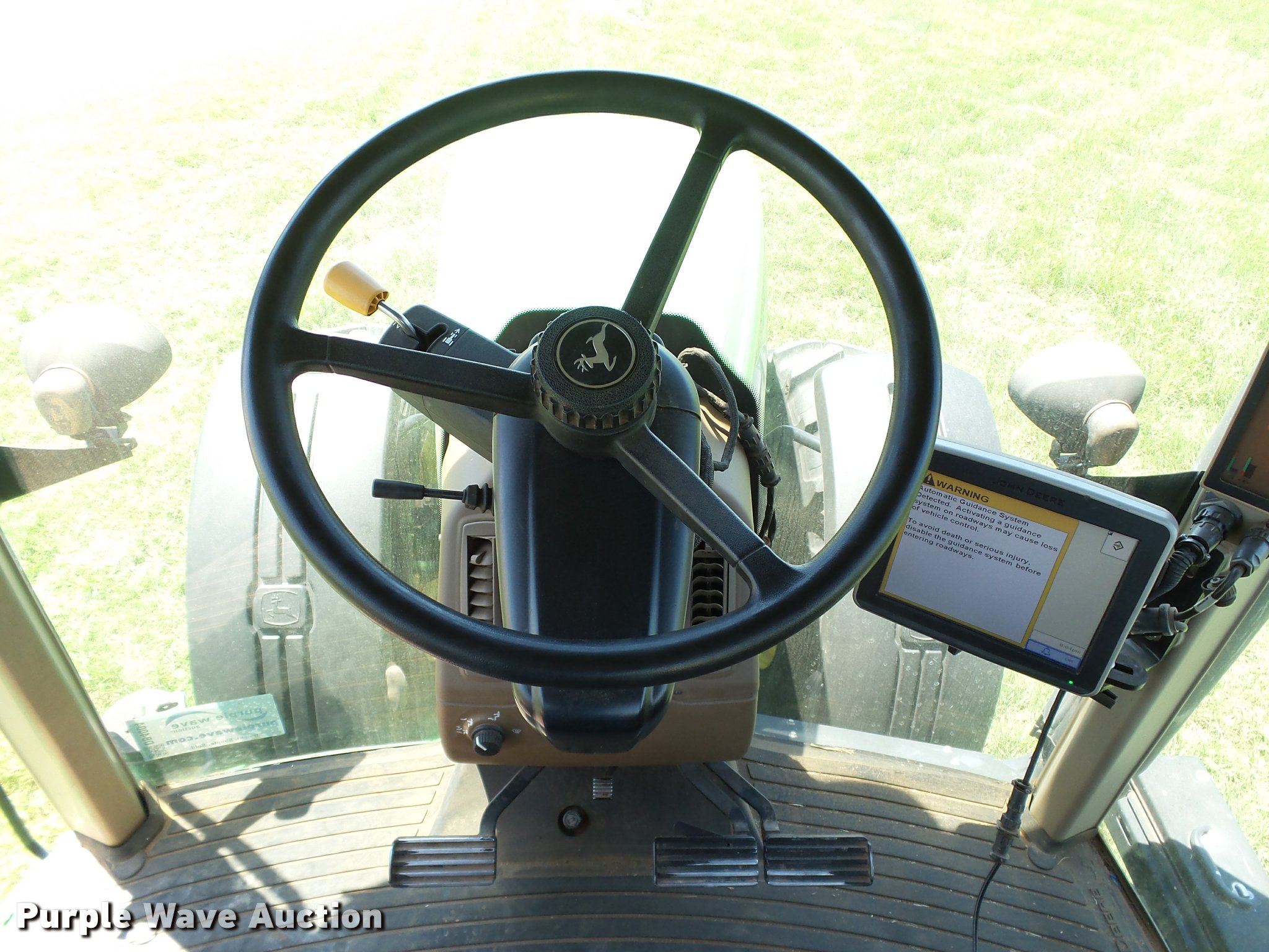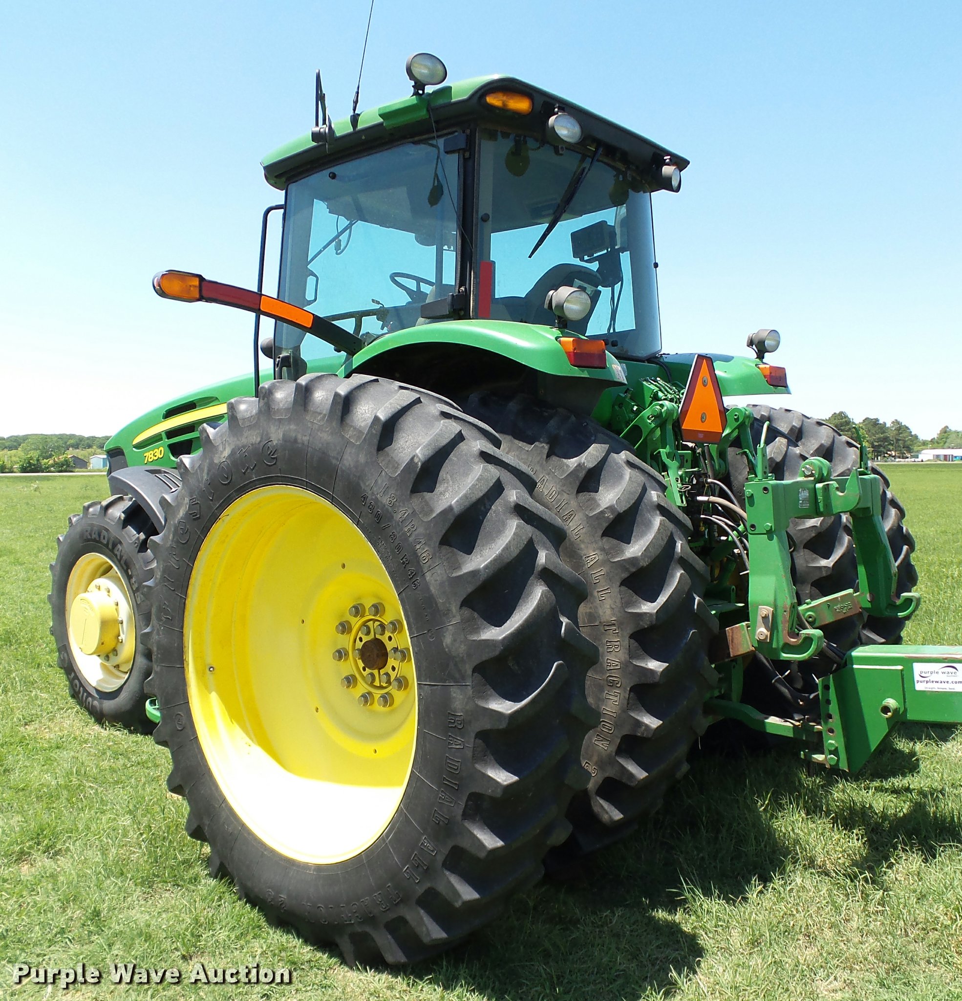 Purple Wave is selling a used Tractor in Oklahoma. This item is a 2007 John Deere 7830 MFWD tractor with the following: 4,362 hours on meter, John Deere 6.8L six cylinder turbo diesel engine, 205 HP, John Deere Auto Quad Plus transmission, 20F-20R gears, Left-hand reverser, Differential lock, AC and heat, Tilt steering wheel, AM/FM, Suspension seat, Instructor's seat, Shade, GreenStar ready, Three point, Top link, Quick attach, Seven pin outlet, 540/1000 PTO, Draw bar, ISO electrical outlet, (4) rear hydraulic remote sets, (12) suitcase weights, 113" wheelbase, 420/85R30 front tires, 480/80R46 dual rear tires, Serial RW7830A006609