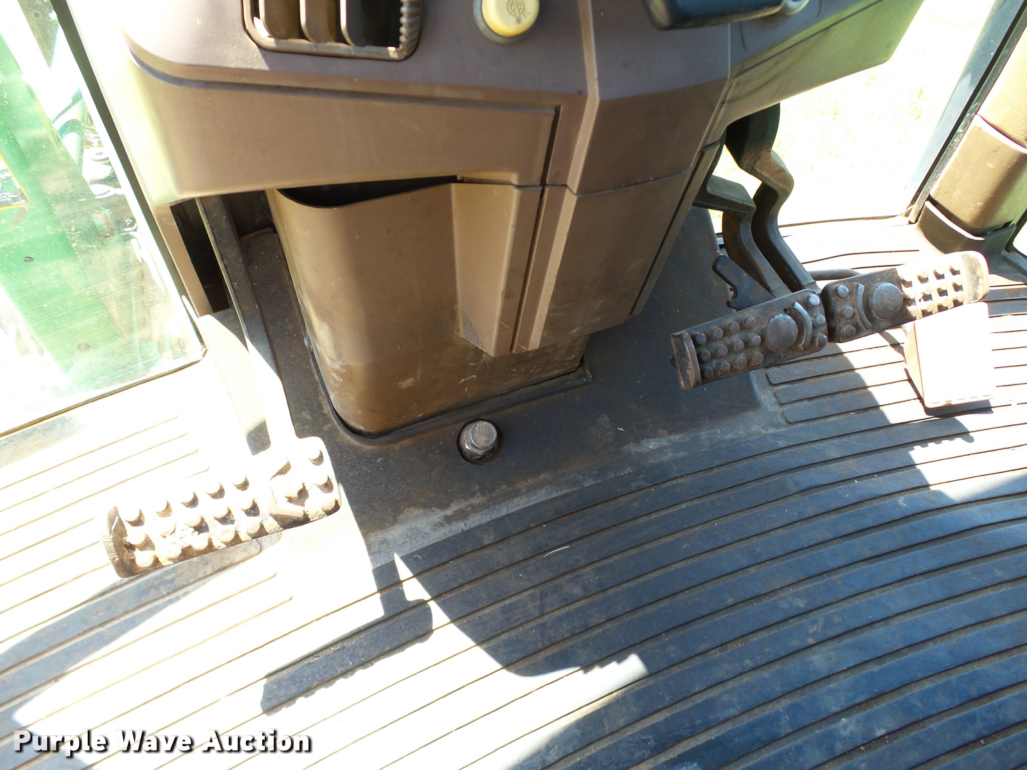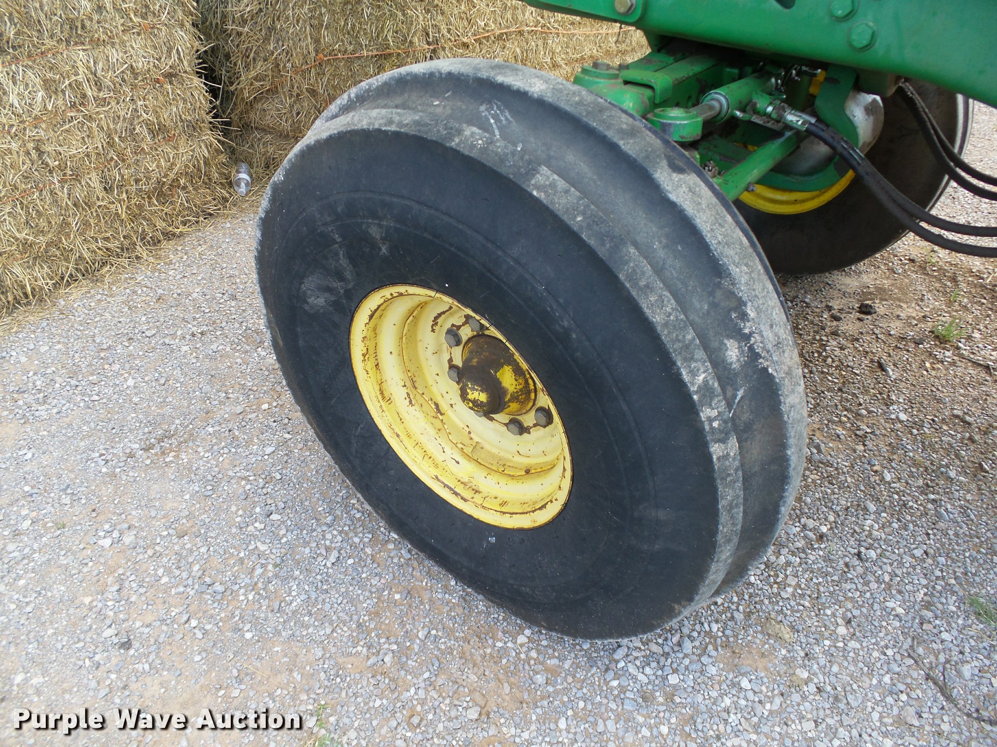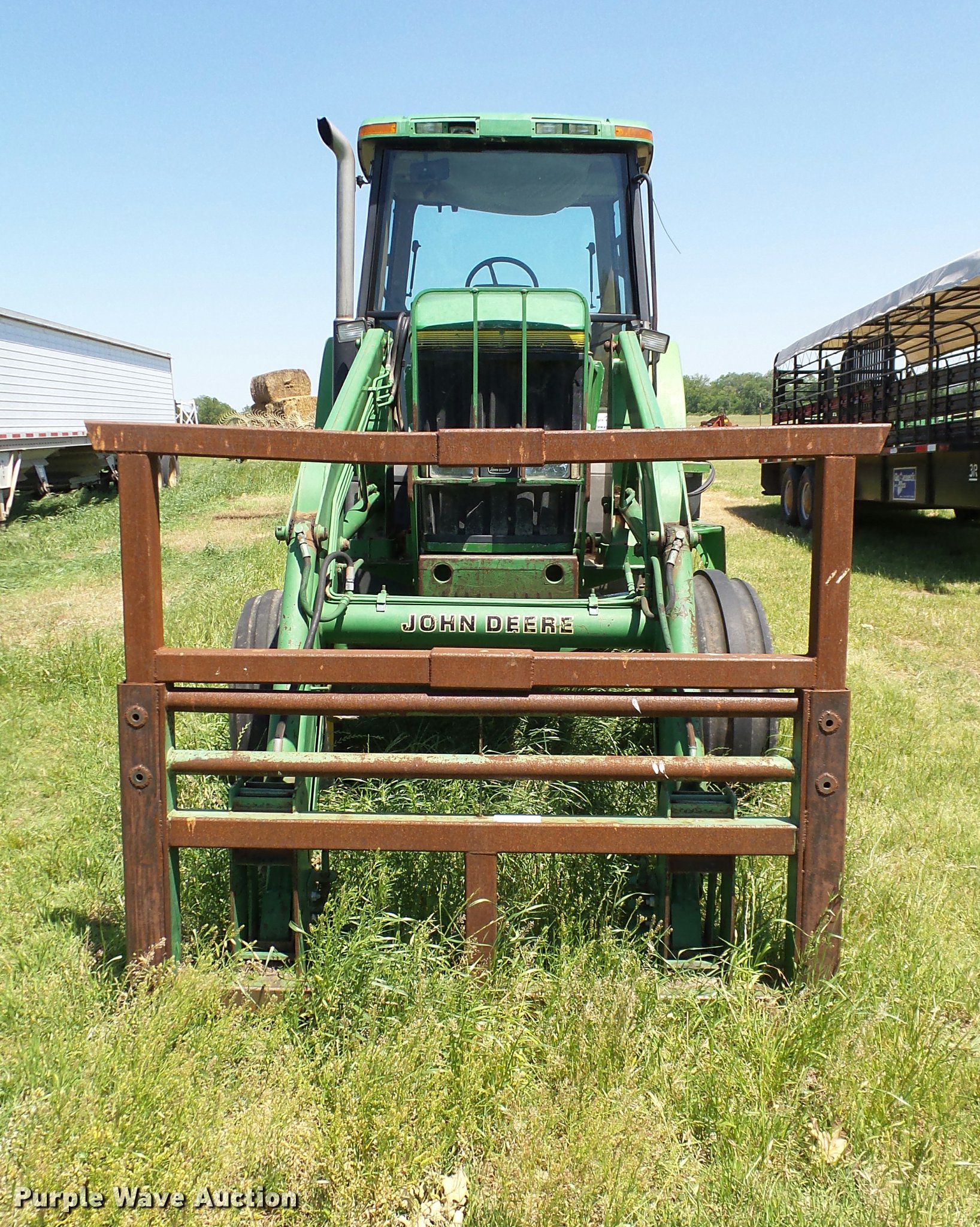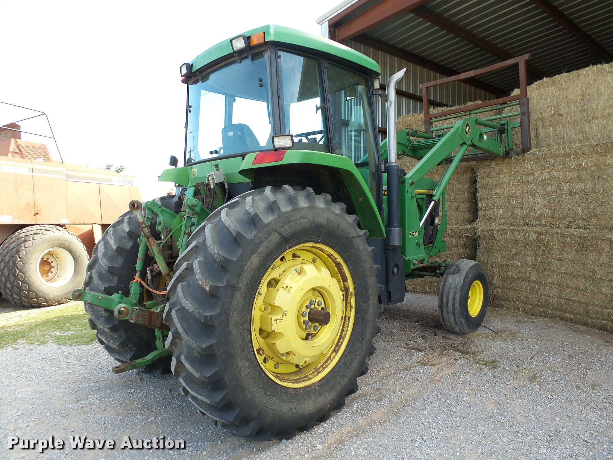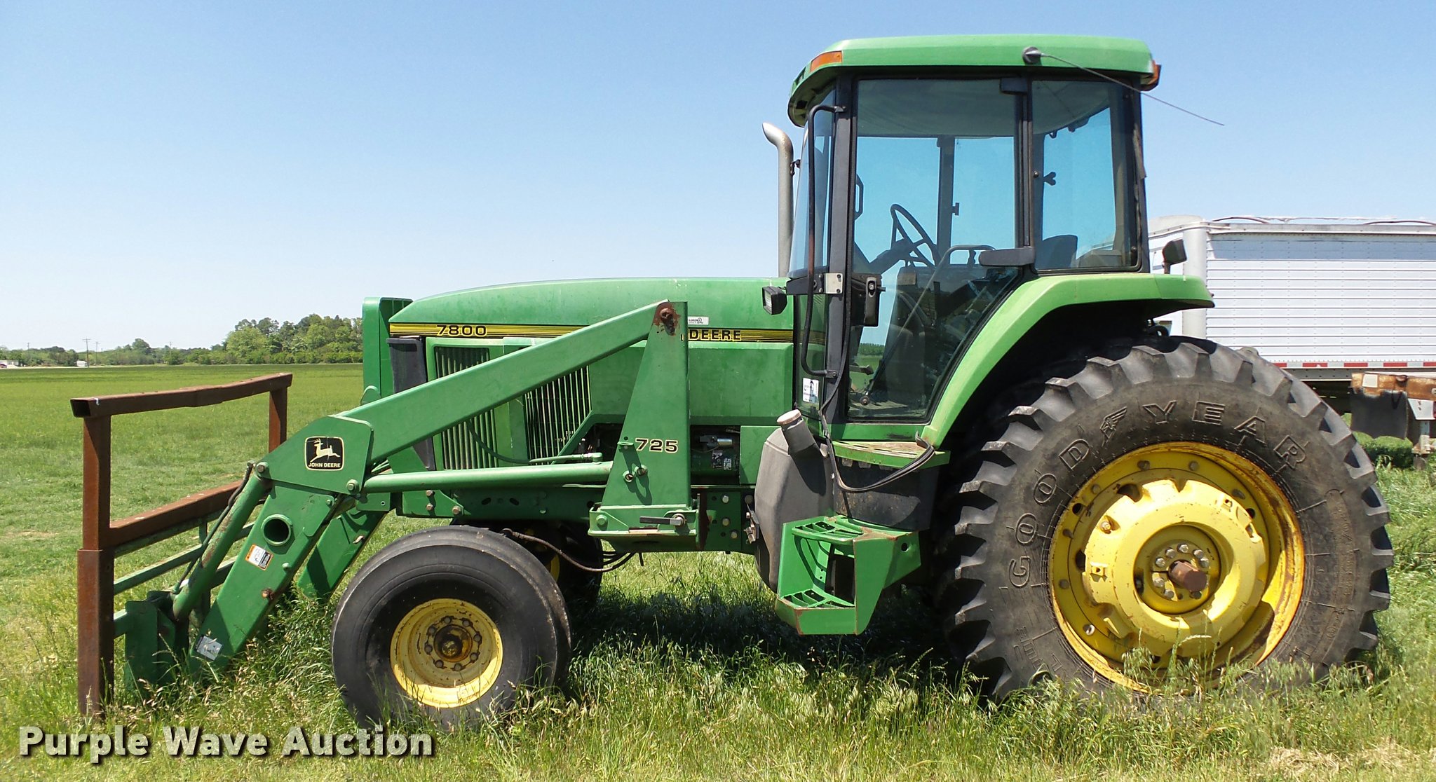 Purple Wave is selling a used Tractor in Oklahoma. This item is a 1993 John Deere 7800 tractor with the following: 1,999 hours on meter, Approx. 10,000 hours, John Deere 7.6L six cylinder turbo diesel engine, 159 HP, John Deere Powr Quad partial powershift transmission, 16F-12R gears, AC and heat, Tilt steering wheel, AM/FM/cassette/weatherband, Suspension seat, Front and rear work lights, John Deere 725 loader, Tri-L three spear bale spear, Joystick controls, 84" bucket selling separately as item DB4020, Three point, Top link, Seven pin outlet, 540/1000 PTO, (2) rear hydraulic remote sets, (4) rear wheel weights, 114" wheelbase, Firestone 11.00-16 front tires, Goodyear 520/85R38 rear tires, Serial RW7800H003980