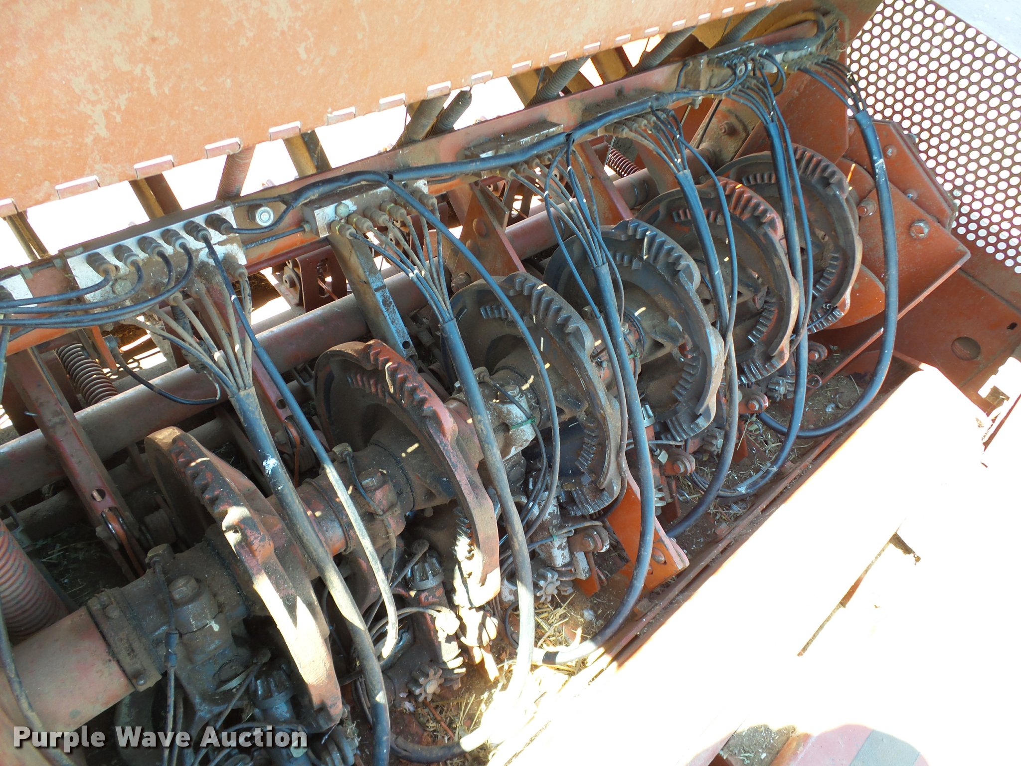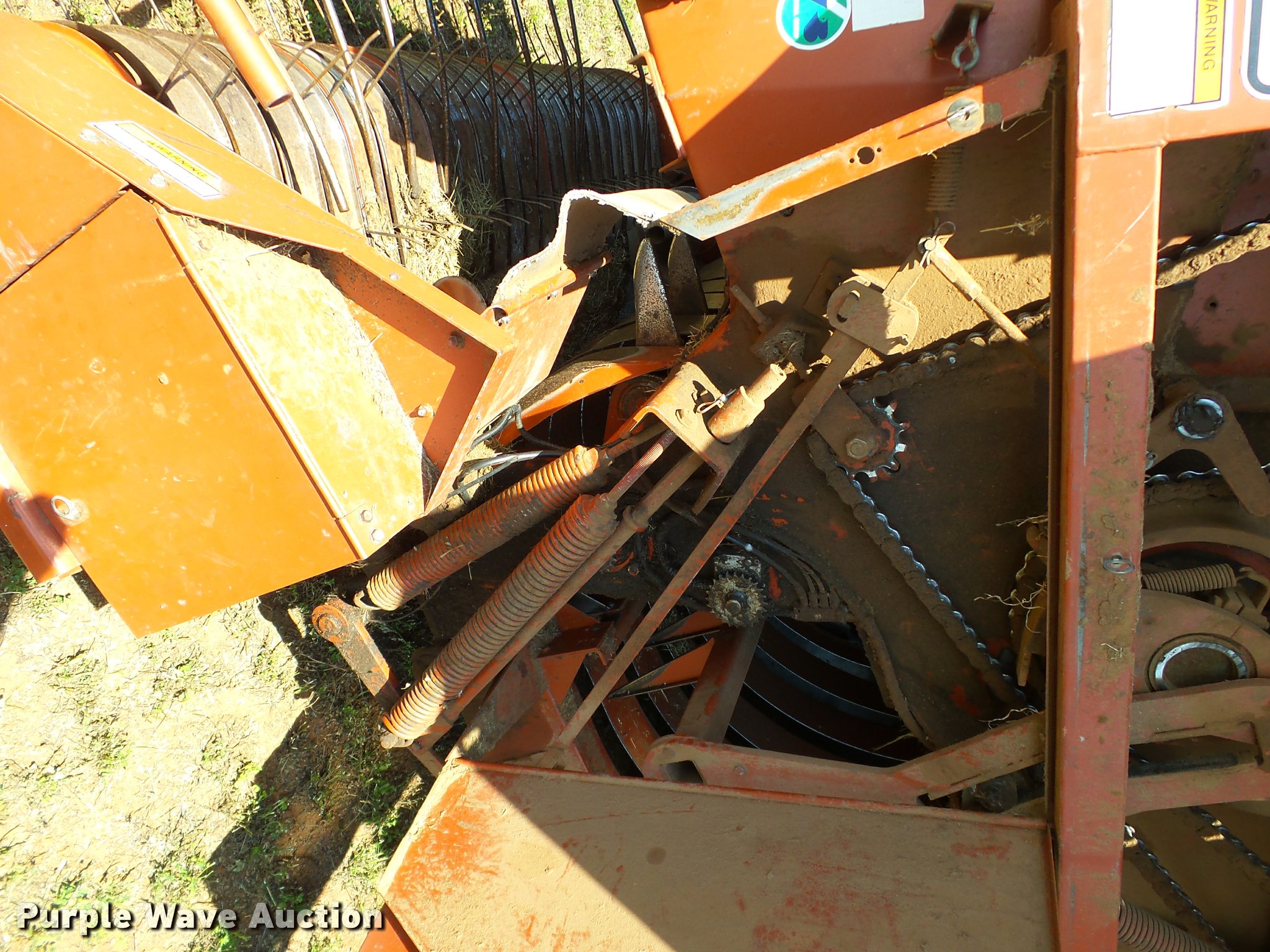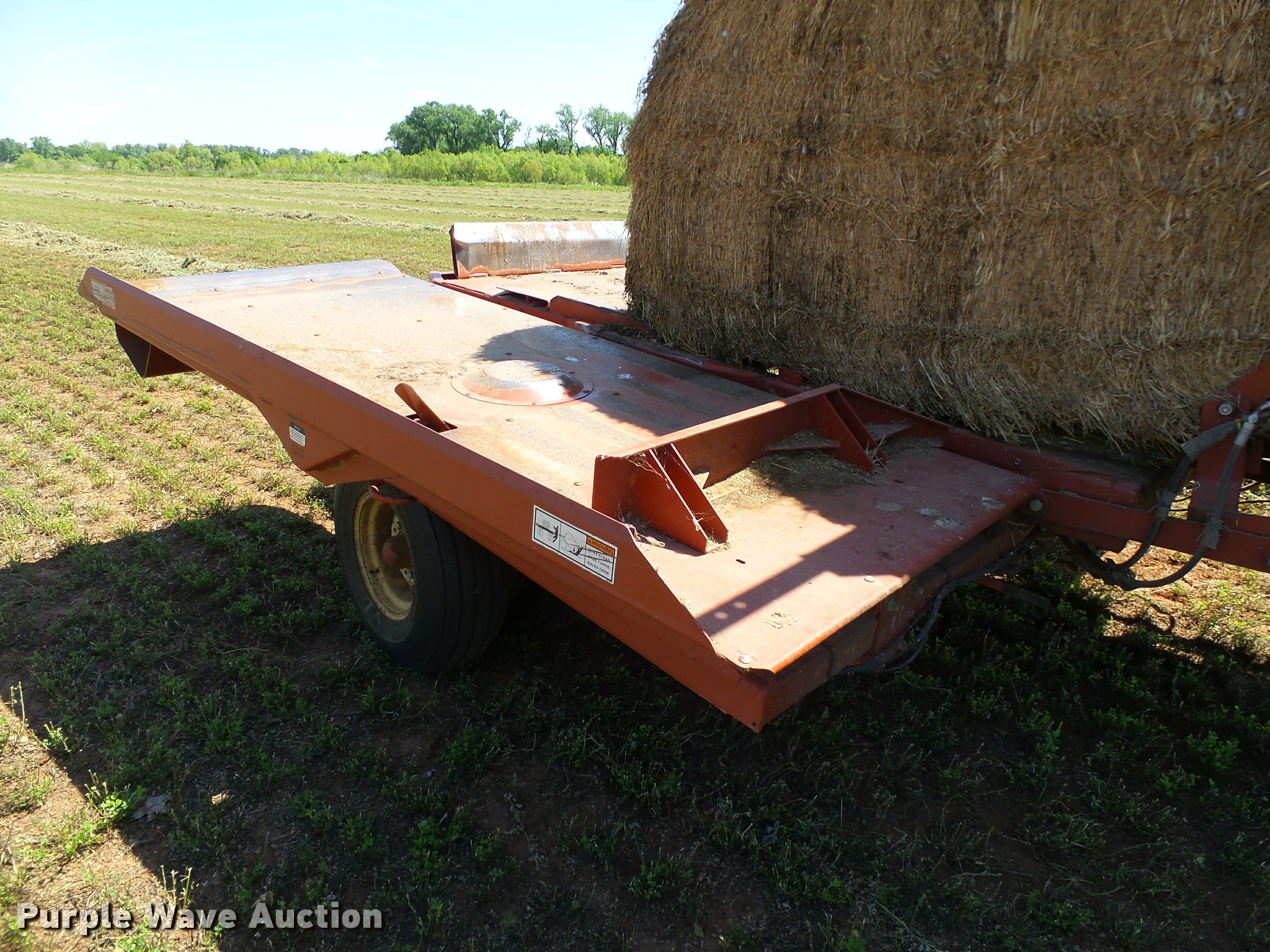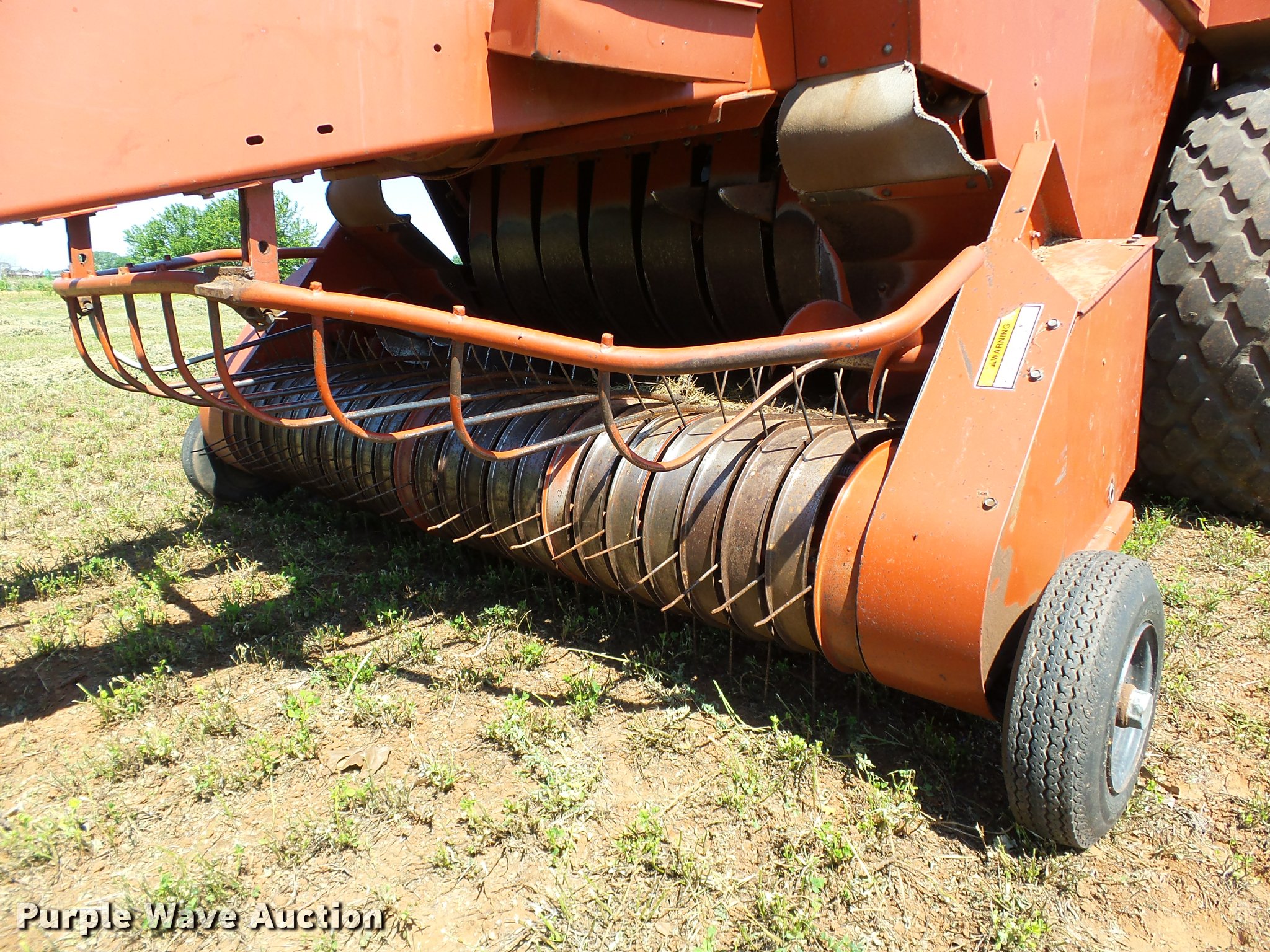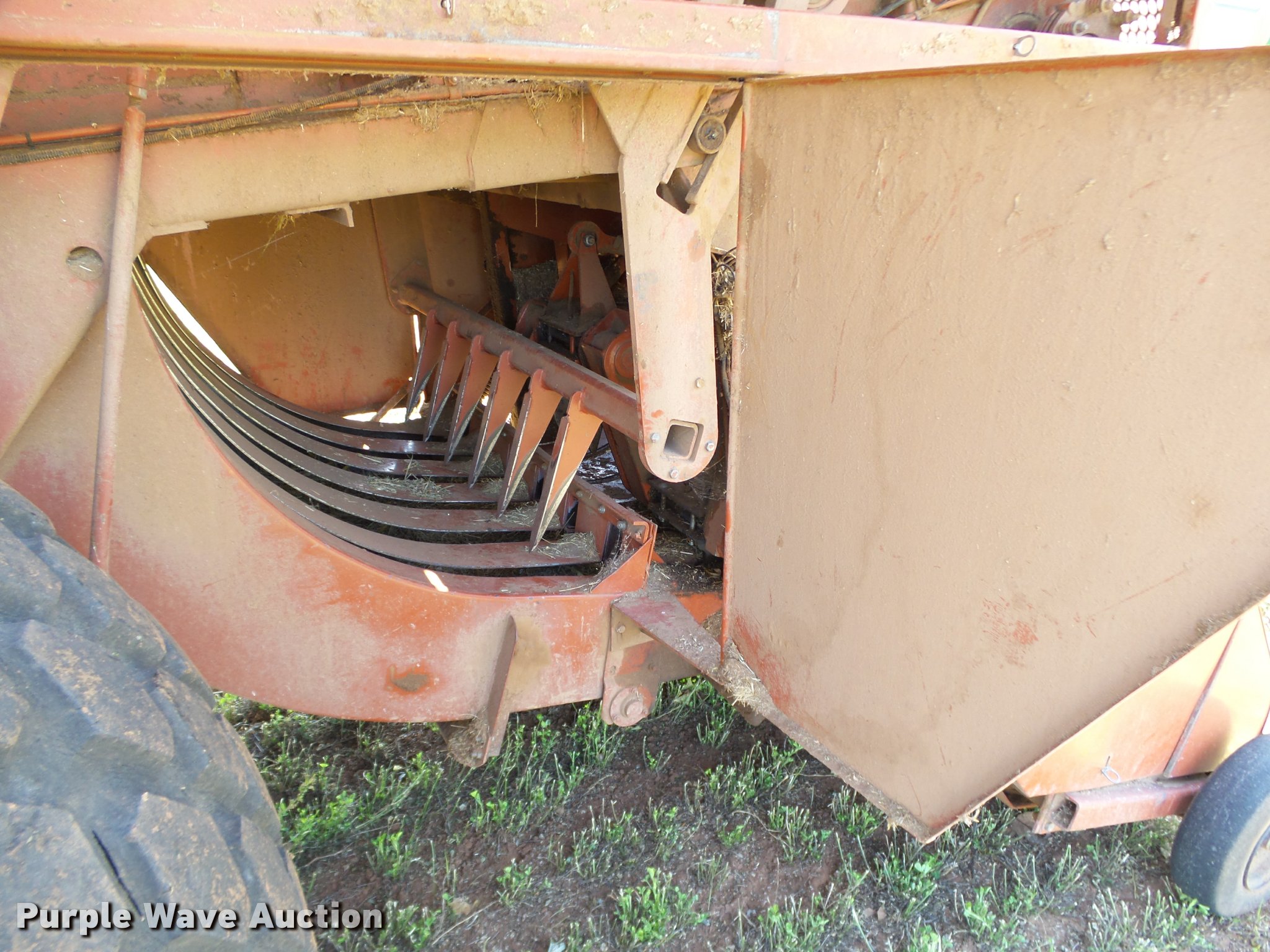 Purple Wave is selling a used Square Baler in Oklahoma. This item is a 1997 Hesston 4900 square baler with the following: 36,080 bales on counter, 4' x 4' bale capacity, 84"W pickup, Monitor, Double knot knotters, Twine tie, Bale chute, Hesston BA49 bale accumulator, Serial BA4900968, (24) ball twine capacity, Work lights, Transport lights, 1000 PTO, Pin hitch, 28L-26 tires, Serial BB4902929