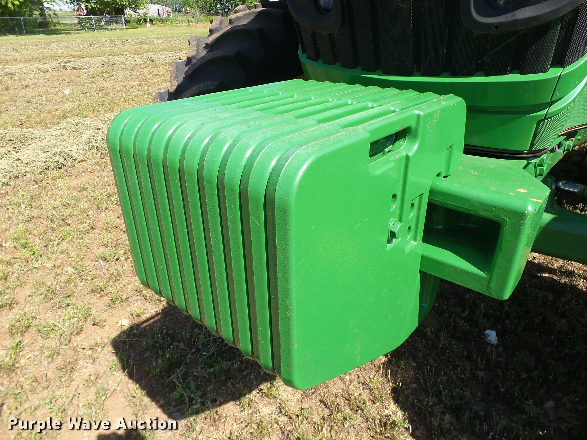 Purple Wave is selling a used Tractor in Oklahoma. This item is a 2012 John Deere 6190R MFWD tractor with the following: 1,673 hours on meter, John Deere 6.8L six cylinder turbo diesel engine, 209 HP max, 190 HP gross, Auto Quad Plus transmission, 20F-20R gears, Left-hand reverser, Differential lock, AC and heat, Tilt steering wheel, AM/CM/CD, Air suspension seat, Instructor's seat, Shade, Wipers, Work lights, Three point, Top link, Quick attach, Seven pin outlet, 540/1000 PTO, Draw bar, ISO electrical outlet, (4) rear hydraulic remote sets, Poly fenders, (10) suitcase weights, 110" wheelbase, Firestone 380/85R34 front tires, Firestone 480/80R46 dual rear tires, Serial 1RW6190R0RECA001075