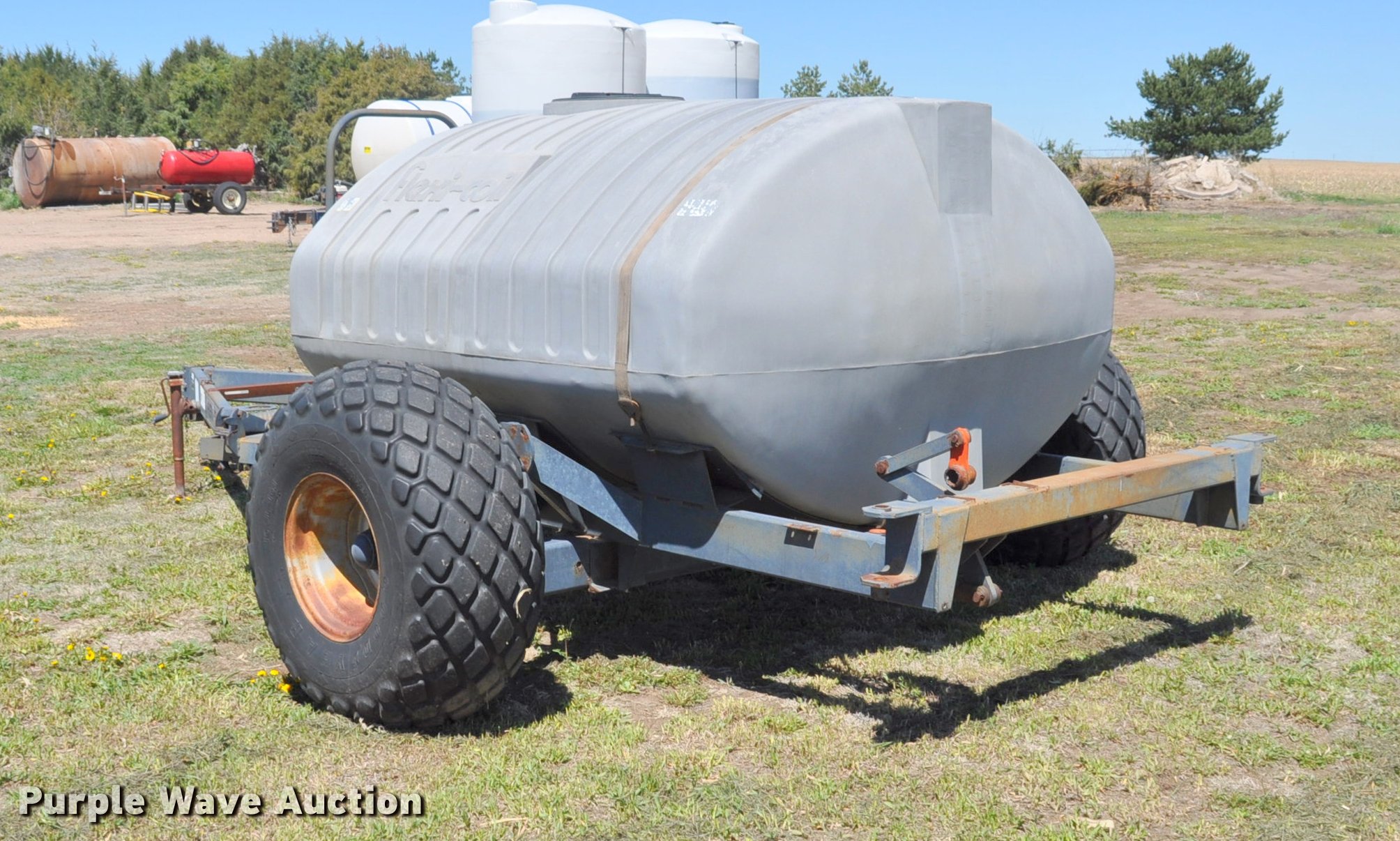 Purple Wave is selling a used Applicator Attach. in Nebraska. This item is a Flexi-Coil 62 ferilizer cart with the following: 1,000 gallon tank, Slab hitch, 16.5L-16.1 tires, Serial S62-B000-K035301