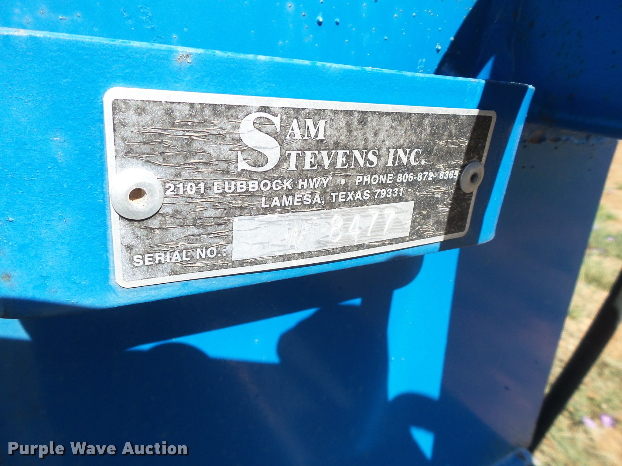 Purple Wave is selling a used Rotary Tillage in Texas. This item is a Sam Stevens sandfighter with the following: 12 rows, 36" spacing, 6x6 bar, Hydraulic fold, Three point, Serial 8477