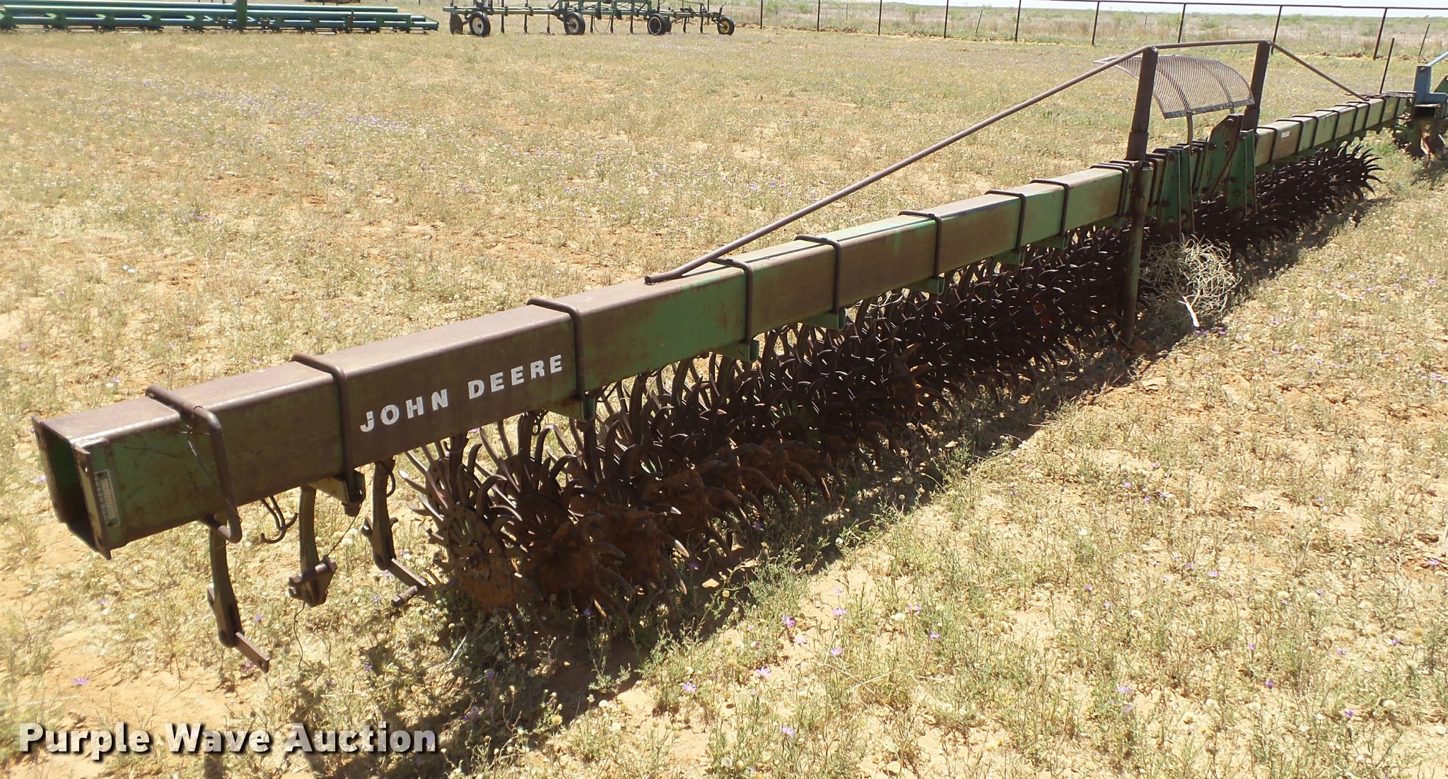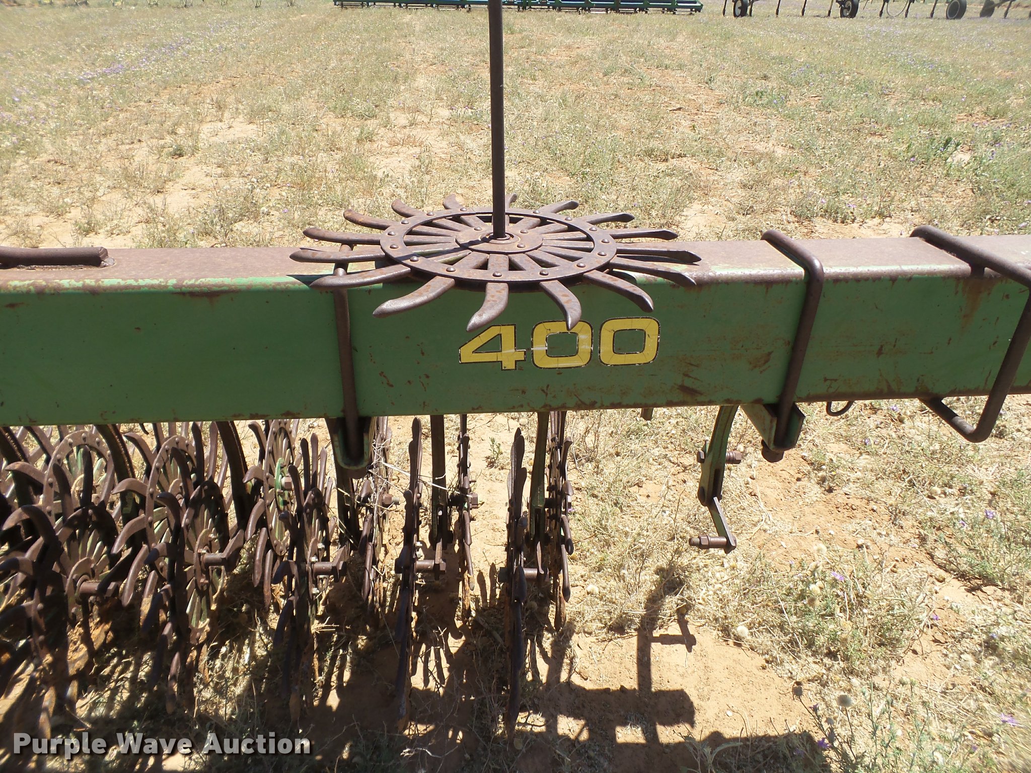 Purple Wave is selling a used Rotary Tillage in Texas. This item is a John Deere 400 rotary hoe with the following: 31'9"W, 4x6 bar, Three point, Serial 068494