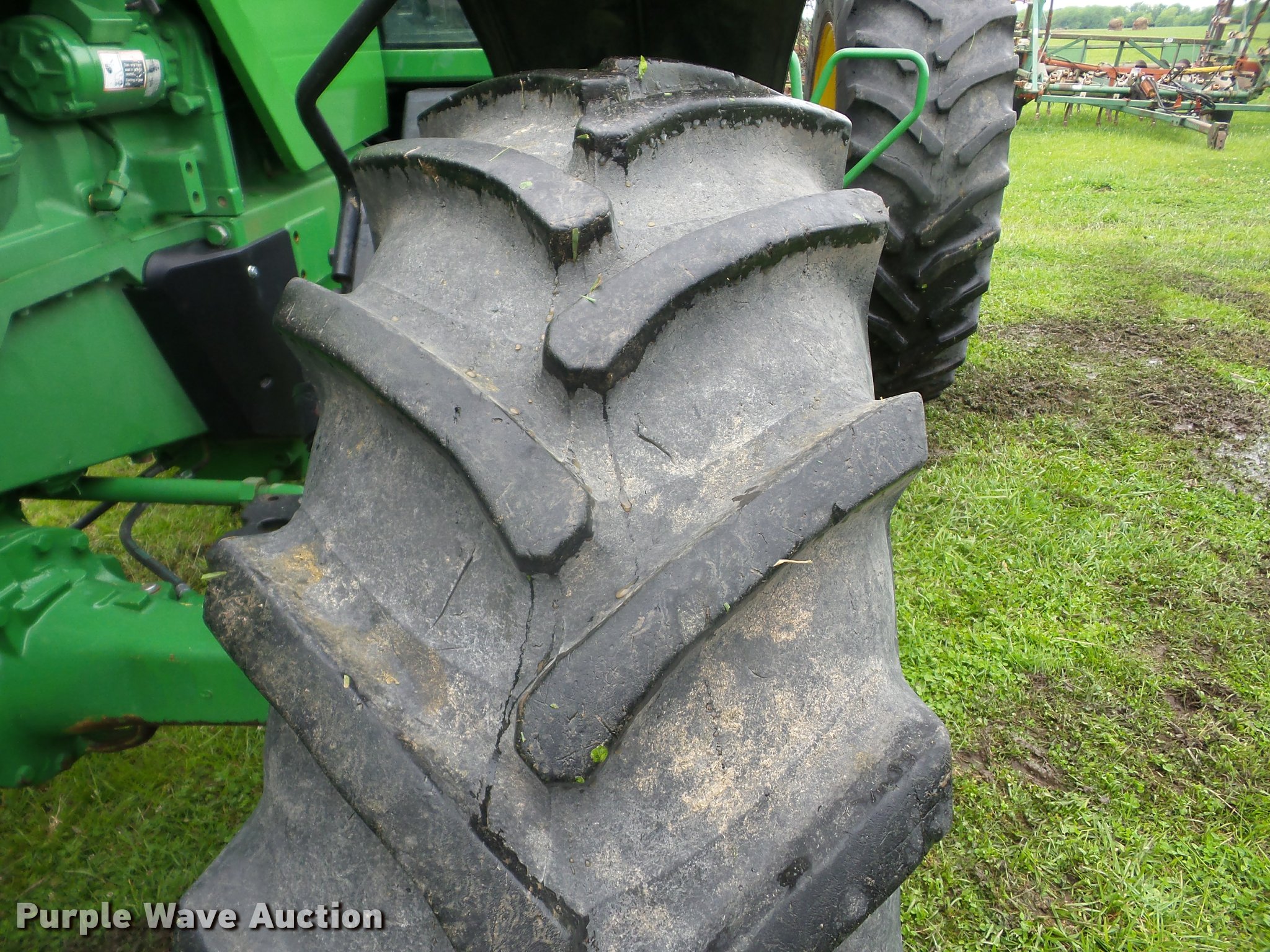 Purple Wave is selling a used Tractor in Kansas. This item is a 1996 John Deere 8400 MFWD tractor with the following: 8,128 hours on meter, John Deere 8.1L six cylinder turbo diesel engine, 225 HP, Powershift transmission, 16F-4R gears, Differential lock, AC and heat, Tilt steering wheel, AM/FM, Suspension seat, Visor, Block heater, Three point, Top link, Quick attach, Seven pin outlet, 1000 PTO, (4) rear hydraulic remote sets, (10) suitcase weights, 16.9R30 front tires, 20/8R42 dual rear tires, Serial RW8400P007617